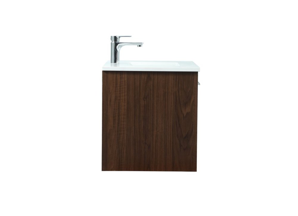 Save space and make your bathroom appear bigger with this floating vanity. Its minimal design will have you in awe, while its clean lines will leave your room feeling fresh and uncluttered. The Single u-drawer pulls out for storage while the open space below allows you to place extra towels or various other essentials. The ivory white engineered marble counter top with porcelain sink adds refined luxe while the aluminum barpull style handle adorn the vanity face.