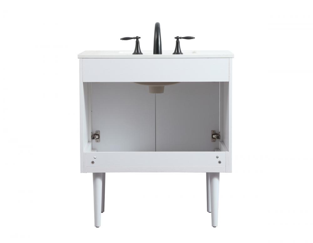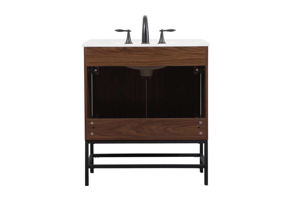 This vanity is a sleek-looking piece of bathroom furniture that is easy to incorporate into your design scheme. The cabinet features a smooth door panel with an oversized steel handle and soft close hinges provide ample room for accessories. Constructed of engineered wood, the powder-coated metal rod legs are an urban industrial look that we love. Minor assembly of the metal legs needed to get this vanity up and running.
