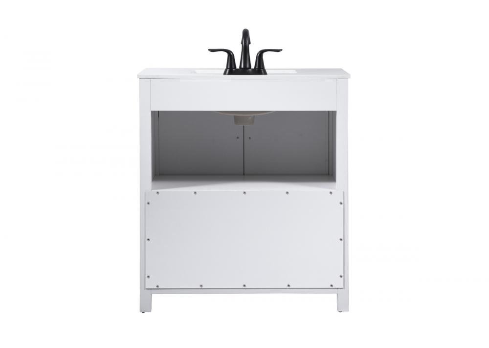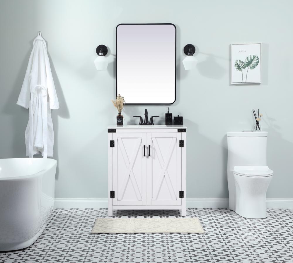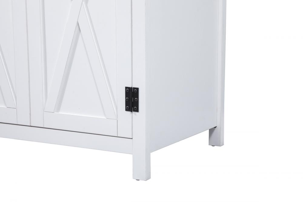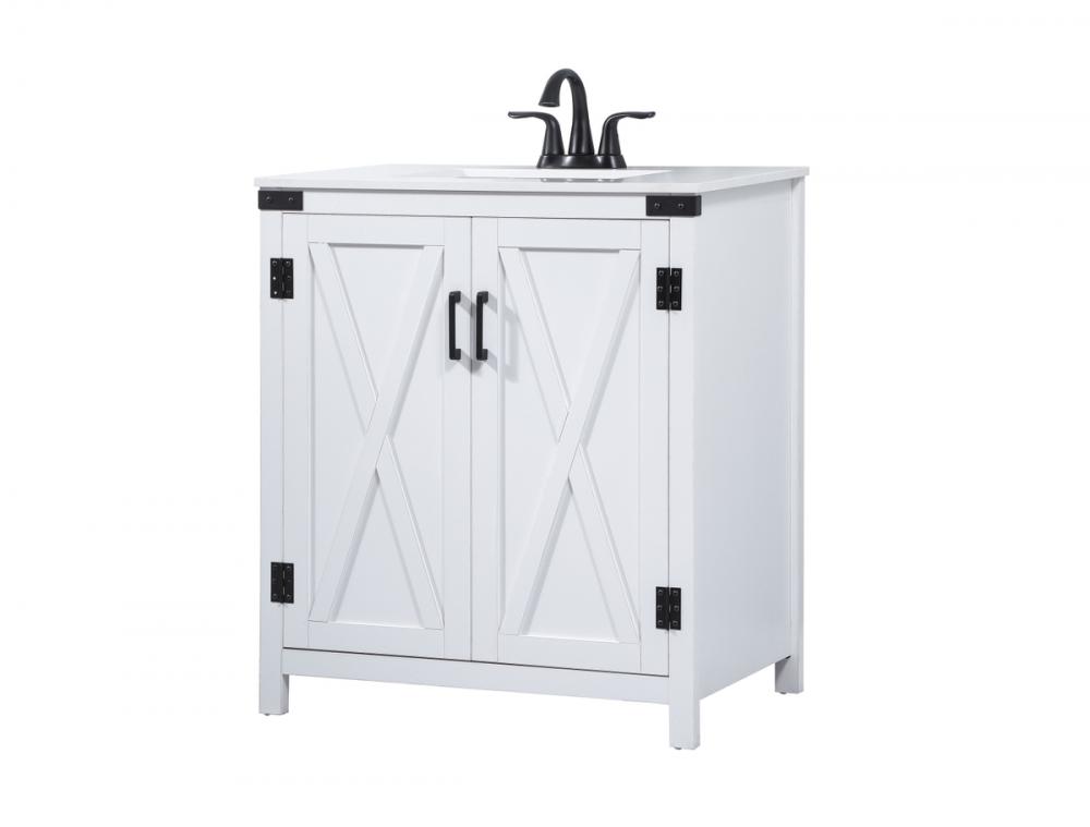 Reminiscent of barn doors, the 2 door cabinet adds both stylistic charm and function with its plethora of storage options for all your bathroom essentials. Whether for your bathroom or the guests', everyone will marvel at its classic look for traditional and farmhouse aesthetics. A slab of engineered marble rounds out the piece up top, as well as the porcelain under mount sink and predrilled faucet holes. This vanity arrives fully assembled.