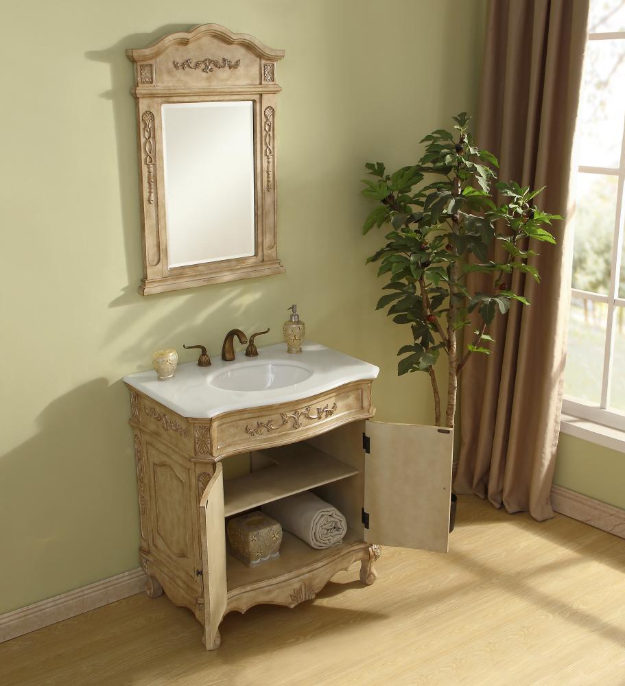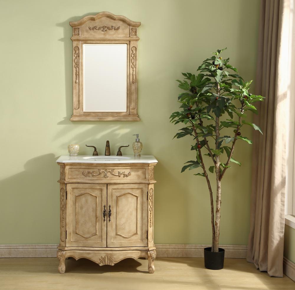32 inch Single Bathroom vanity in Antique Beige with ivory white engineered marble