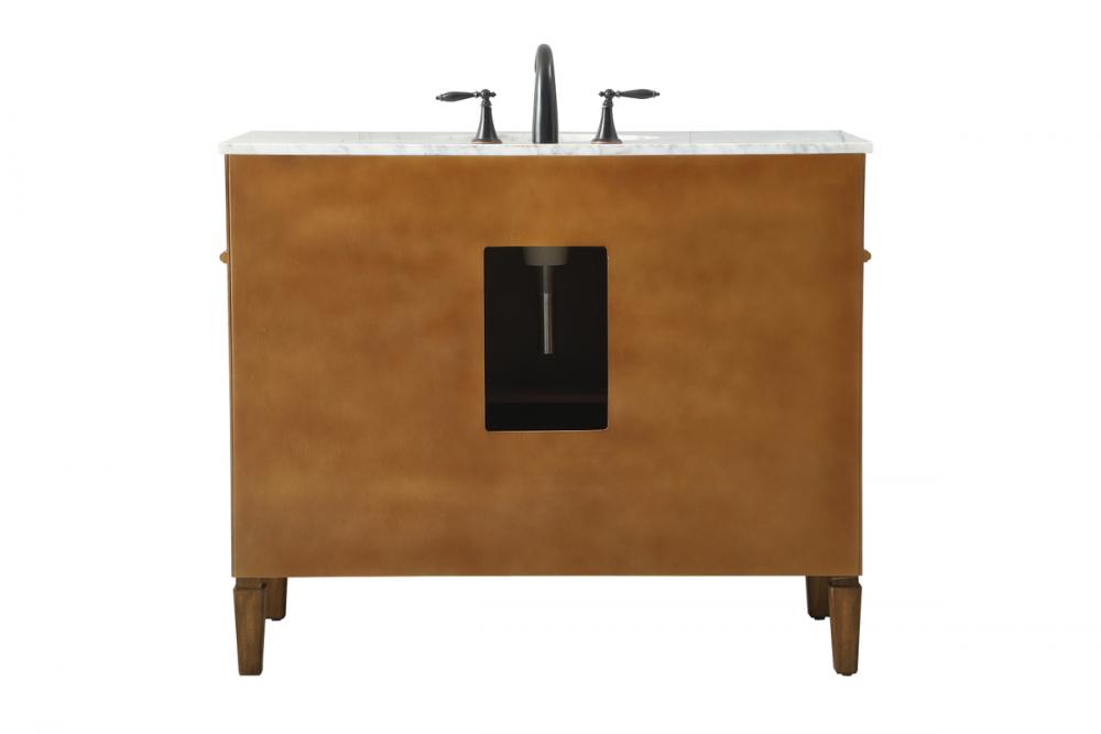 Crafted with durable engineered marble top in ivory white finish and vanity base is hand painted