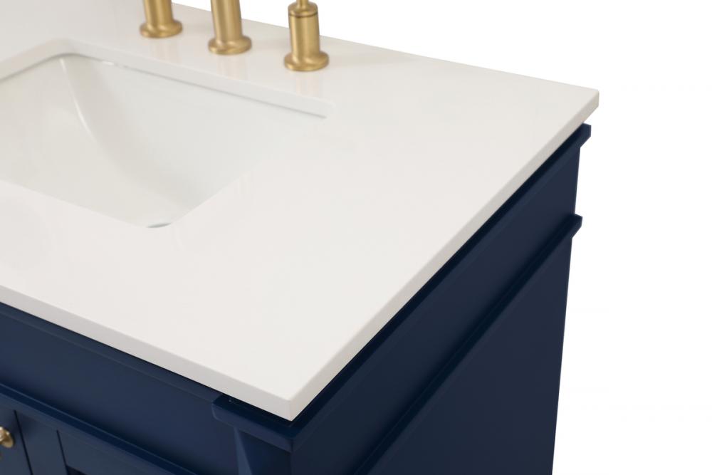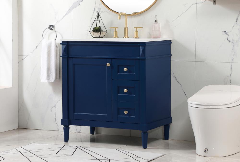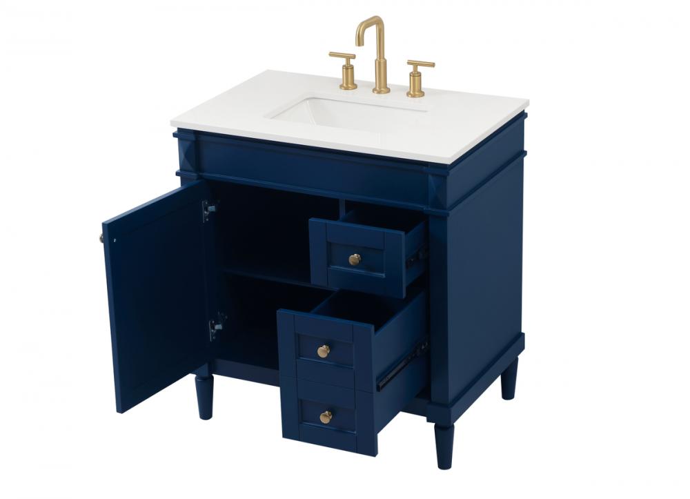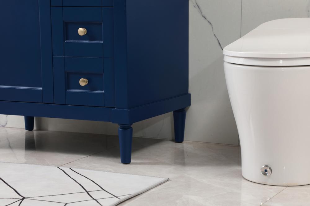 This transitional vanity is a beautiful piece of bathroom furniture will look amazing in your design scheme. The cabinet features a shaker style smooth door panel with simple round knobs and soft close hinges provide ample room for accessories. Packed with multiple side drawers with soft close glides for added comfort and full access to bath supplies. Convenient deep drawer stores all of your tall bath essentials. Constructed of engineered wood and solid wood legs with hand painted finish. The durable engineered marble countertop is a versatile material in an ivory white finish. Minor assembly of the legs needed to get this vanity up and running.