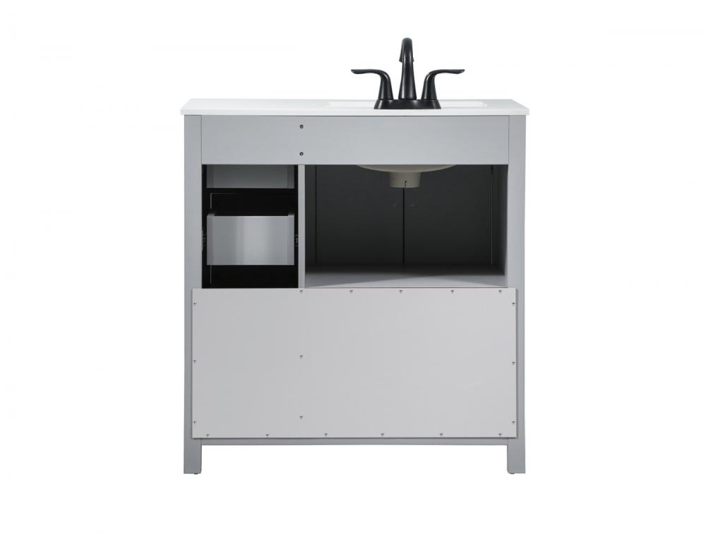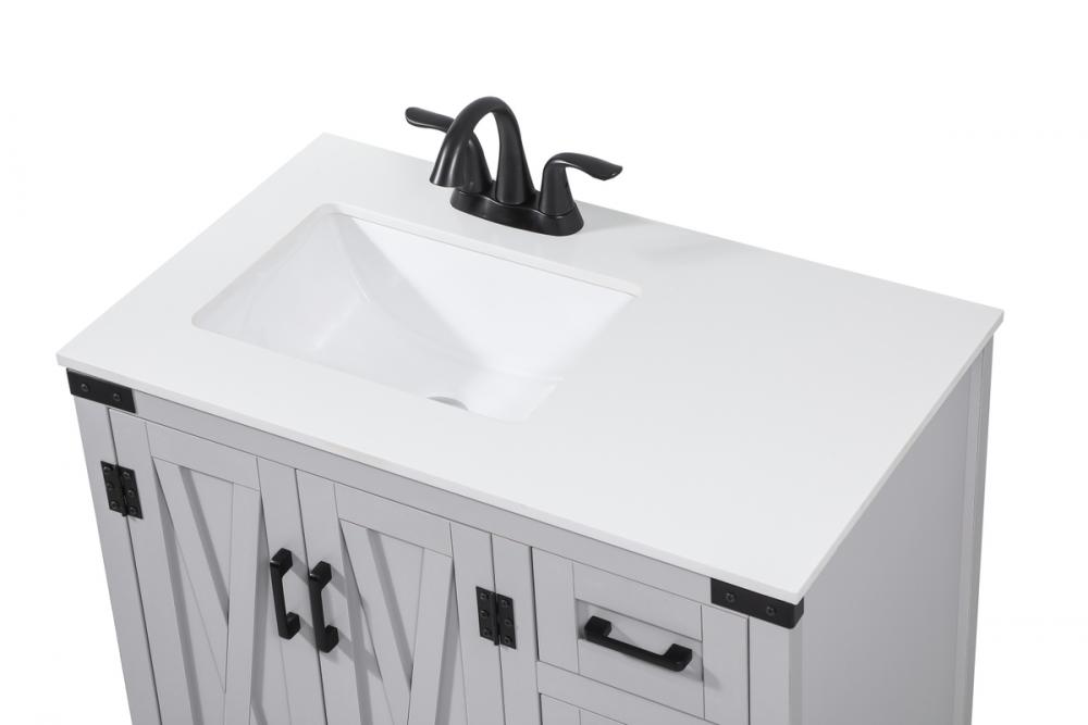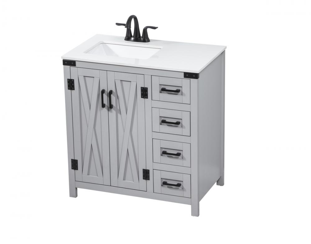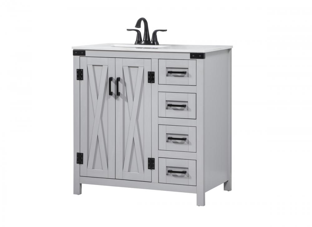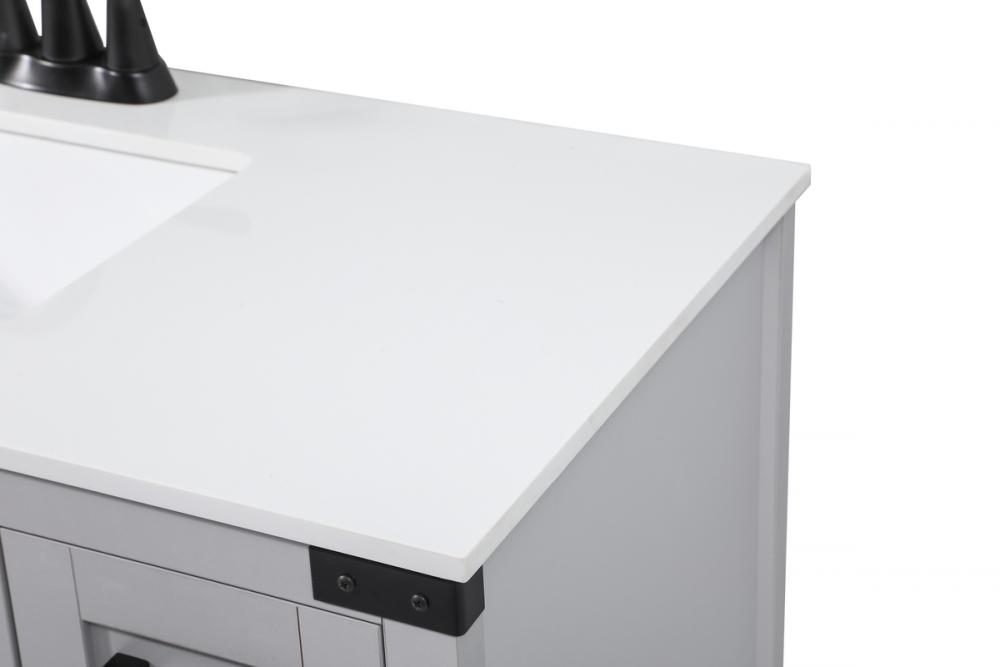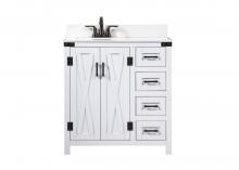 Reminiscent of barn doors, the two door cabinet and four drawers adds both stylistic charm and function with its plethora of storage options for all your bathroom essentials. Whether for your bathroom or the guests', everyone will marvel at its classic look for traditional and farmhouse aesthetics. A slab of engineered marble rounds out the piece up top, as well as the porcelain under mount sink and predrilled faucet holes. This vanity arrives fully assembled.