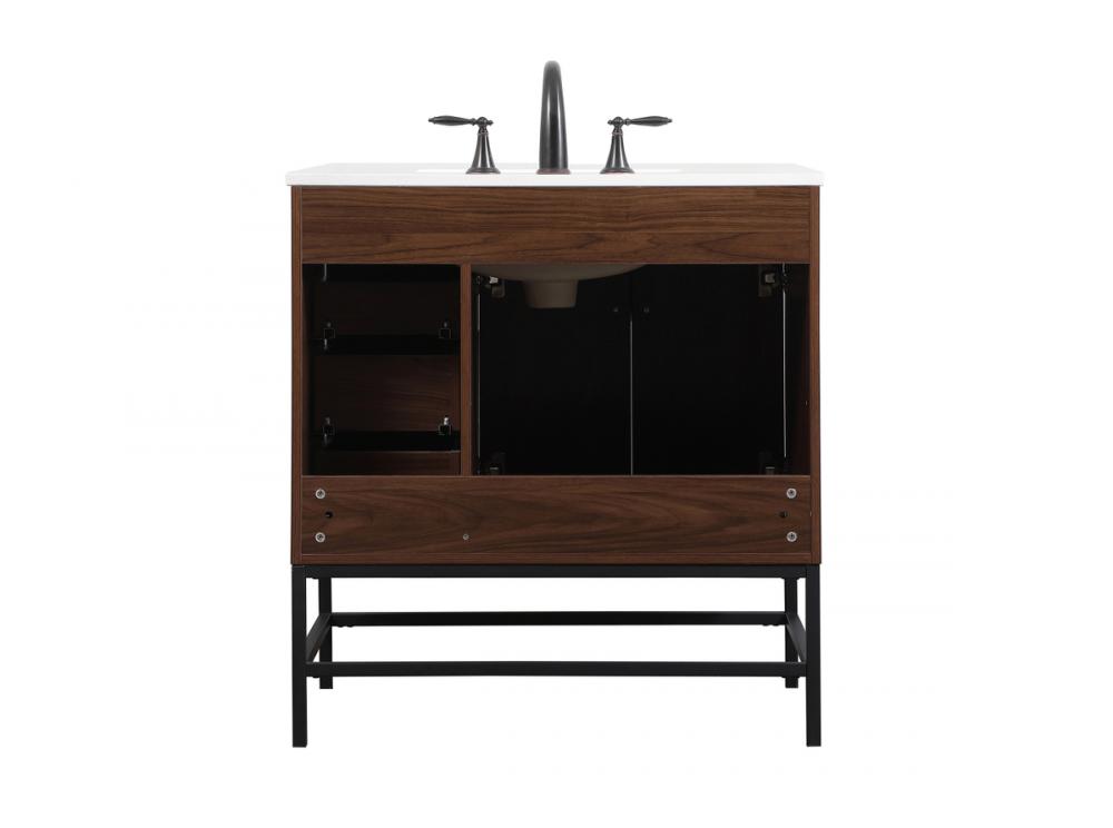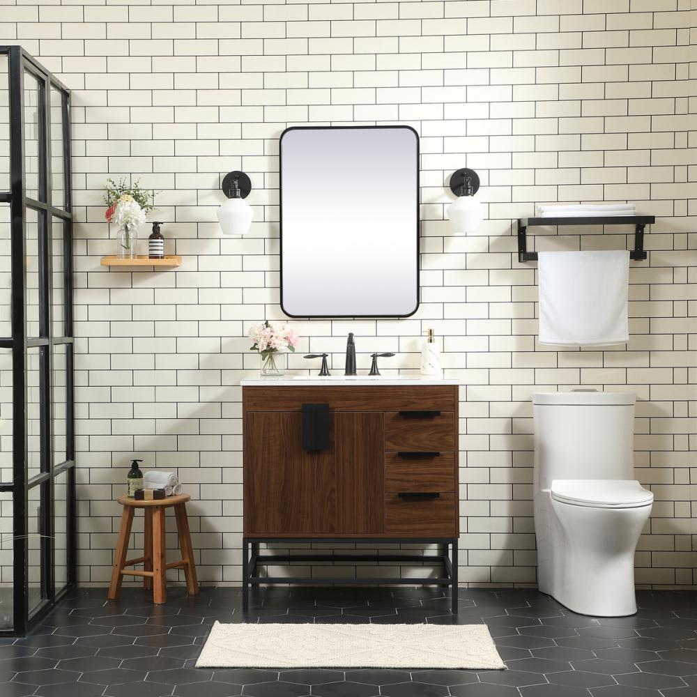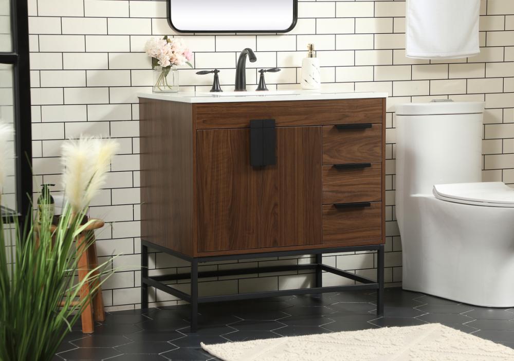 This vanity is a sleek-looking piece of bathroom furniture that is easy to incorporate into your design scheme. The cabinet features a smooth door panel with an oversized steel handle and soft close hinges provide ample room for accessories. Constructed of engineered wood, the powder-coated metal rod legs are an urban industrial look that we love. Minor assembly of the metal legs needed to get this vanity up and running.