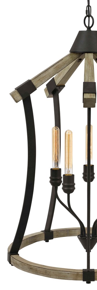 35" Height Pine Wood and Metal Fixture in Iron and Light Oak Finish