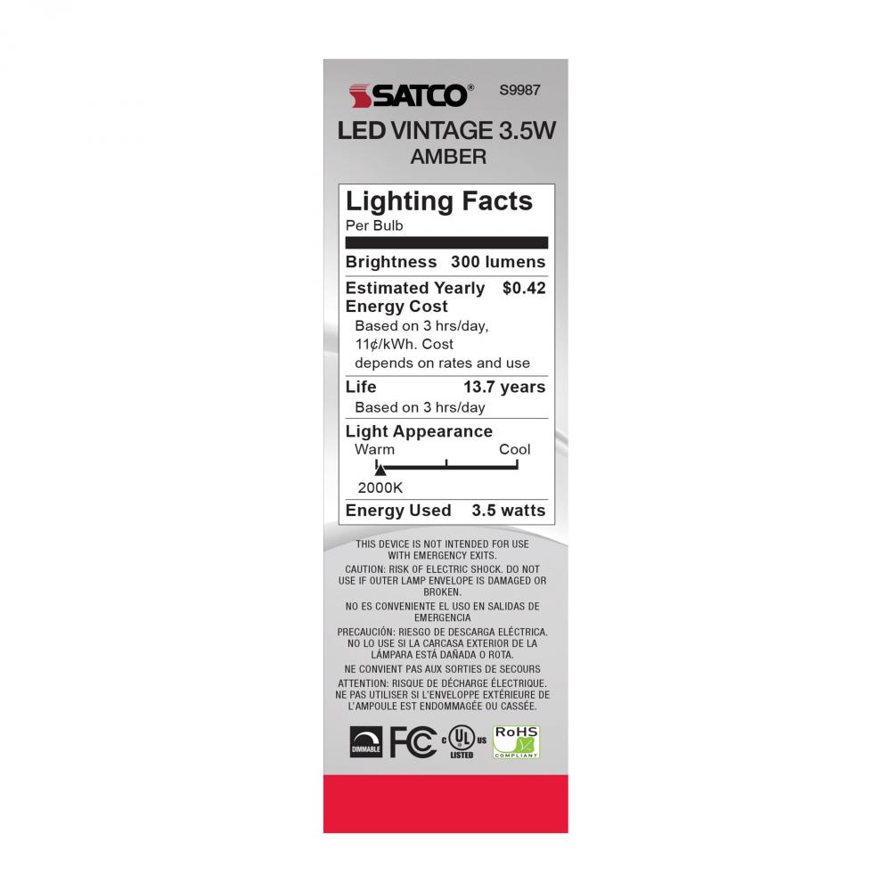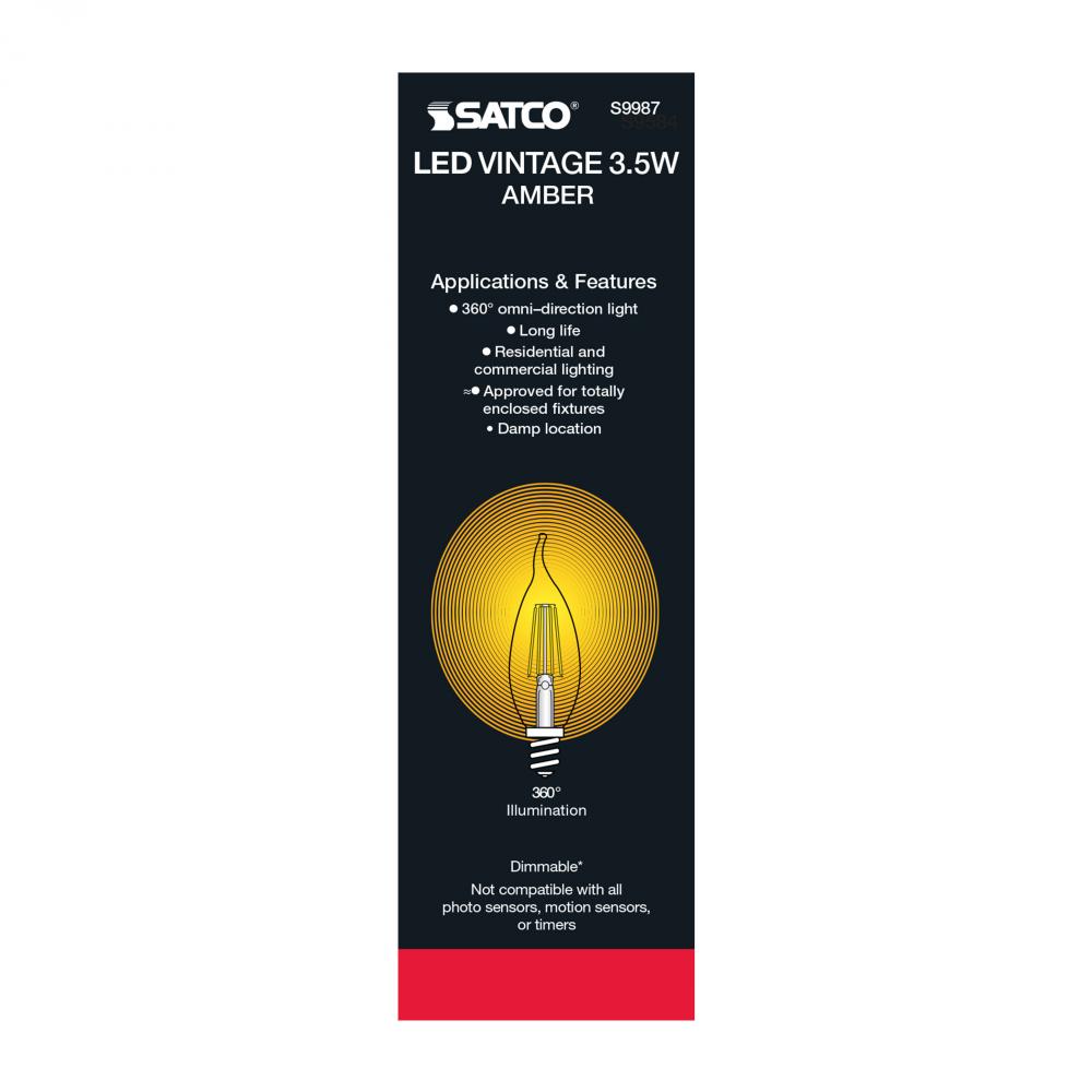 3.5 Watt Flame CFA LED; Amber; Candelabra base; 2000K; 300 Lumens; 120 Volt