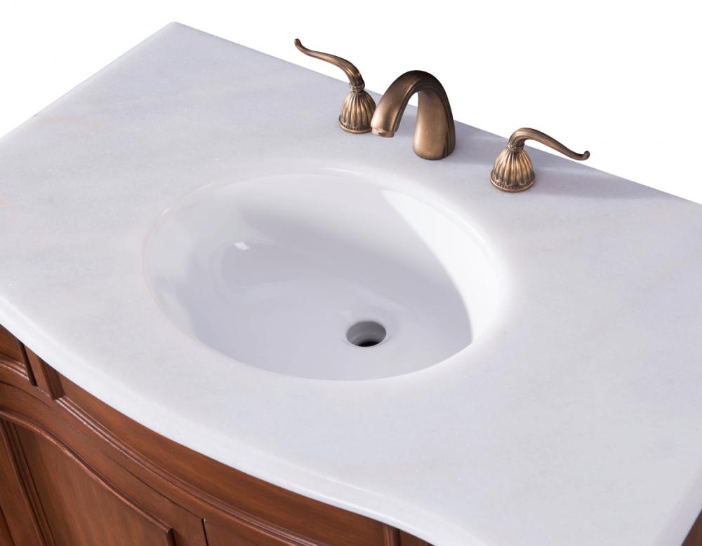 It will bring remarkable beauty and class to your master bathroom or powder room. This stunning vanity features a wide and spacious authentic white marble countertop—with light brown veining throughout the stone.