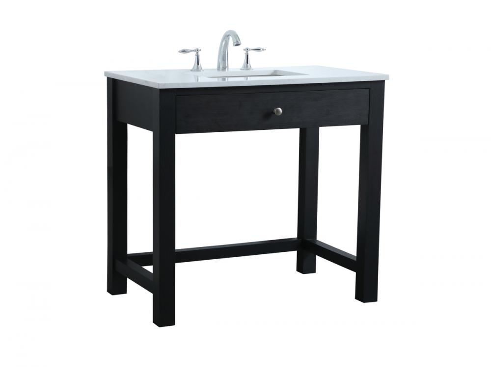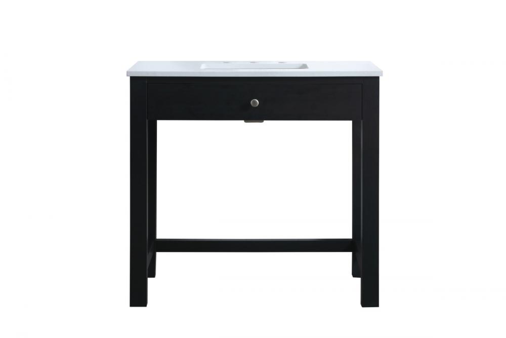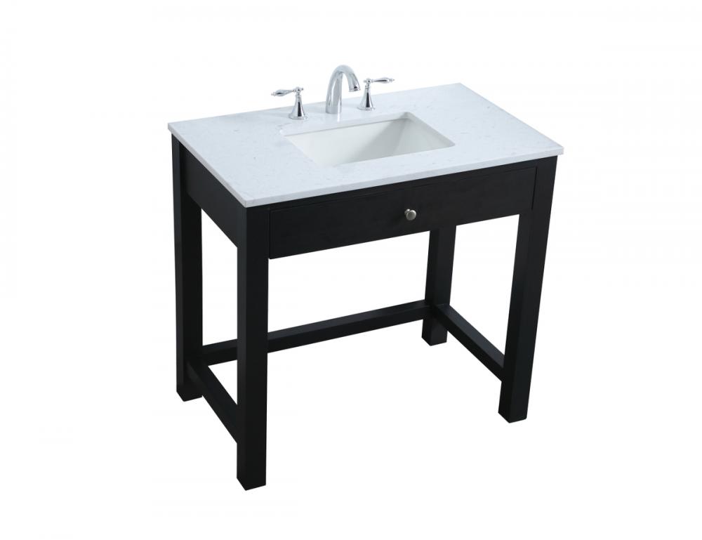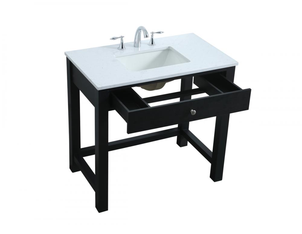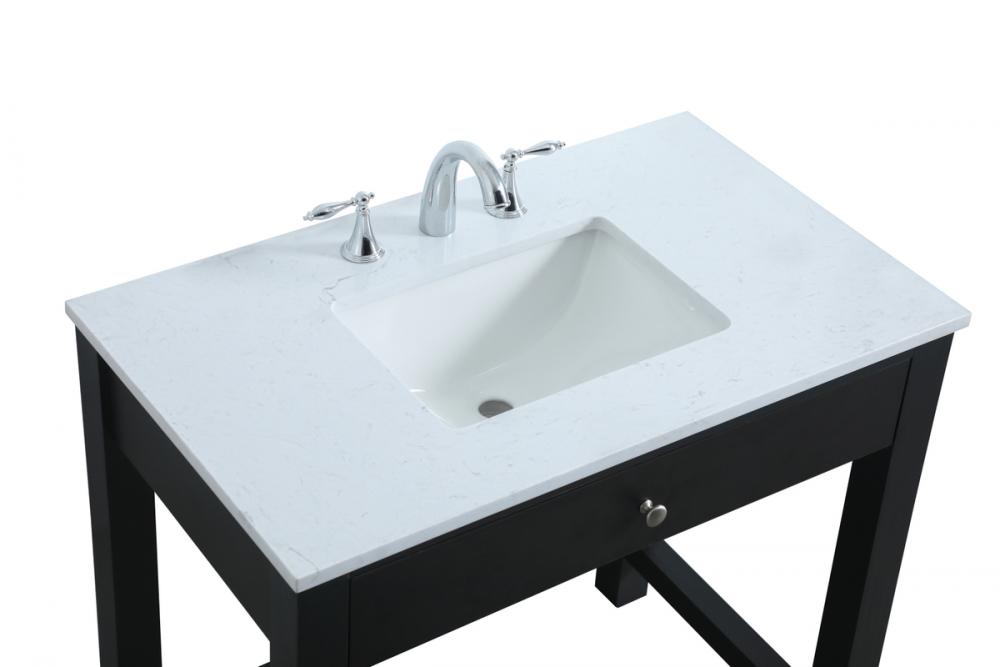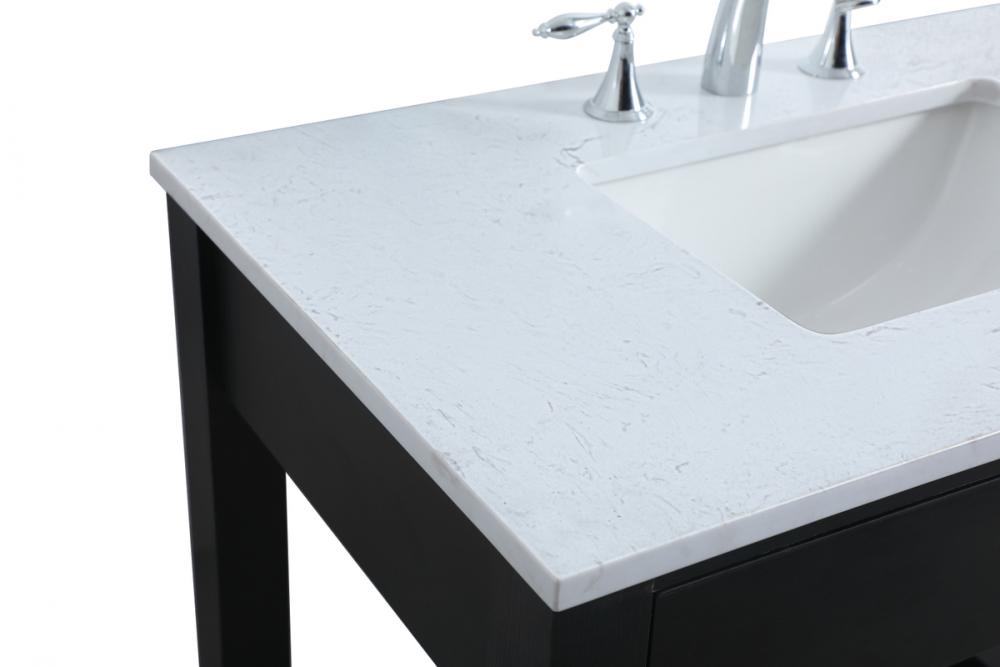 The vanity boasts a luxurious Calacatta look engineered marble stone top, combining timeless beauty with durability. This premium material adds a touch of opulence to your bathroom while combating to the rigors of daily use.