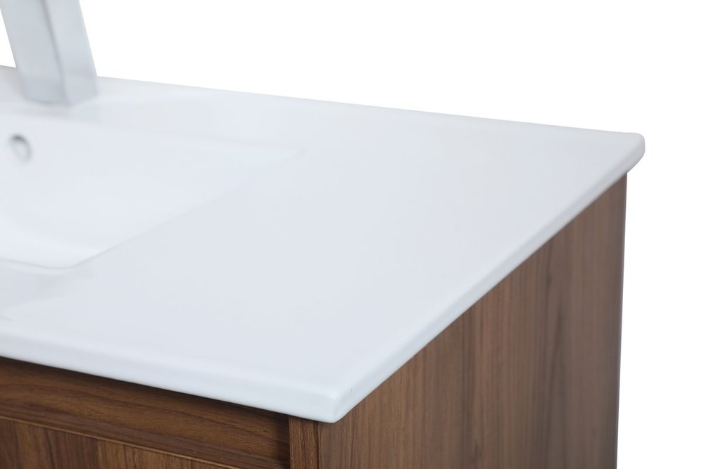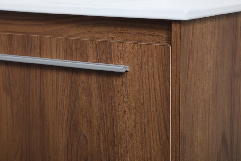 Save space and make your bathroom appear bigger with this 36" floating vanity in a walnut brown finish. Its minimal design will have you in awe, while its clean lines will leave your room feeling fresh and uncluttered. The Single u-drawer pulls out for storage while the open space below allows you to place extra towels or various other essentials.