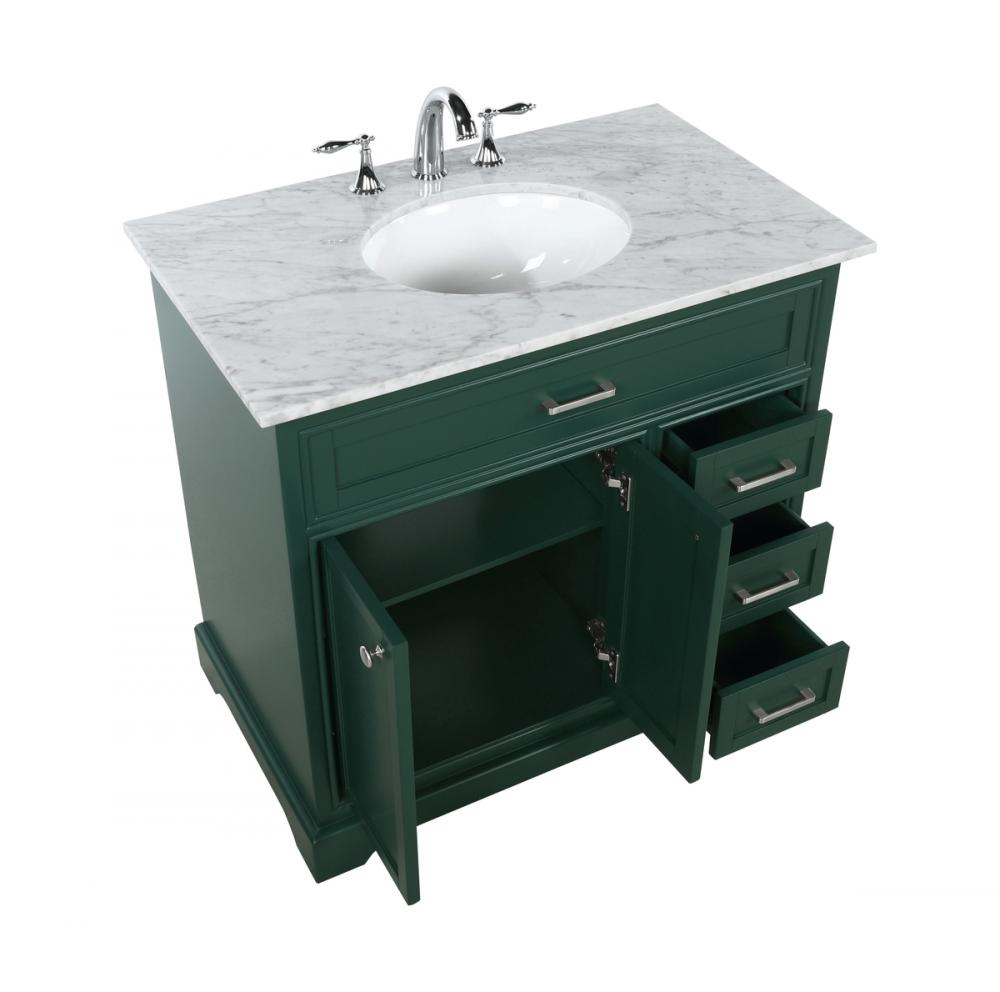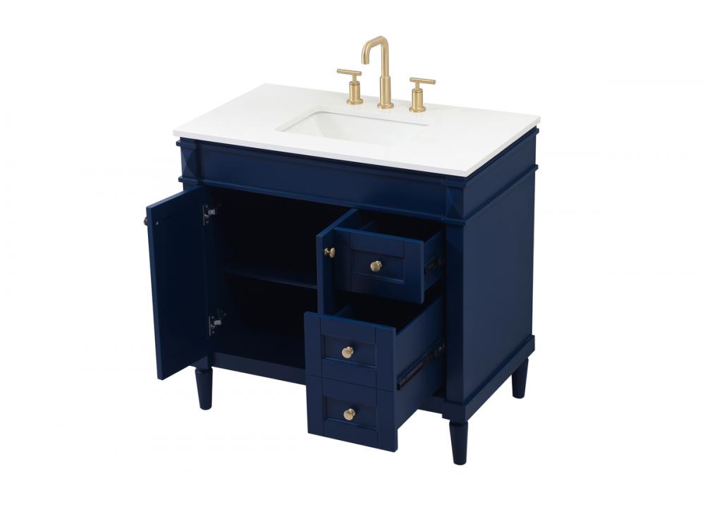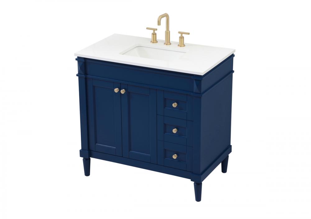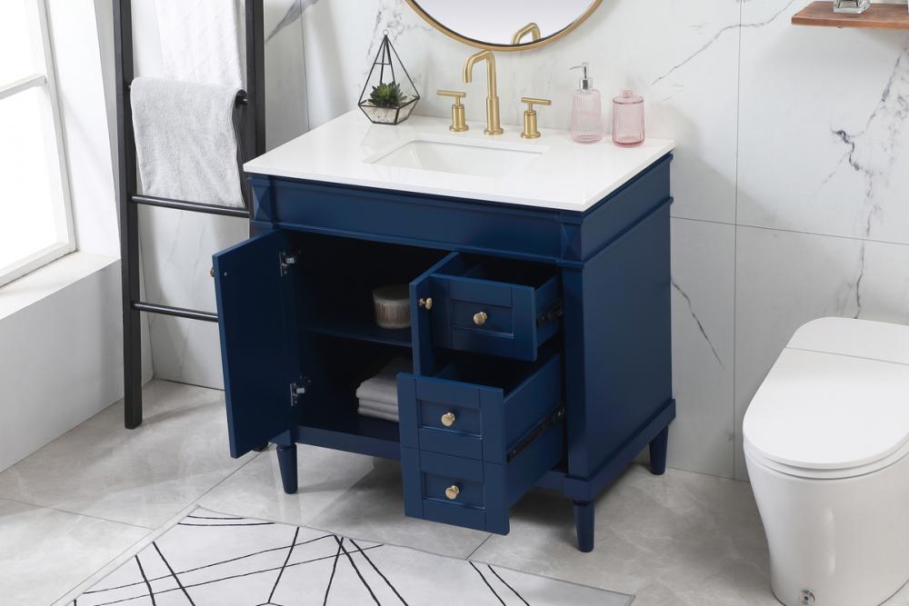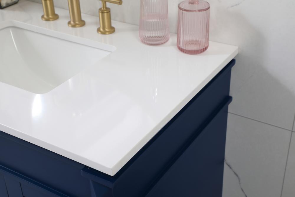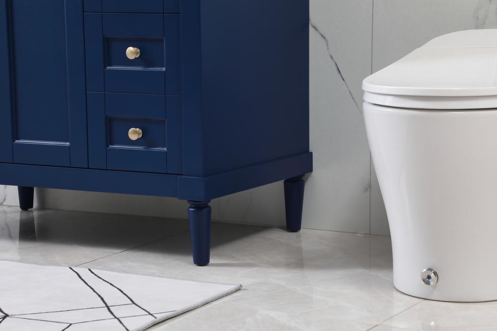 This transitional vanity is a beautiful piece of bathroom furniture will look amazing in your design scheme. The cabinet features a shaker style smooth door panel with simple round knobs and soft close hinges provide ample room for accessories. Packed with multiple side drawers with soft close glides for added comfort and full access to bath supplies. Convenient deep drawer stores all of your tall bath essentials. Constructed of engineered wood and solid wood legs with hand painted finish. The durable engineered marble countertop is a versatile material in an ivory white finish. Minor assembly of the legs needed to get this vanity up and running.