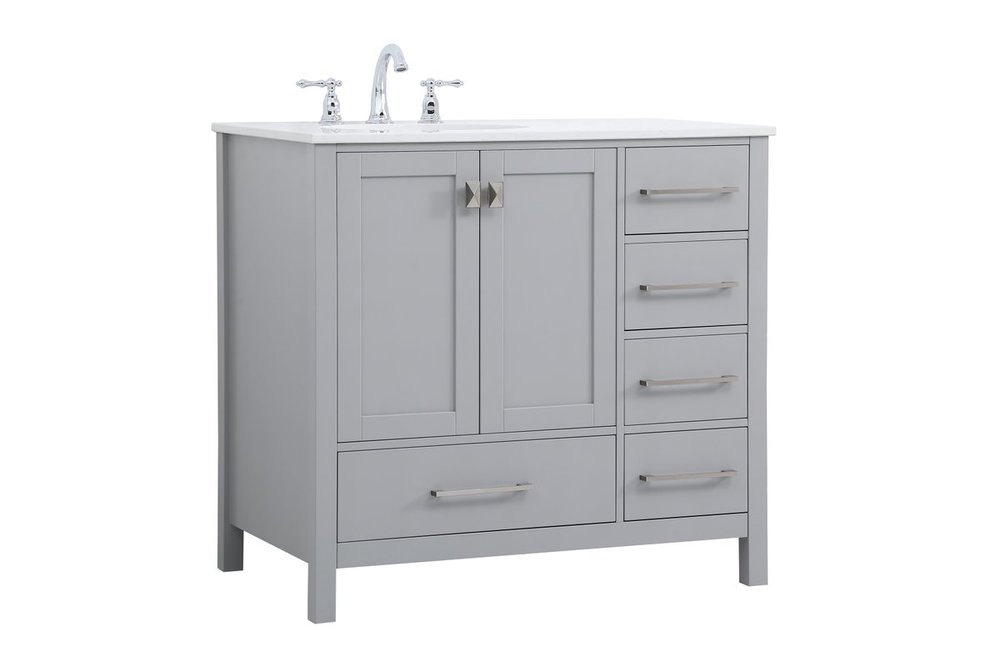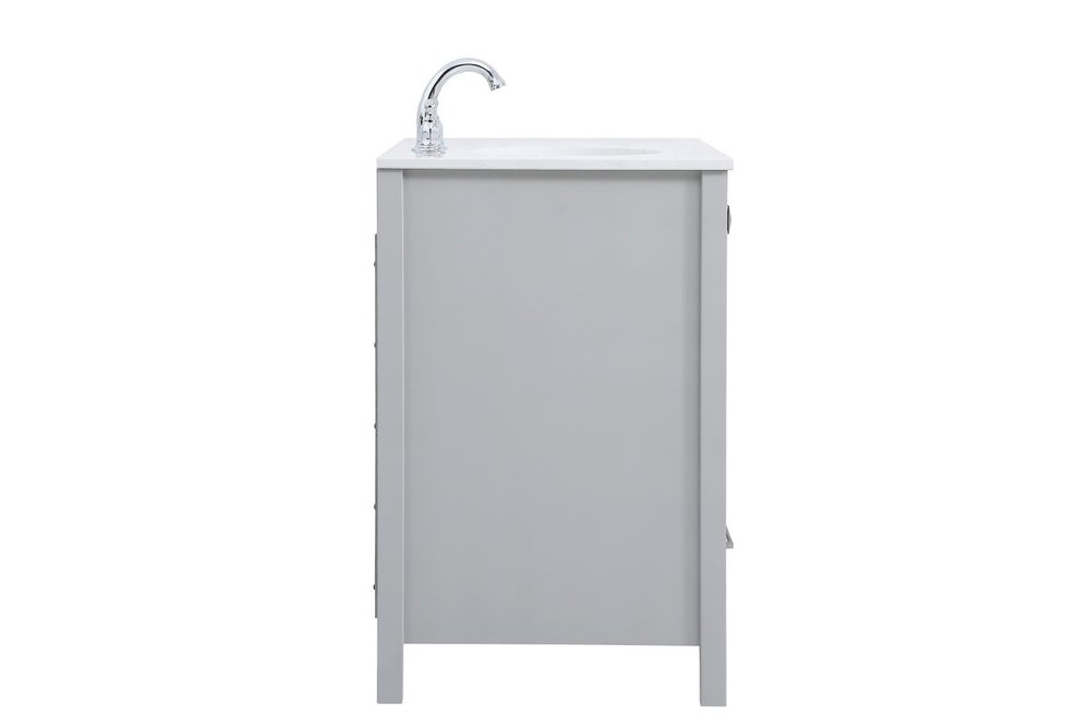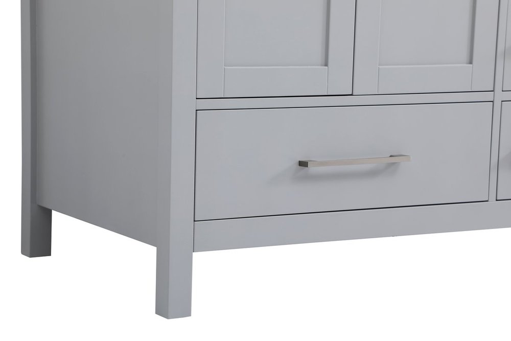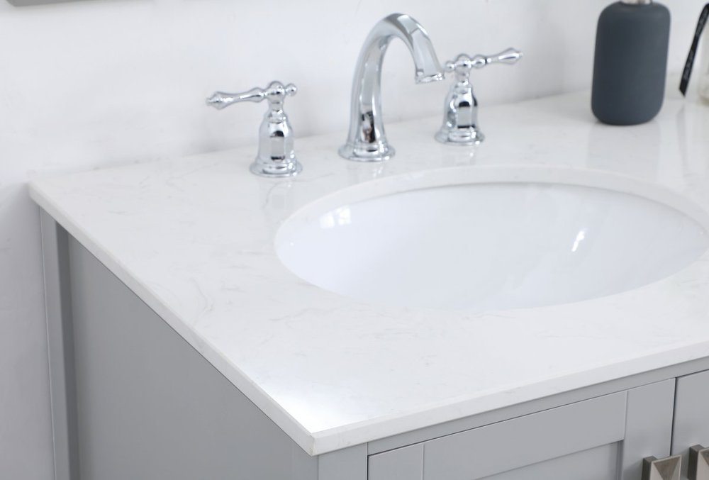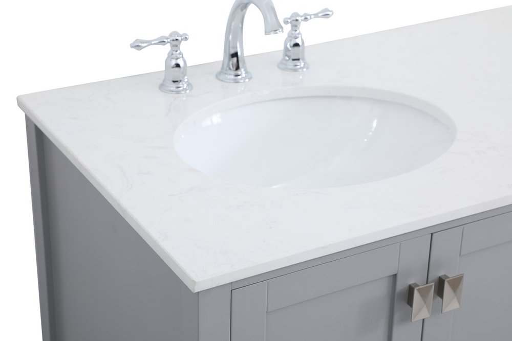 Never compromise beauty--the Irene collection stunning vanity in a gray finish will add lovely sophistication and complement any bathroom or powder room, while utilizing its charm and function to provide you with ample storage spaces. Brushed nickel pulls gently adorn the minimalist cabinet doors and drawers at the base, allowing for you to store away your bathroom essentials. The calacatta engineered marble countertop, porcelain undermount sink, dignified subtle engravings on the side edges, and squared legs all come together to create contemporary beauty. Work with your space, and design a beautiful room, no matter the size.