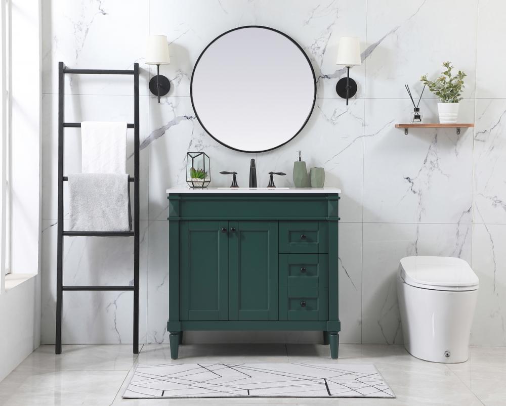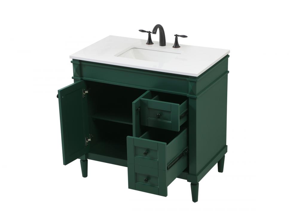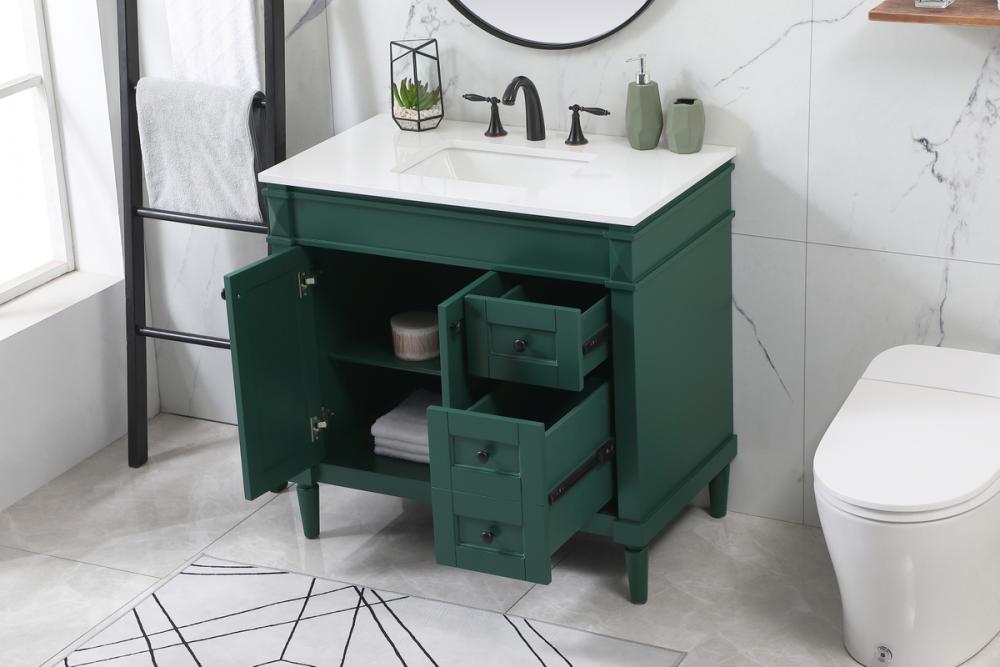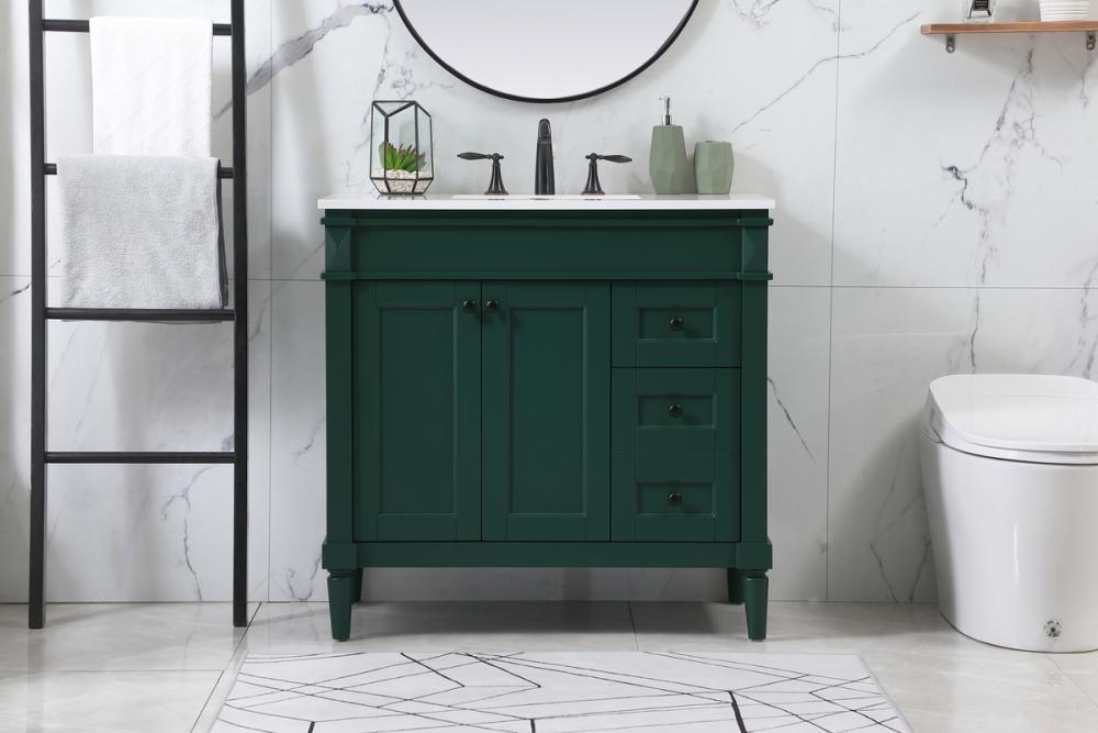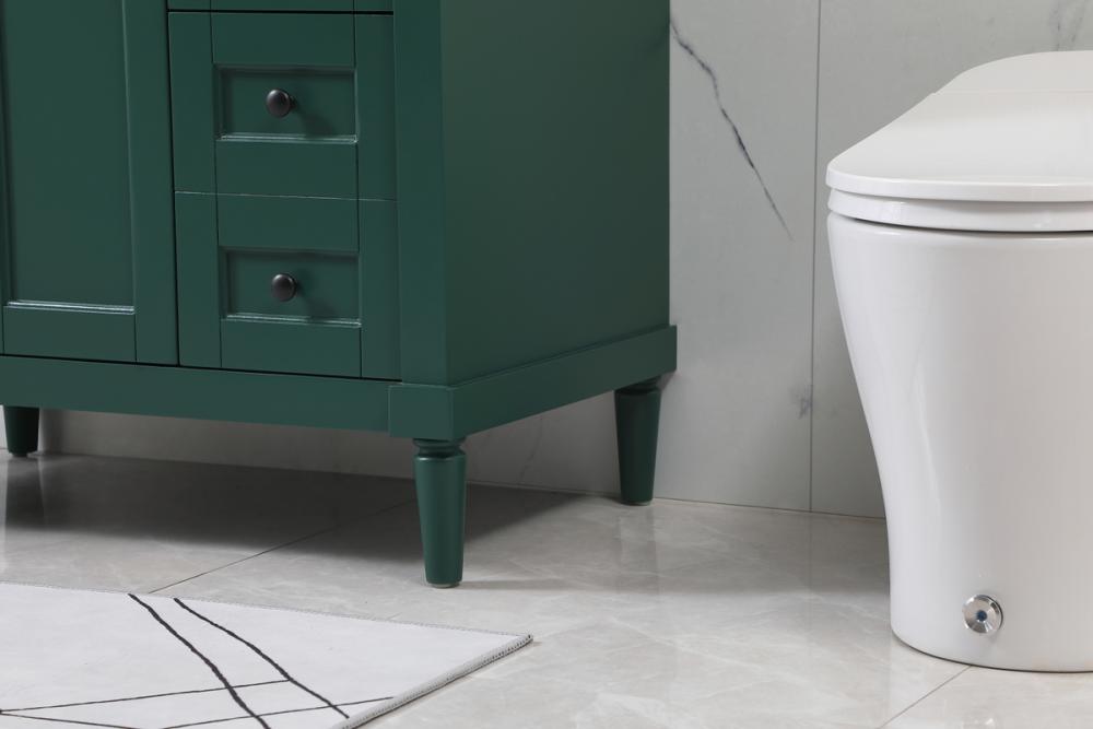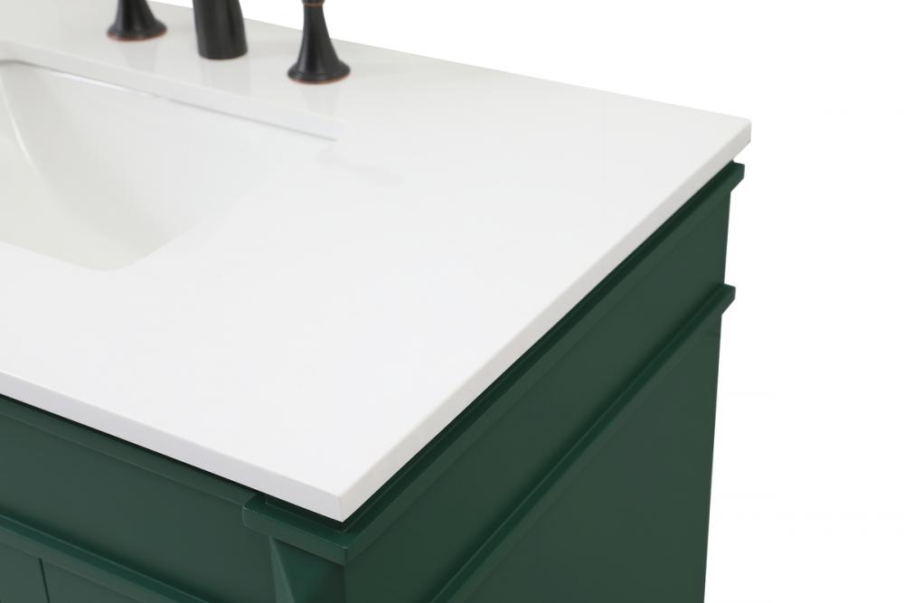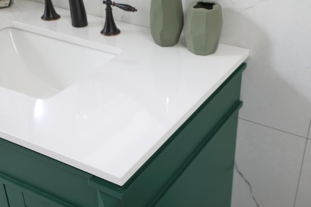 This transitional vanity is a beautiful piece of bathroom furniture will look amazing in your design scheme. The cabinet features a shaker style smooth door panel with simple round knobs and soft close hinges provide ample room for accessories. Packed with multiple side drawers with soft close glides for added comfort and full access to bath supplies. Convenient deep drawer stores all of your tall bath essentials. Constructed of engineered wood and solid wood legs with hand painted finish. The durable engineered marble countertop is a versatile material in an ivory white finish. Minor assembly of the legs needed to get this vanity up and running.