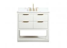 Live in modern comfort with this 36" gray finish vanity. Dressed in a gray and sleek gold metal hardware, its contemporary style will have your bathroom or powder room elevated in modern sophistication. The open shelf at the base and four drawers reveal ample storage space for your bathroom essentials and miscellany. Clean lines create its own visual interest, adding trendy looks to your already chic room.