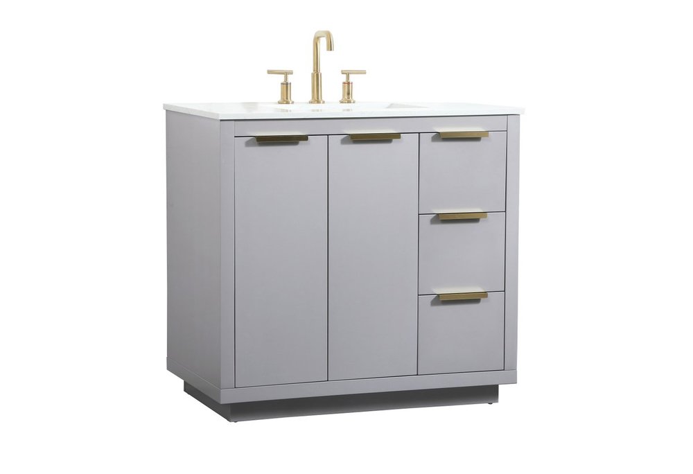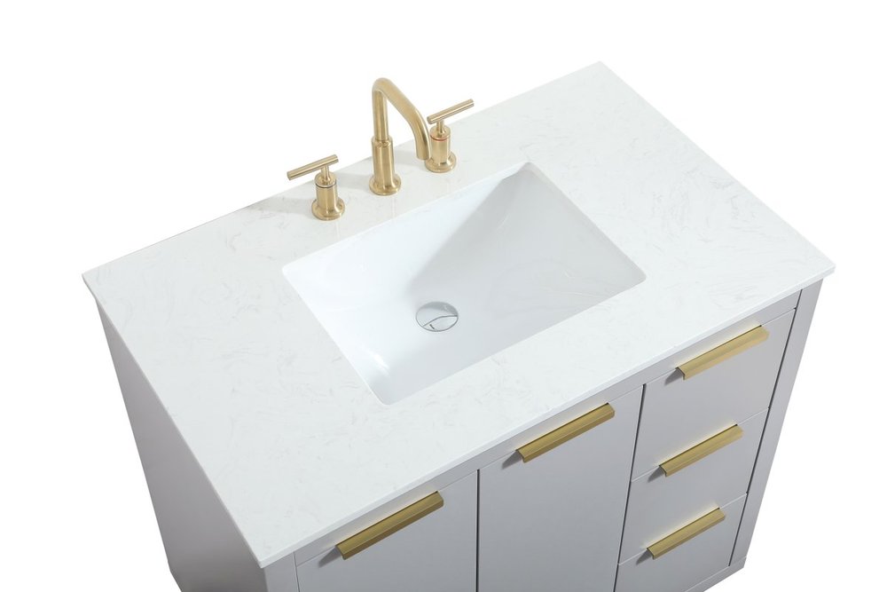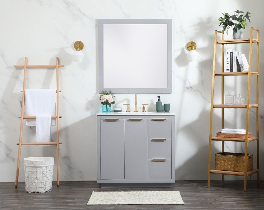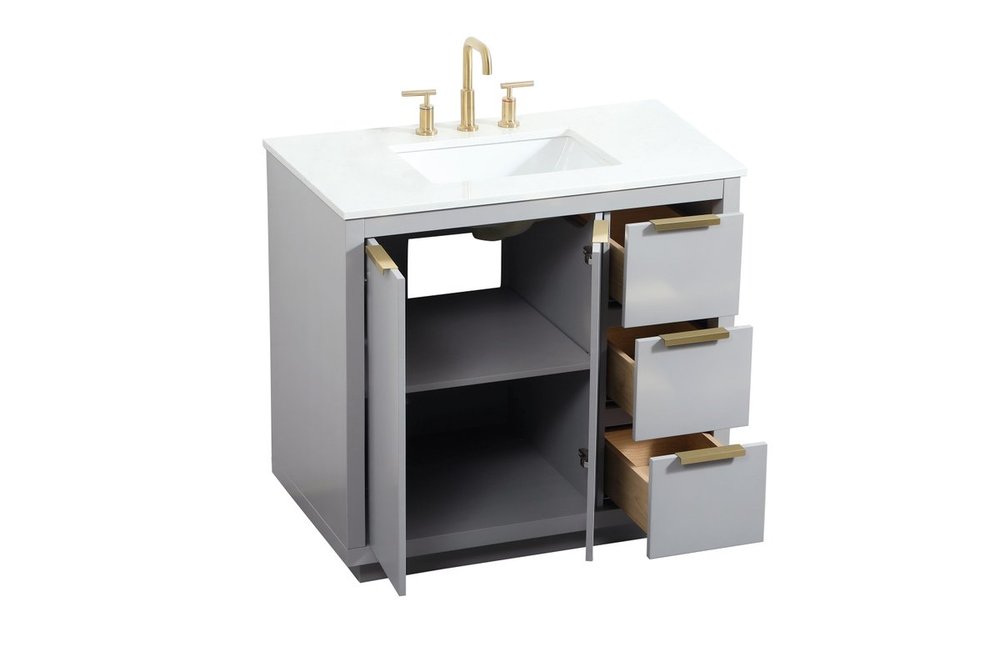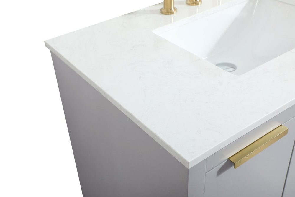 The Blake collection vanity cabinet will be a modern furniture statement piece in your bathroom. Our color combination creates a calming atmosphere in the room. The gold handles bring a vibrant touch to balance the vanity. With the simplistic clean lines, the cabinet catches eyes with its beautiful smooth surface. Open the cabinet doors to store what you desire and make use of the spacious area. Gently close the door and the soft closing glides will quietly closes the door. To top it off, the calacatta engineered marble adds a luxury and modern finish to the durable stonetop.