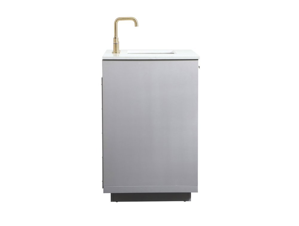 Comes with an undermount porcelain sink and a durable calacatta engineered marble stone top