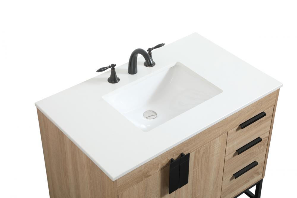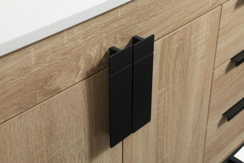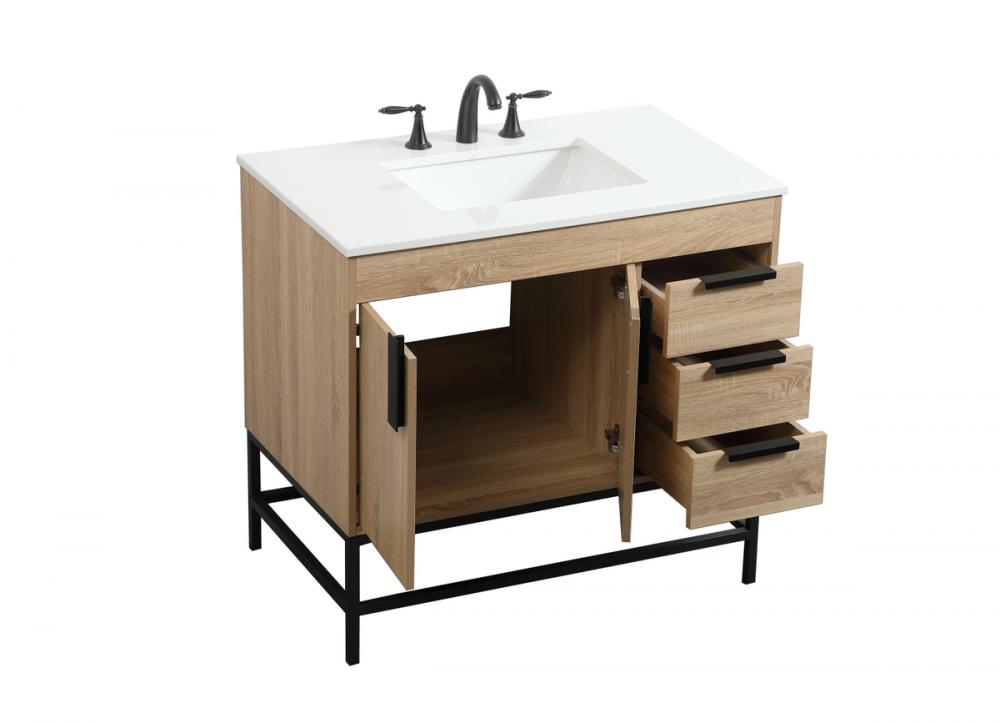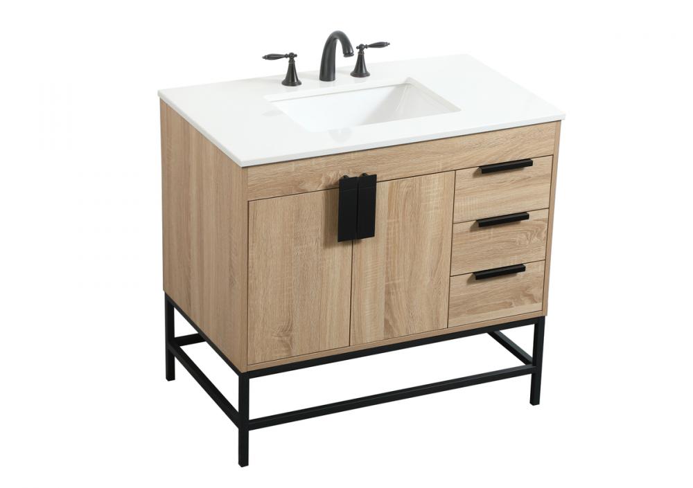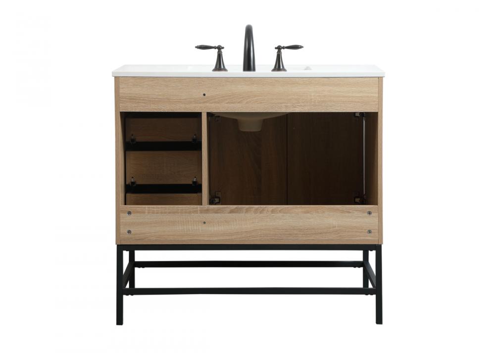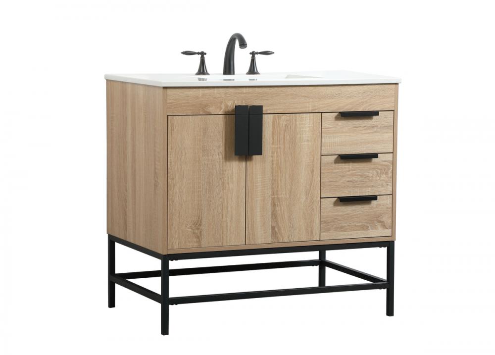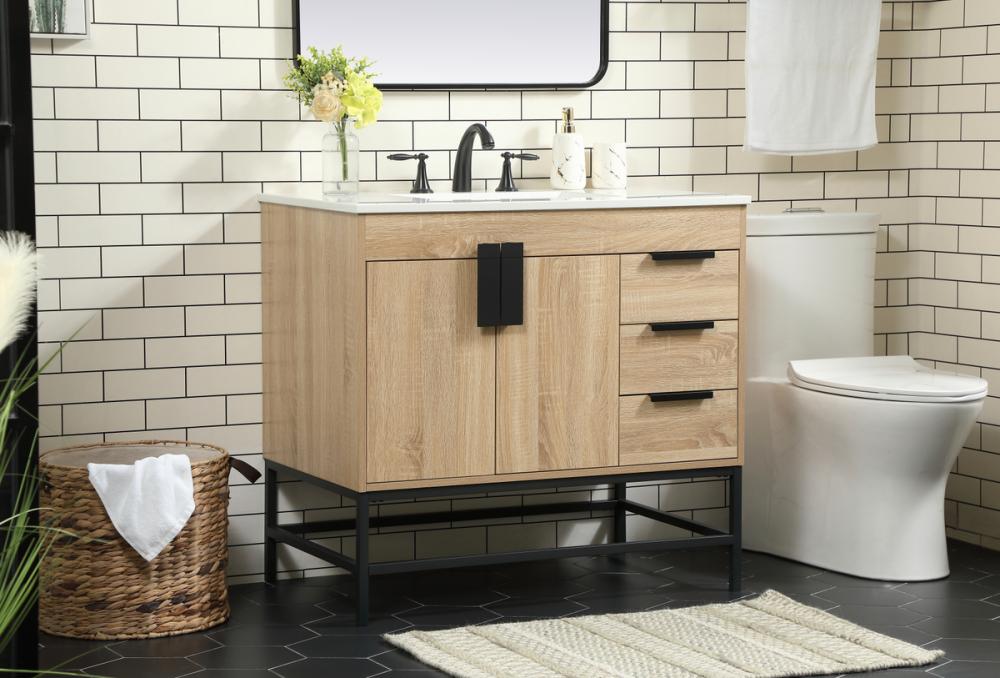 This vanity is a sleek-looking piece of bathroom furniture that is easy to incorporate into your design scheme. The cabinet features a smooth door panel with an oversized steel handle and soft close hinges provide ample room for accessories. Constructed of engineered wood, the powder-coated metal rod legs are an urban industrial look that we love. Minor assembly of the metal legs needed to get this vanity up and running.
