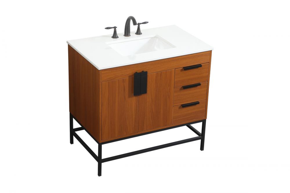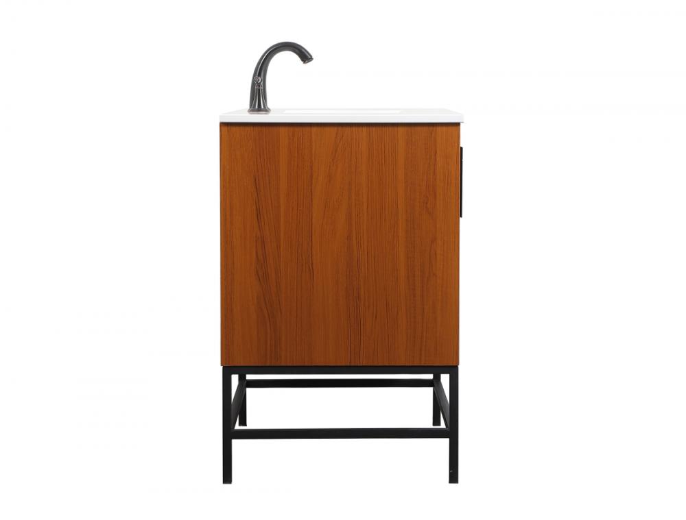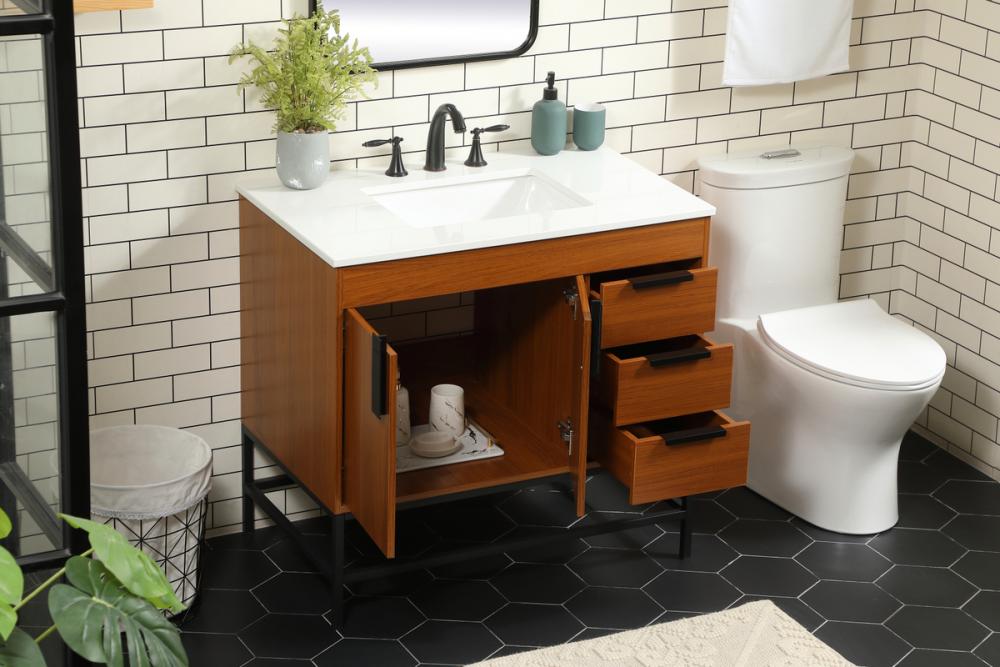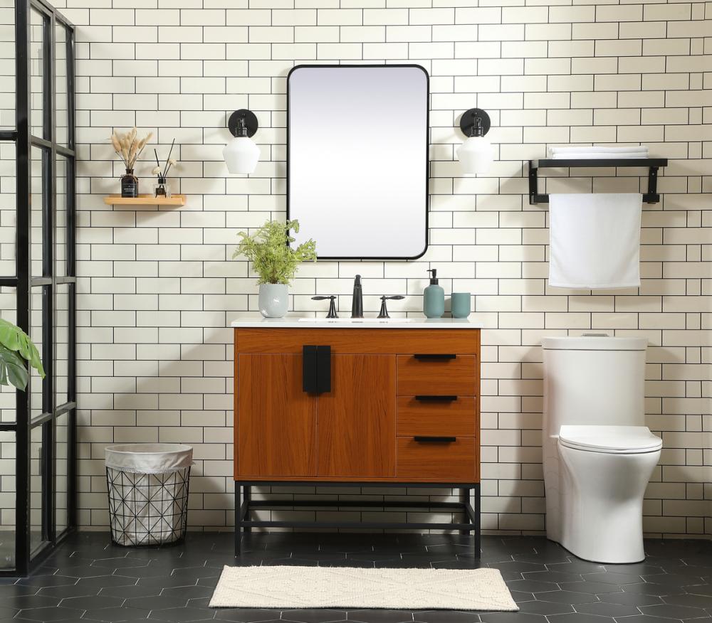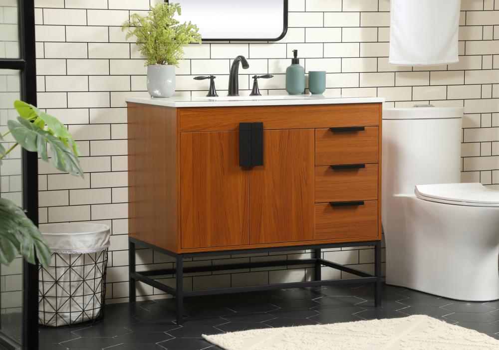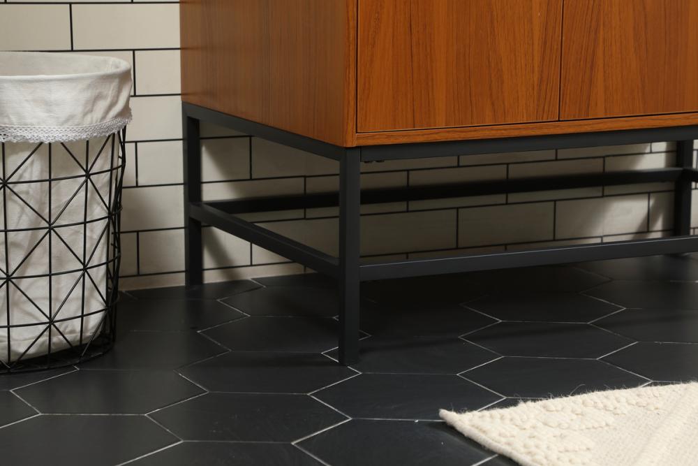 This vanity is a sleek-looking piece of bathroom furniture that is easy to incorporate into your design scheme. The cabinet features a smooth door panel with an oversized steel handle and soft close hinges provide ample room for accessories. Constructed of engineered wood, the powder-coated metal rod legs are an urban industrial look that we love. Minor assembly of the metal legs needed to get this vanity up and running.