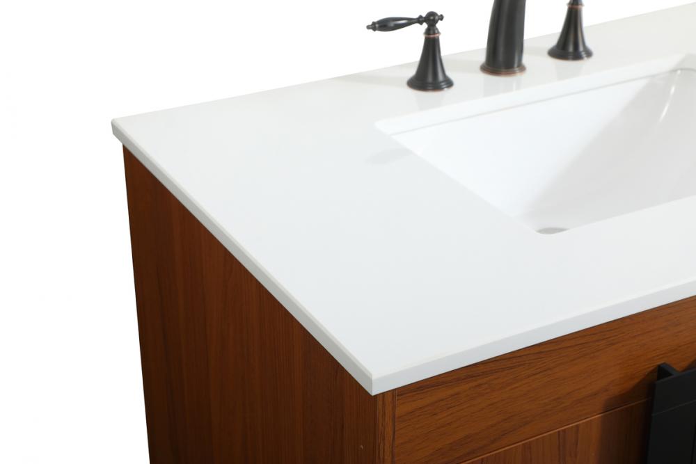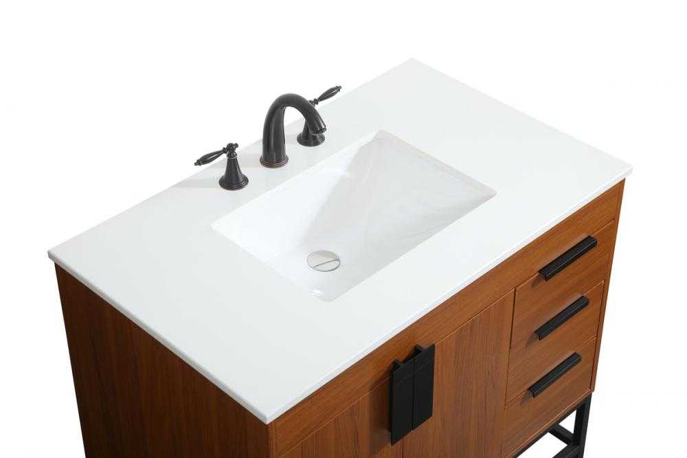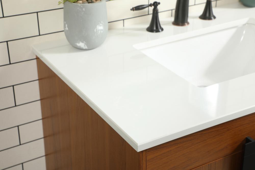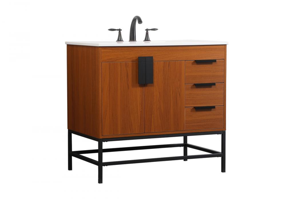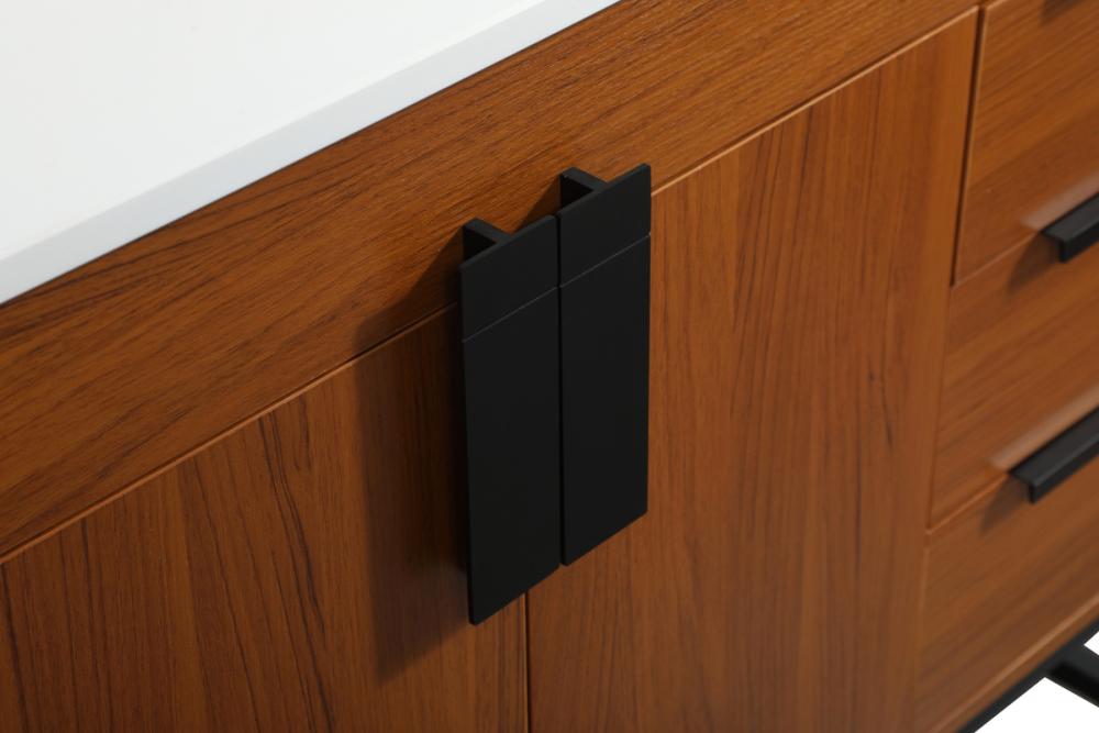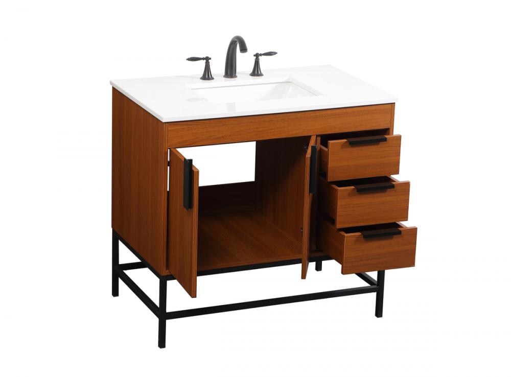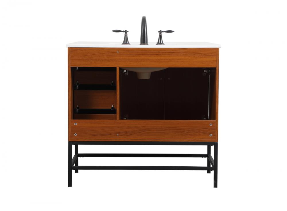 This vanity is a sleek-looking piece of bathroom furniture that is easy to incorporate into your design scheme. The cabinet features a smooth door panel with an oversized steel handle and soft close hinges provide ample room for accessories. Constructed of engineered wood, the powder-coated metal rod legs are an urban industrial look that we love. Minor assembly of the metal legs needed to get this vanity up and running.