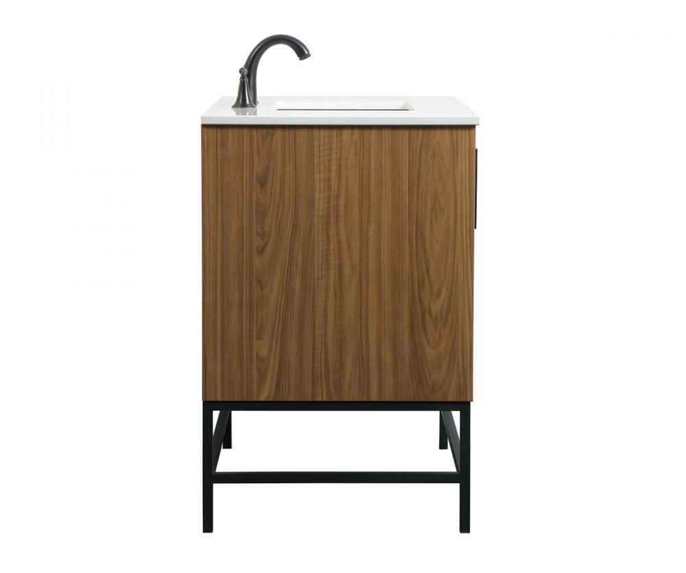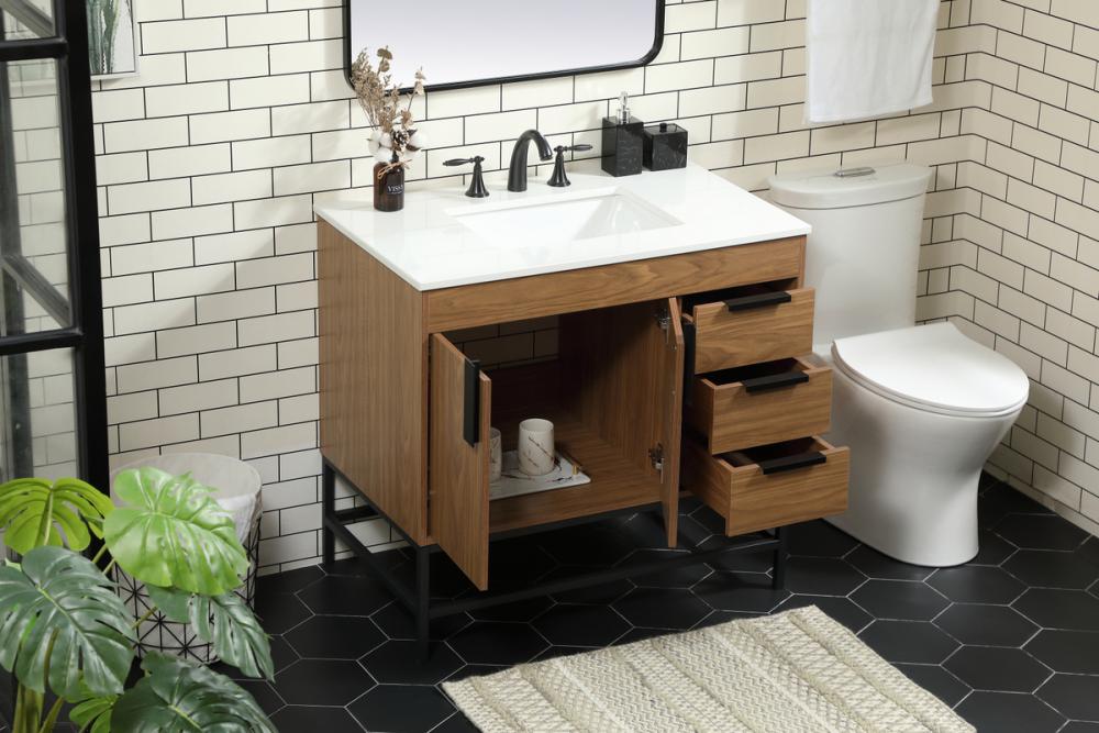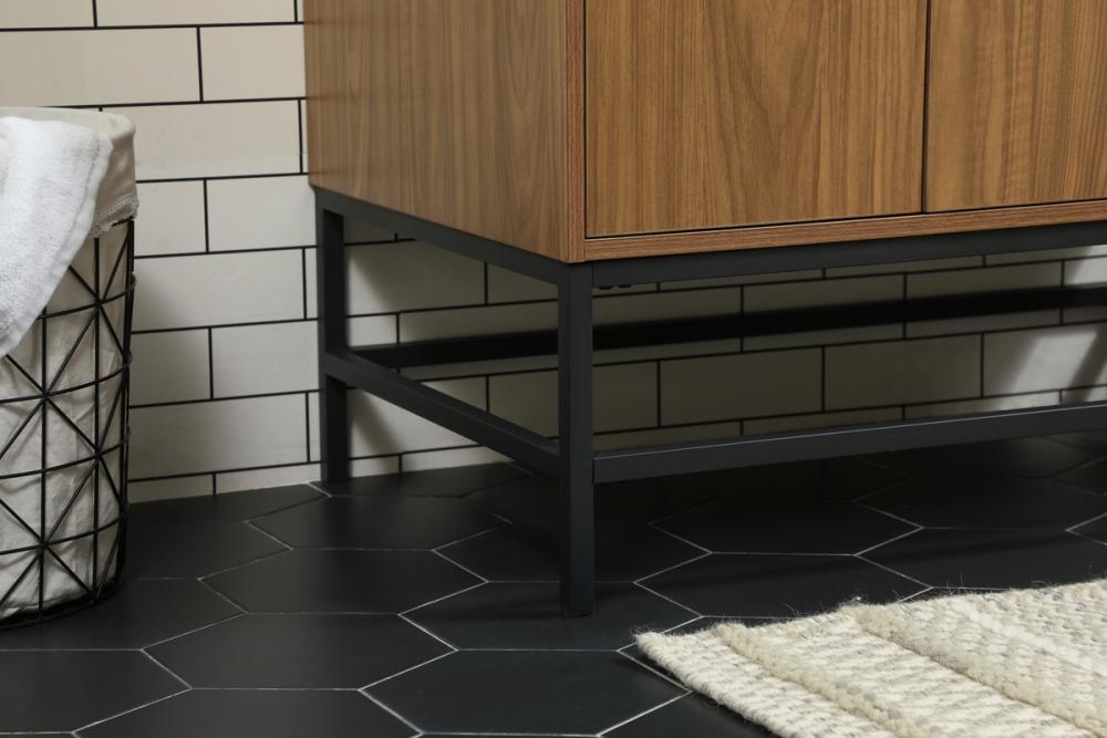 This vanity is a sleek-looking piece of bathroom furniture that is easy to incorporate into your design scheme. The cabinet features a smooth door panel with an oversized steel handle and soft close hinges provide ample room for accessories. Constructed of engineered wood, the powder-coated metal rod legs are an urban industrial look that we love. Minor assembly of the metal legs needed to get this vanity up and running.
