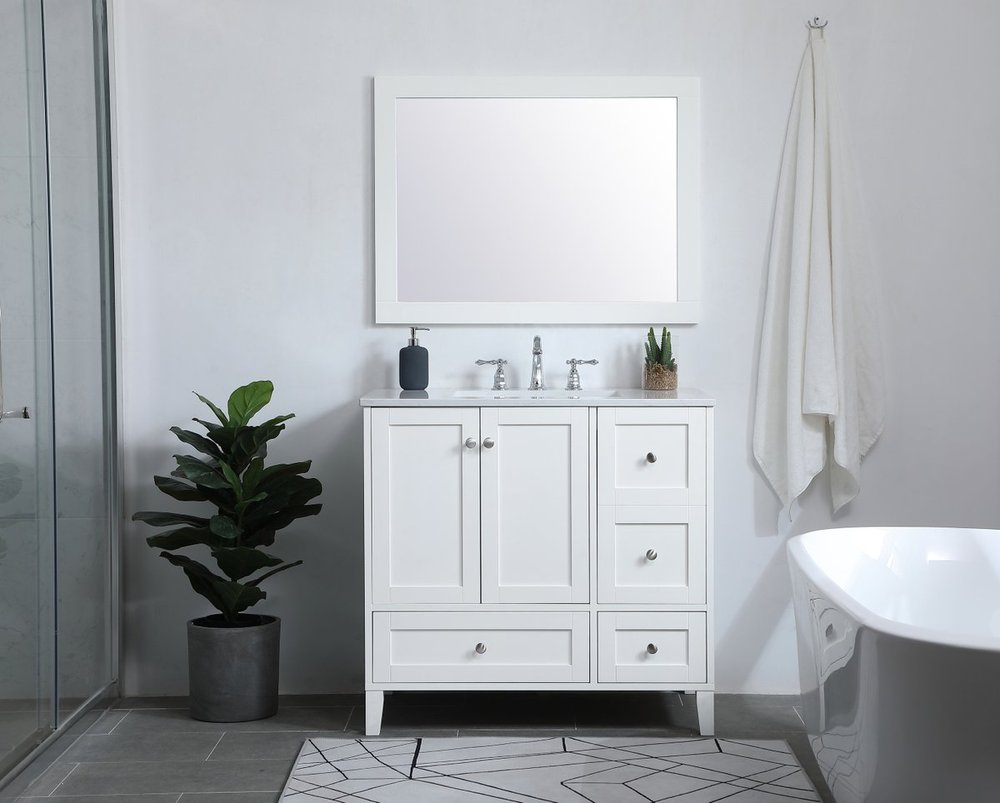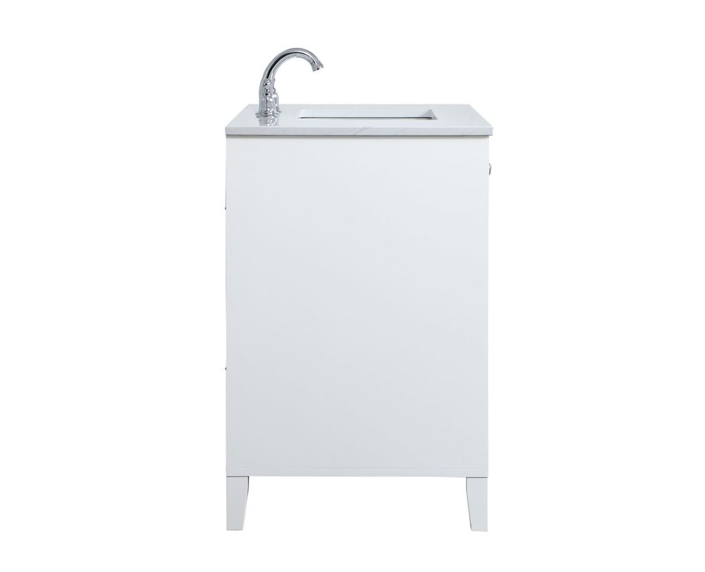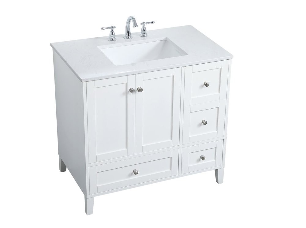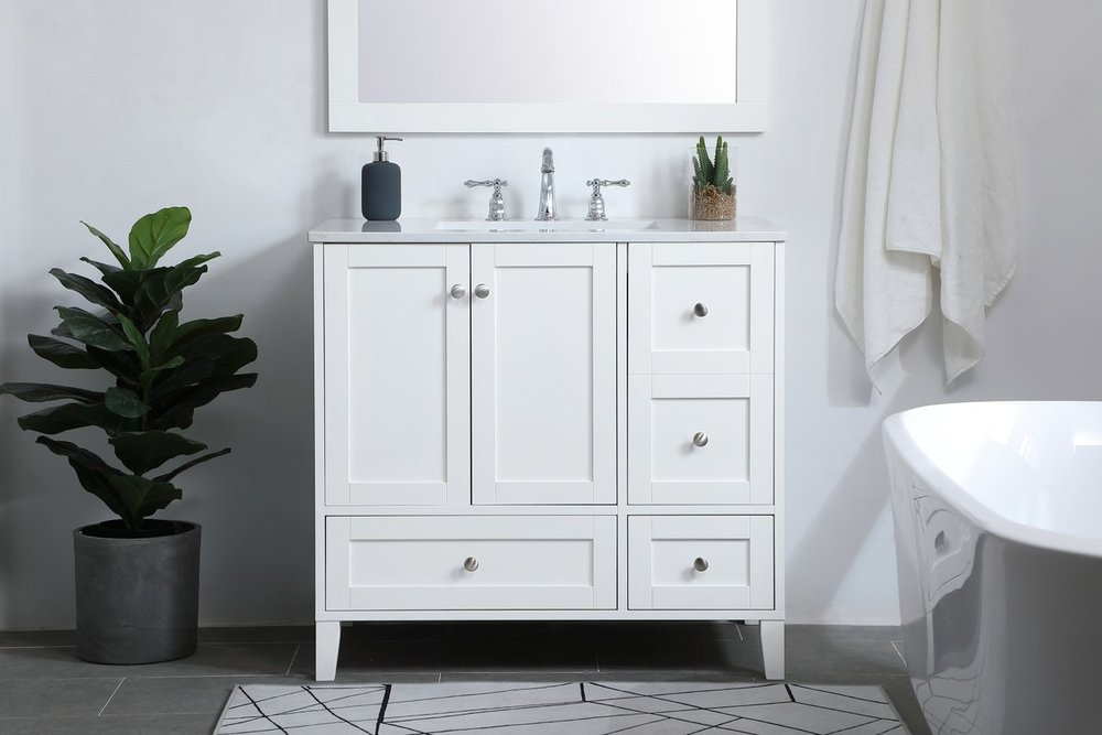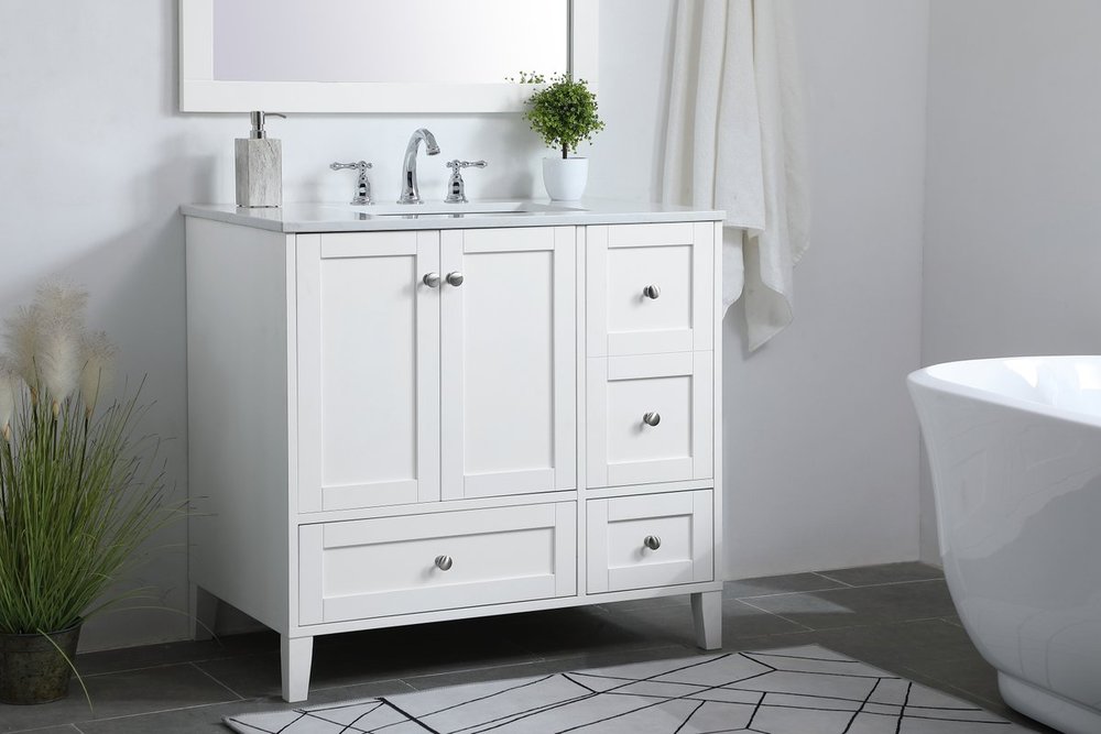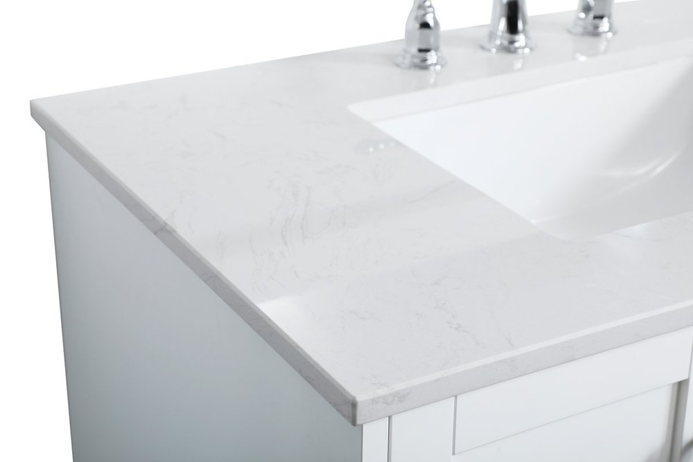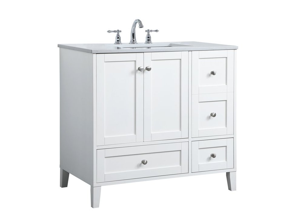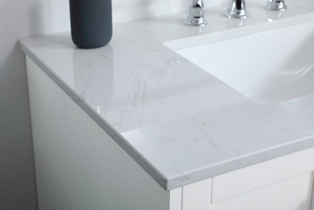 Its traditional modernity adds a mature beauty that will elevate any bathroom or powder room. Beautifully combining a natural marble countertop with white porcelain under mount sink.