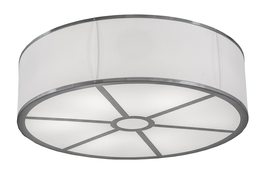 Designed with a clean round profile that fits into the homes and structures of nearly any architectural era; this ceiling fixture defines a distinctive sophisticated aesthetic. The robust frame and hardware are featured in an Extreme Chrome finish with White Textrene that surrounds a Statuario Idalight diffuser on the bottom of the fixture. Handcrafted in the USA; this fixture is available in custom colors; styles and sizes; as well as dimmable energy efficient lamping options. UL and cUL listed for damp and dry locations.