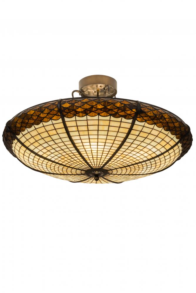 Inspired by the textures and colors of the mighty Oak Tree; this art glass shade is featured in Multi-toned Autumn Beige; and crowned with a scalloped trim in Bark Brown Granite Glass. The shade is created using the famous Meyda copperfoil construction and is complemented with steel hardware and decorative accents featured in an Antique Copper finish. Custom sizes; styles and colors are available; as well as dimmable energy efficient lamping options including LED. The fixture is UL and cUL listed for damp and dry locations. No two art glass shades will be the same as their individuality can be as remarkably unique as their personality.
