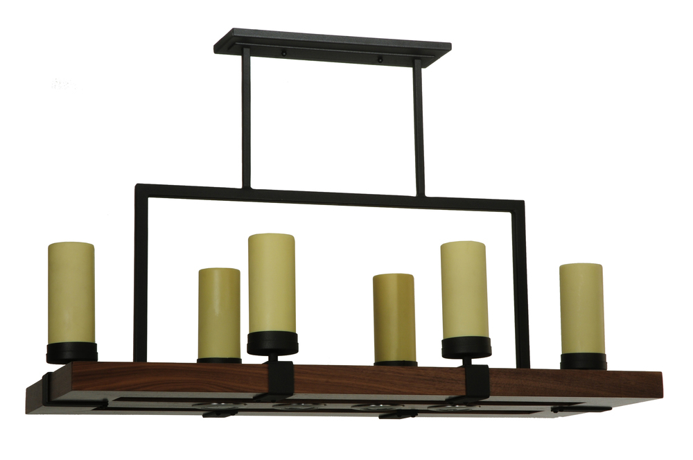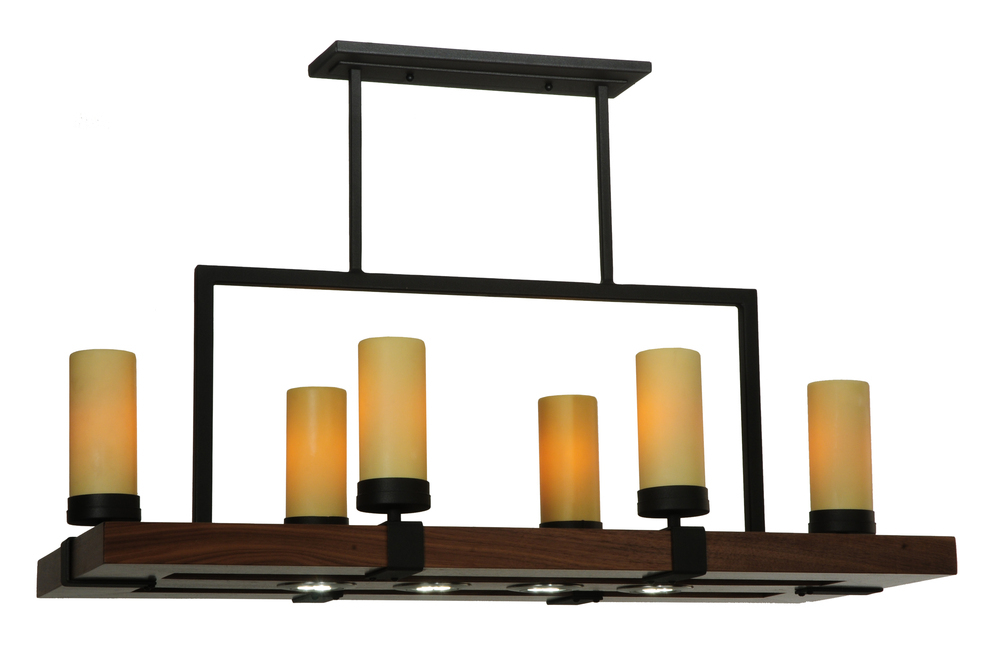 Six sophisticated Cylindres provide inviting ambient decorative lighting. 4 adjustable LED downlights deliver beautiful task lighting precisely where needed on countertops; tabletops and other surfaces below. Handcrafted of fine Walnut wood. The pendant is designed with an architectural suspension structure finished in Wrought Iron. Custom made in our 180;000 square foot manufacturing facility in Yorkville; New York. Additional sizes and finishes are available. UL and cUL listed for damp and dry locations.