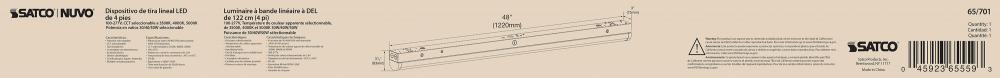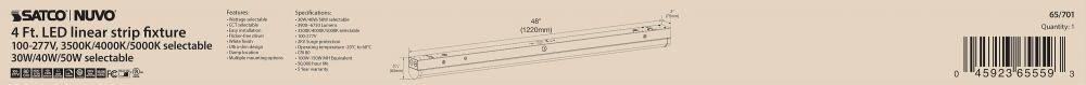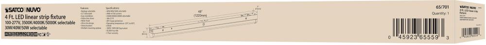 SATCO NUVO offers LED Linear Strip Fixtures in 2, 4, and 8-foot sizes, providing versatile lighting solutions for a range of applications. All fixtures are CCT selectable with 3500K, 4000K, and 5000K options, allowing users to adjust the color temperature