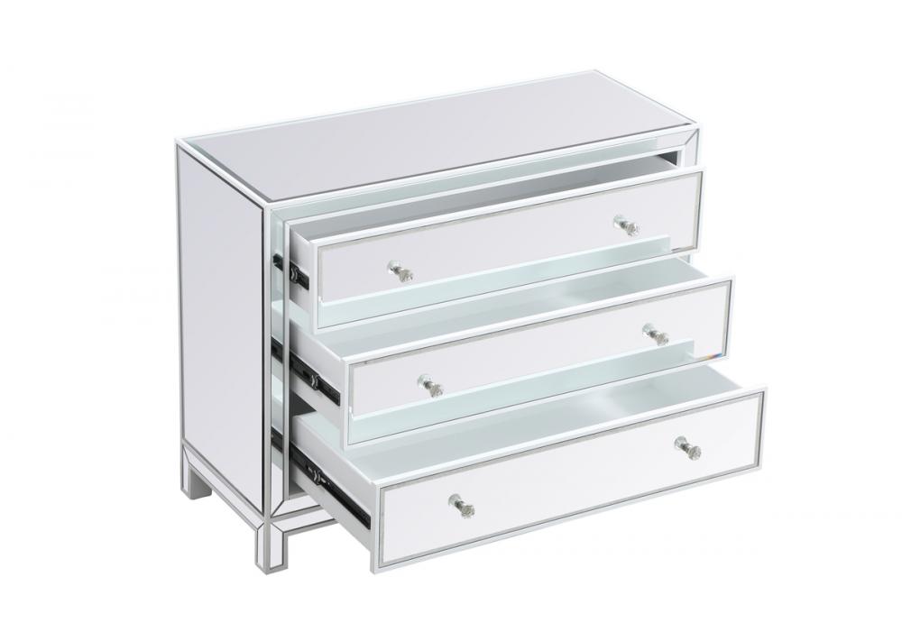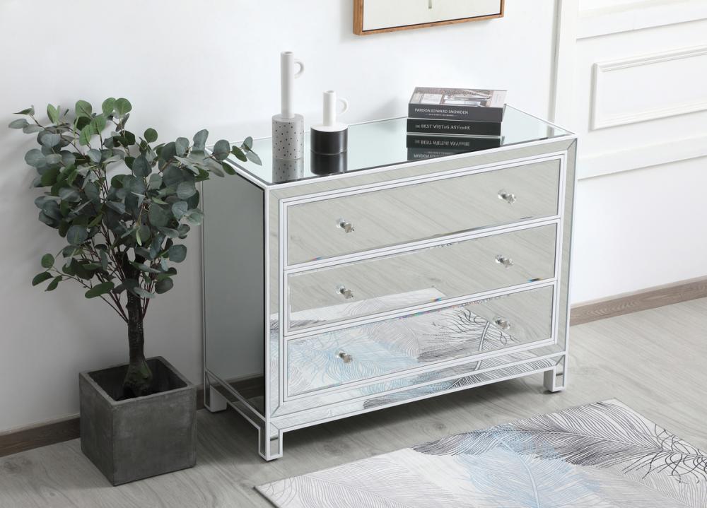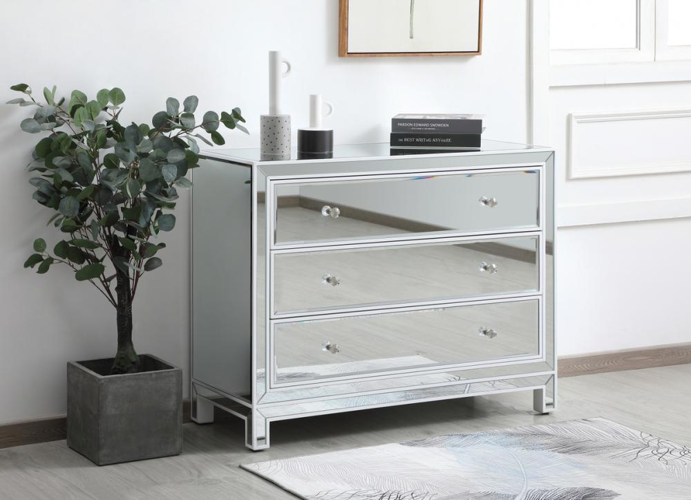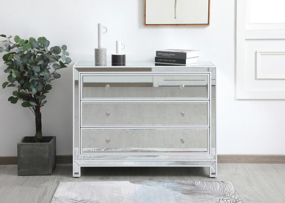 Striking a balance between elegance and functionality, this 40 inch wide cabinet is likely to be a great choice. It has three drawers with generous storage space, glamorous mirror surfaces, and stylish mitered corners. This contemporary chest with drawers is a perfect storage complement in any room in your home.