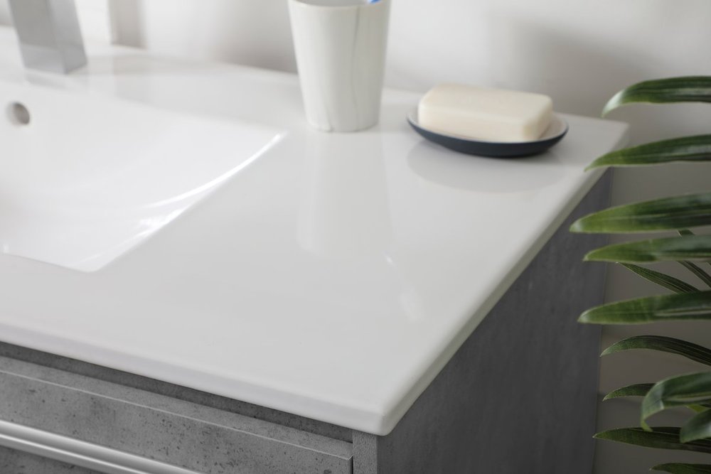 Save space and make your bathroom appear bigger with this 40" floating vanity in a concrete grey finish. Its minimal design will have you in awe, while its clean lines will leave your room feeling fresh and uncluttered. The Single u-drawer pulls out for storage while the open space below allows you to place extra towels or various other essentials.