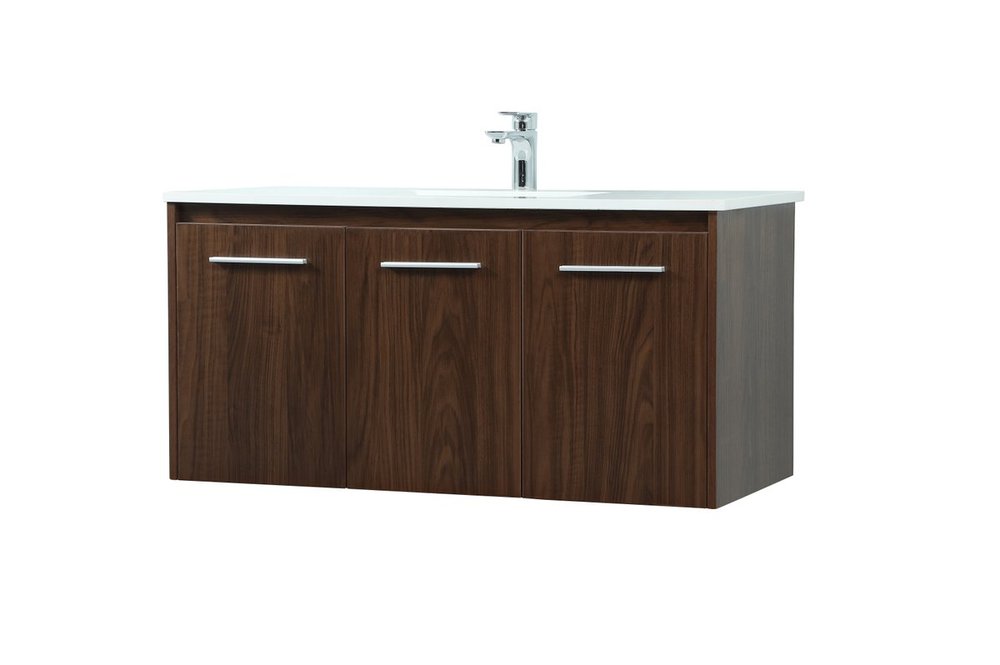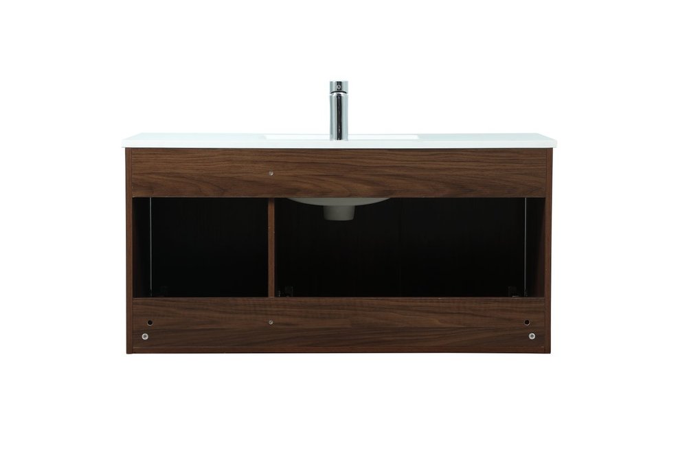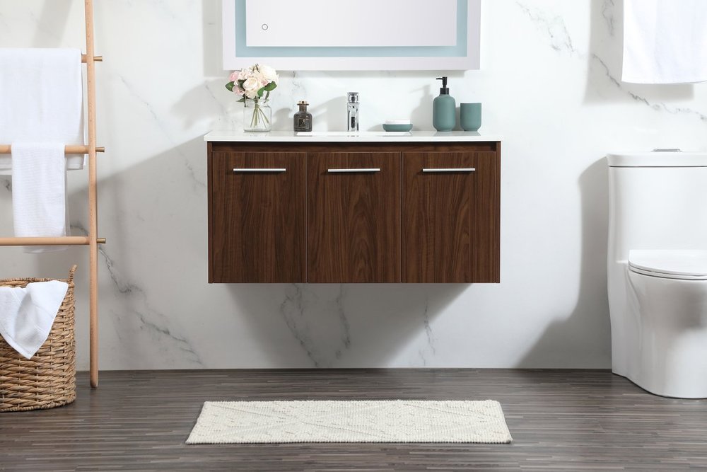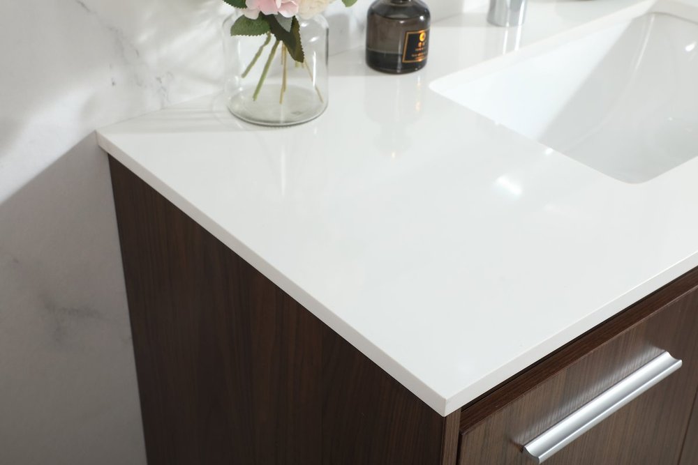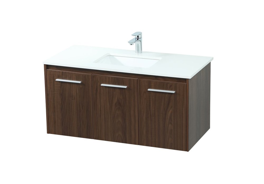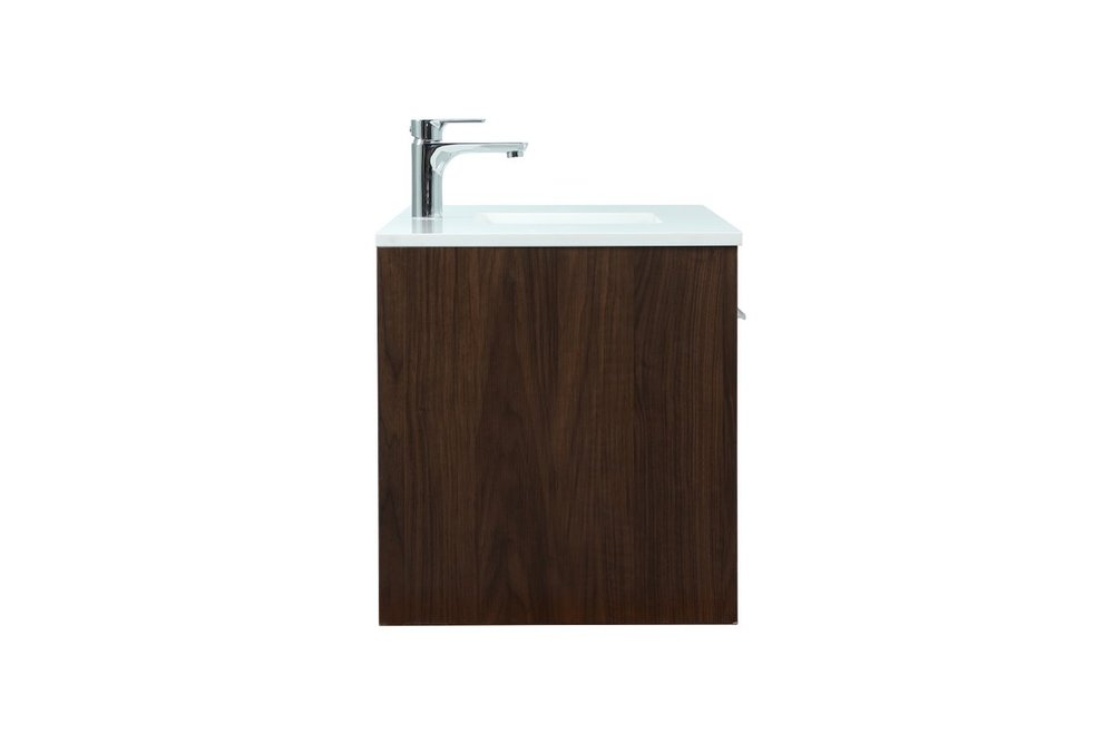 Save space and make your bathroom appear bigger with this floating vanity that comes in several finishes. Its minimal design will have you in awe, while its clean lines will leave your room feeling fresh and uncluttered. The Single cabinet opens with soft closing doors that allows for storage to place extra towels or various other essentials. Its low maintenance and durable engineered marble top will surely last through many washes.
