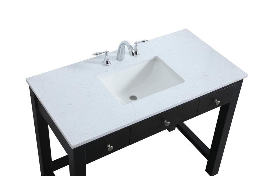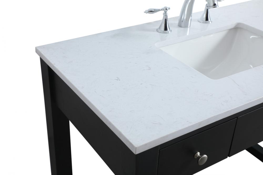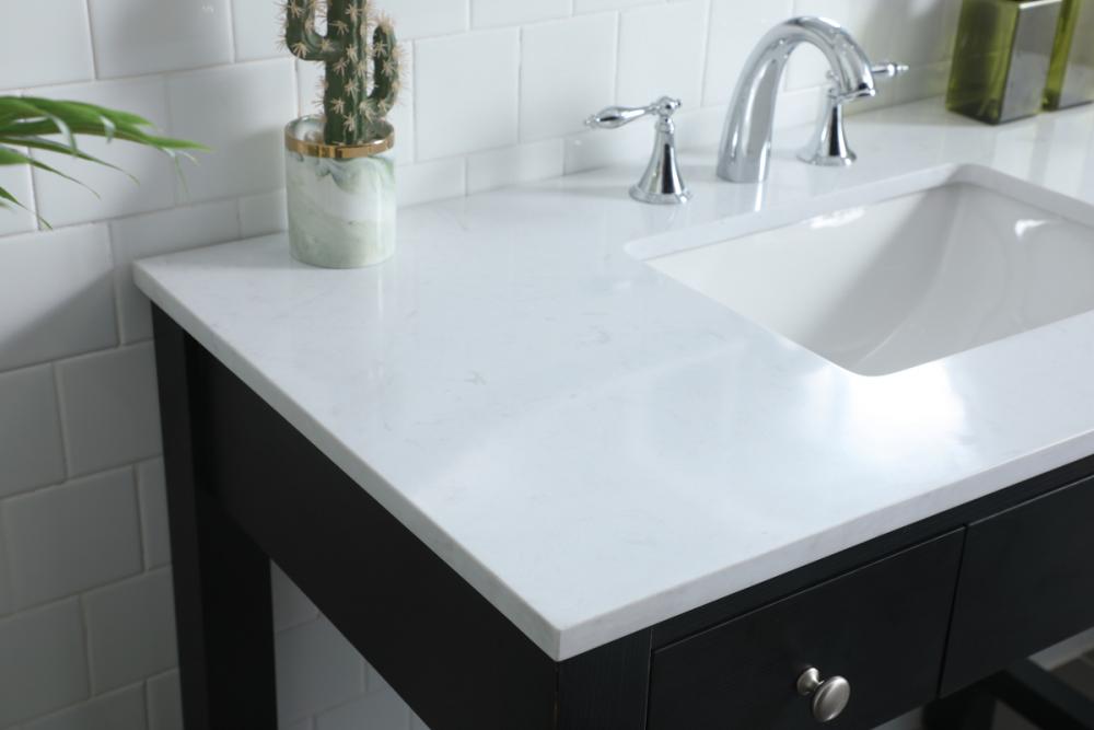 The vanity boasts a luxurious Calacatta look engineered marble stone top, combining timeless beauty with durability. This premium material adds a touch of opulence to your bathroom while combating to the rigors of daily use.