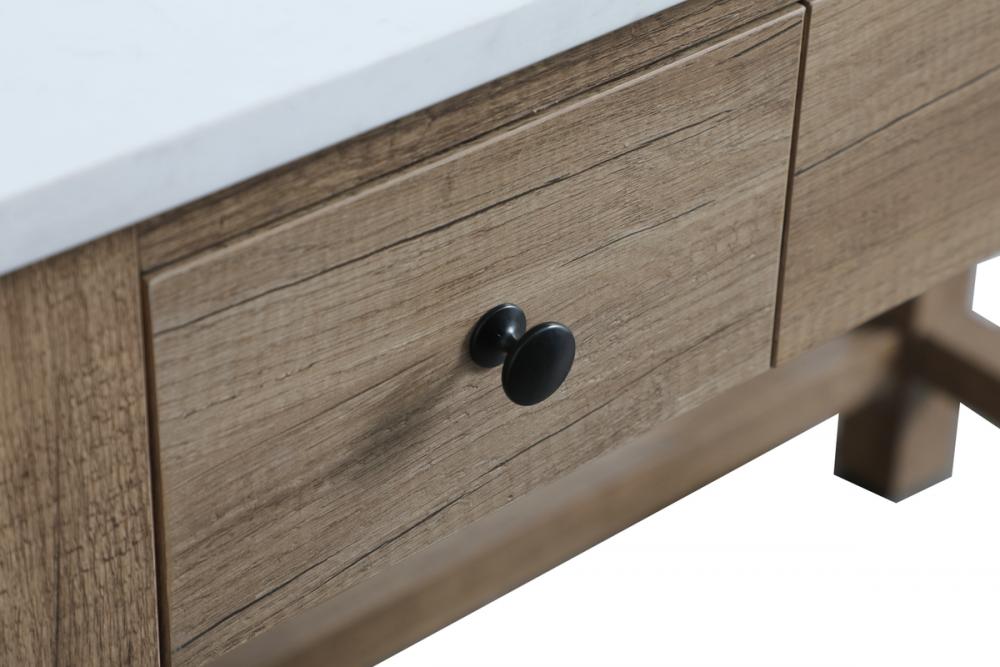 The vanity boasts a luxurious Calacatta look engineered marble stone top, combining timeless beauty with durability. This premium material adds a touch of opulence to your bathroom while combating to the rigors of daily use.