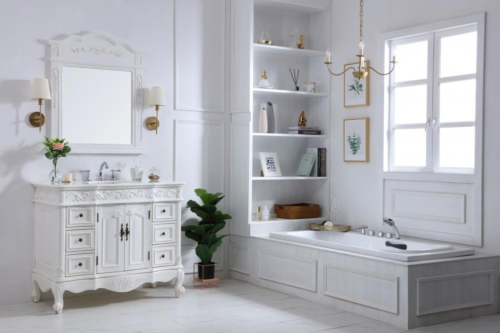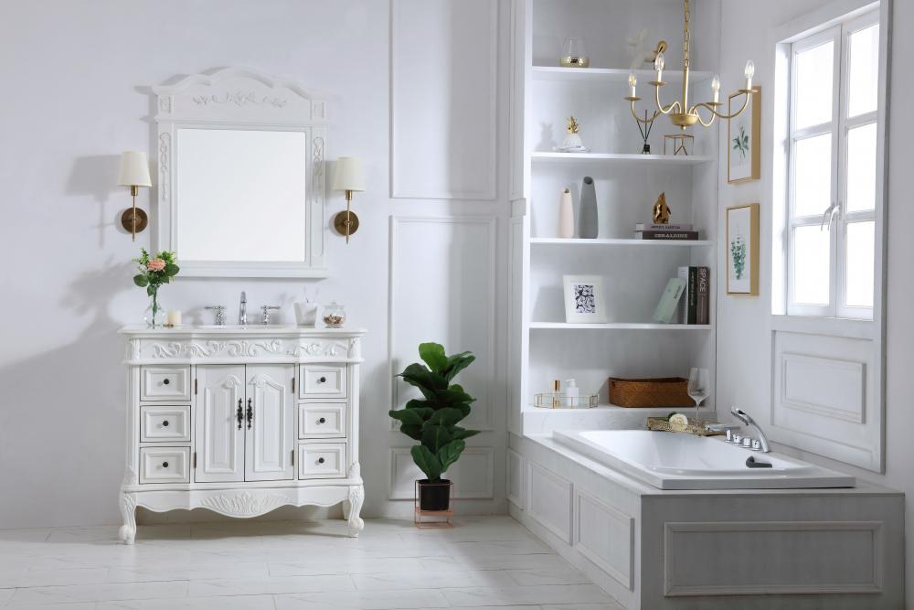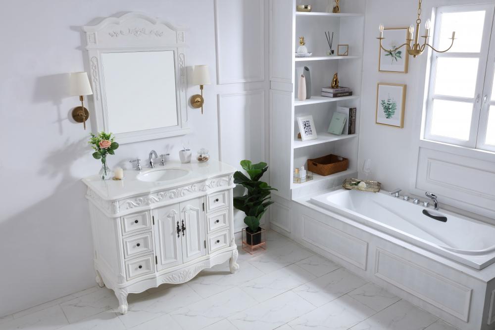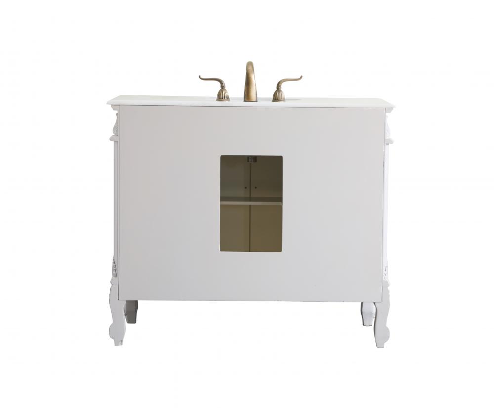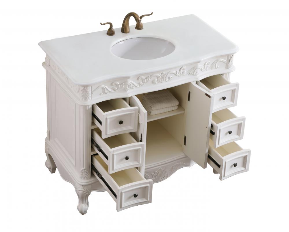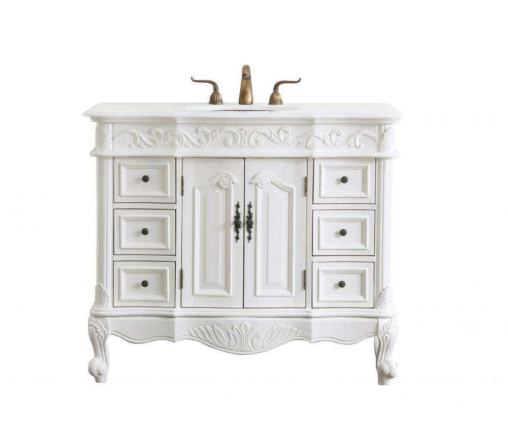 42 inch Single Bathroom vanity in antique white with ivory white engineered marble