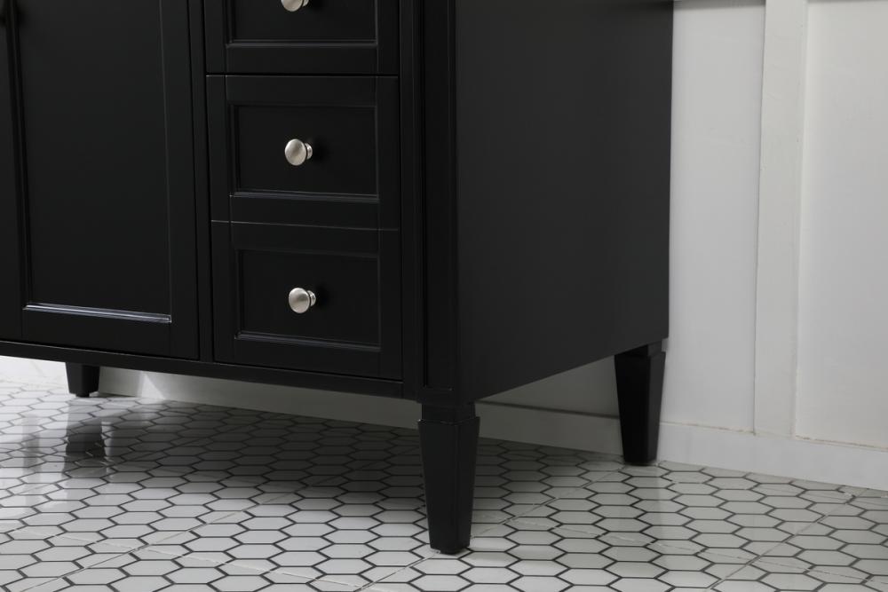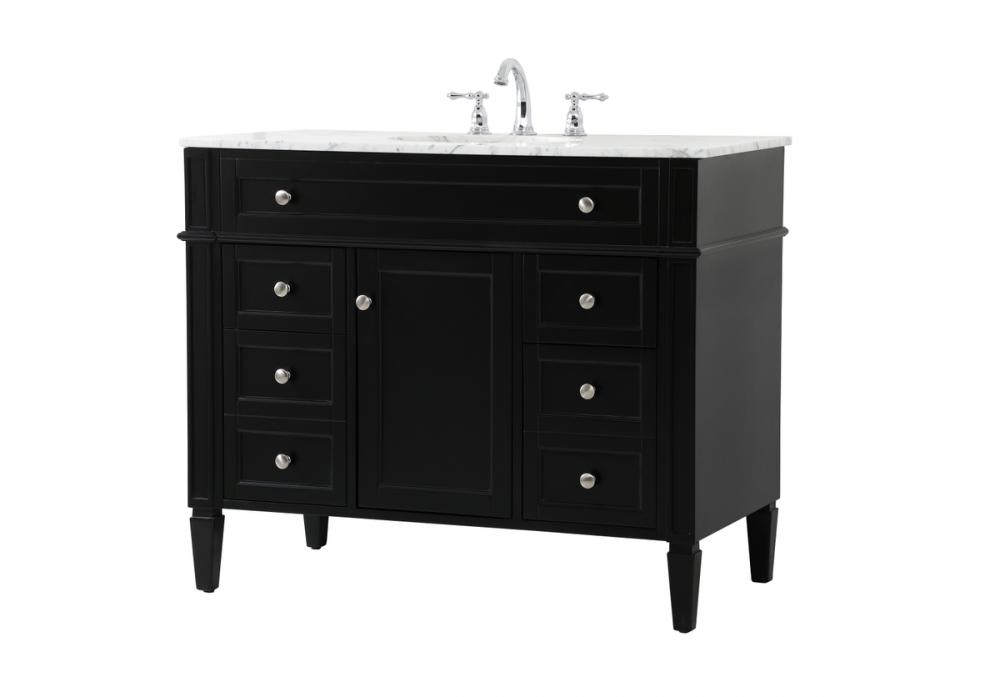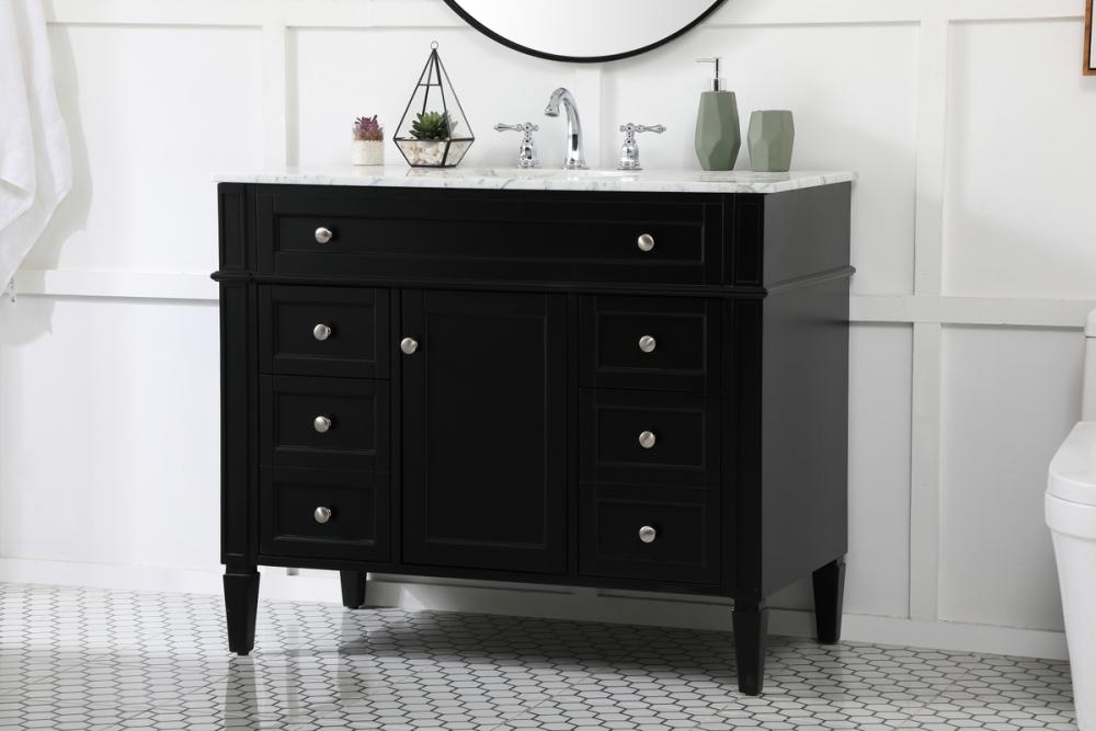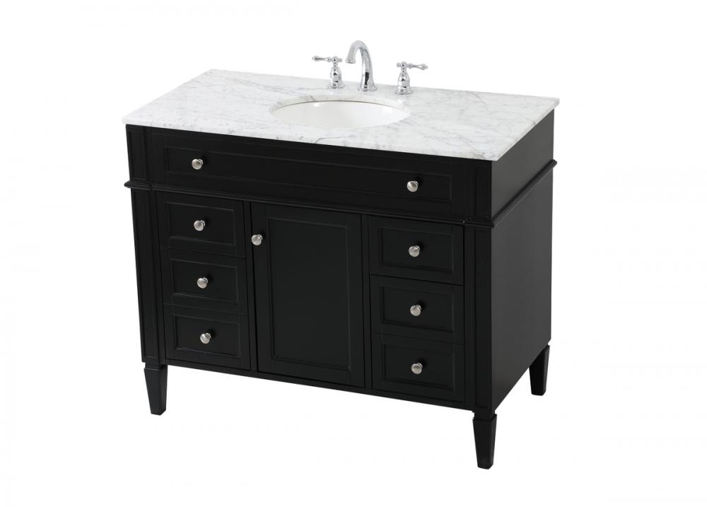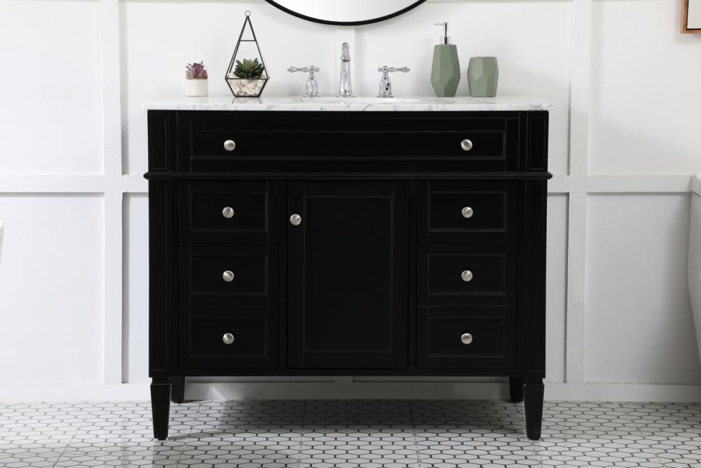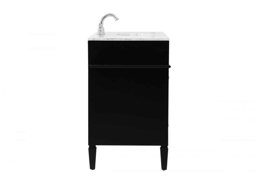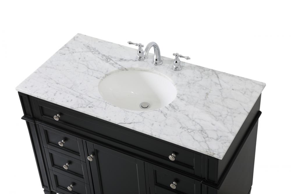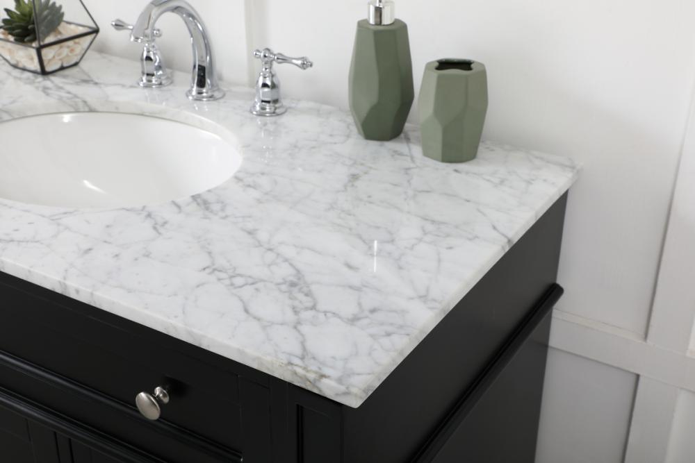 Comes with an undermount porcelain sink and a carrara white marble countertop