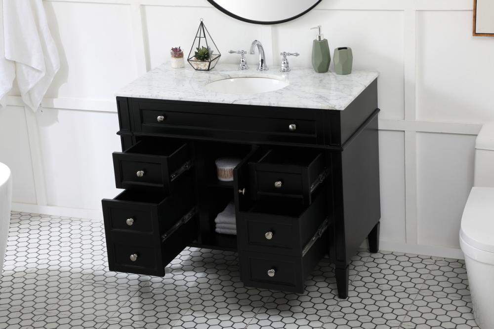 From its carrara white marble top to its contemporary style handpainted cabinet, it is sure to update your bathroom. Beneath its lustrous, natural stone marble top is an oval, white porcelain under-mount sink, removable shelf, for storing all your bathroom essentials.
