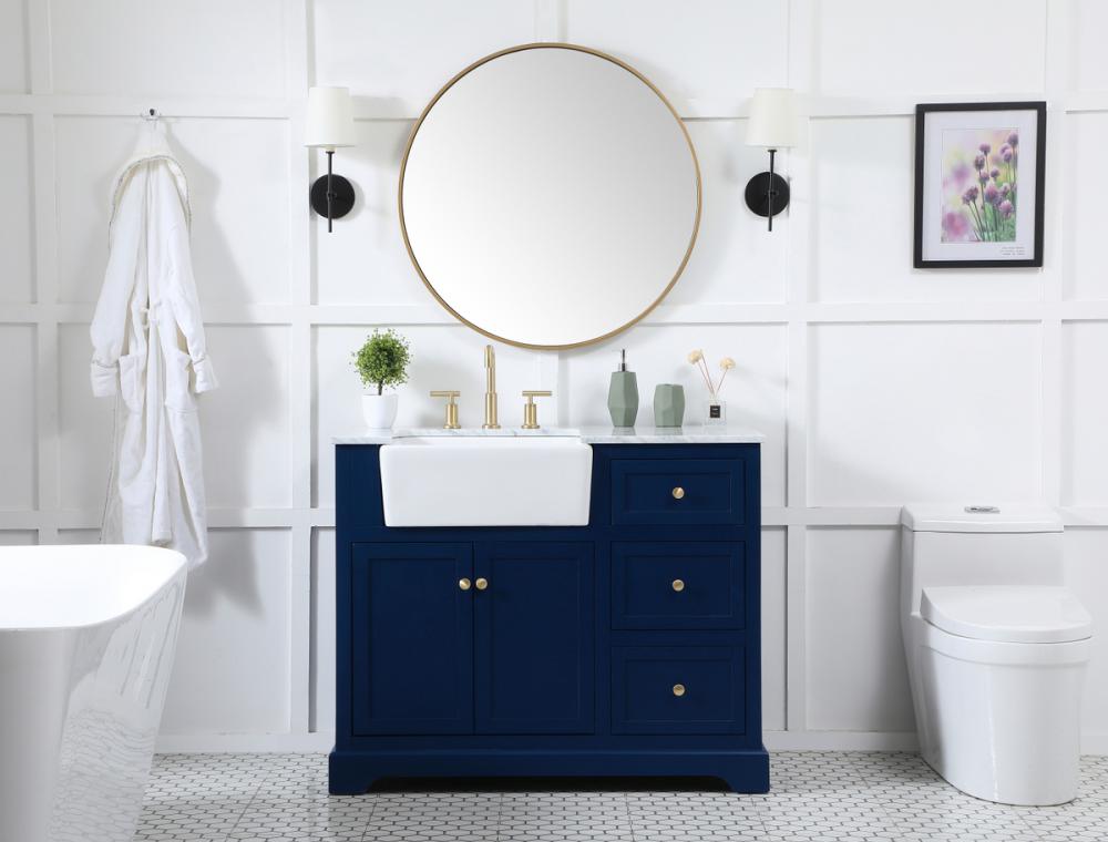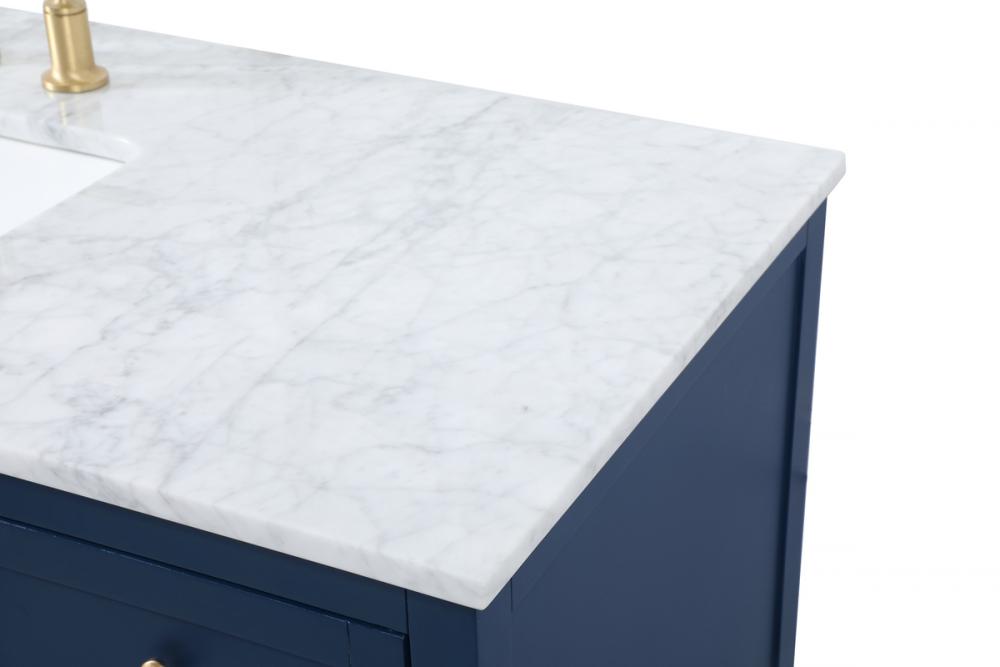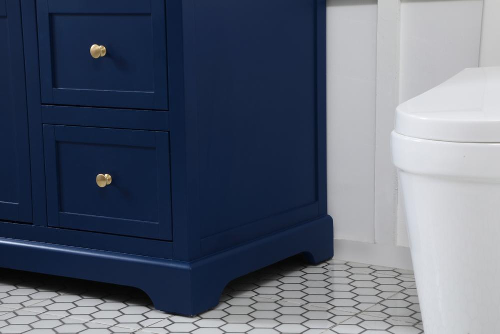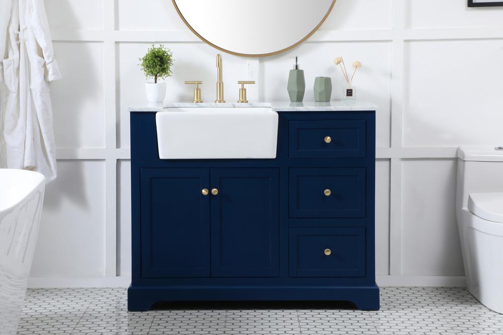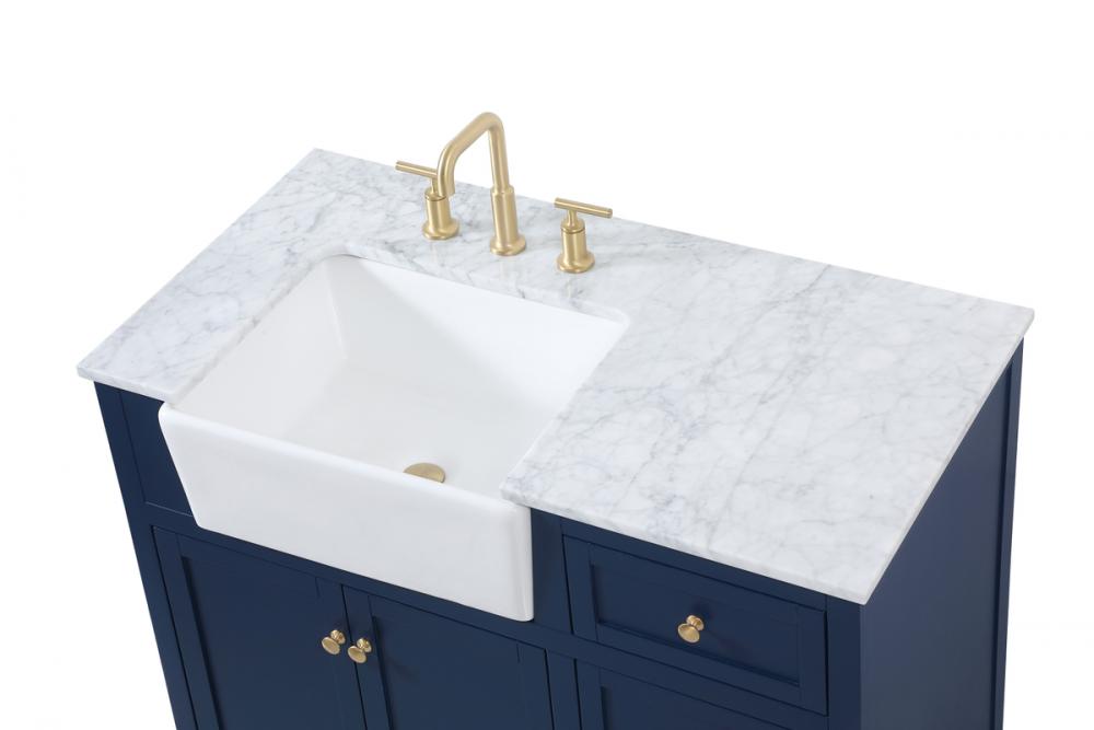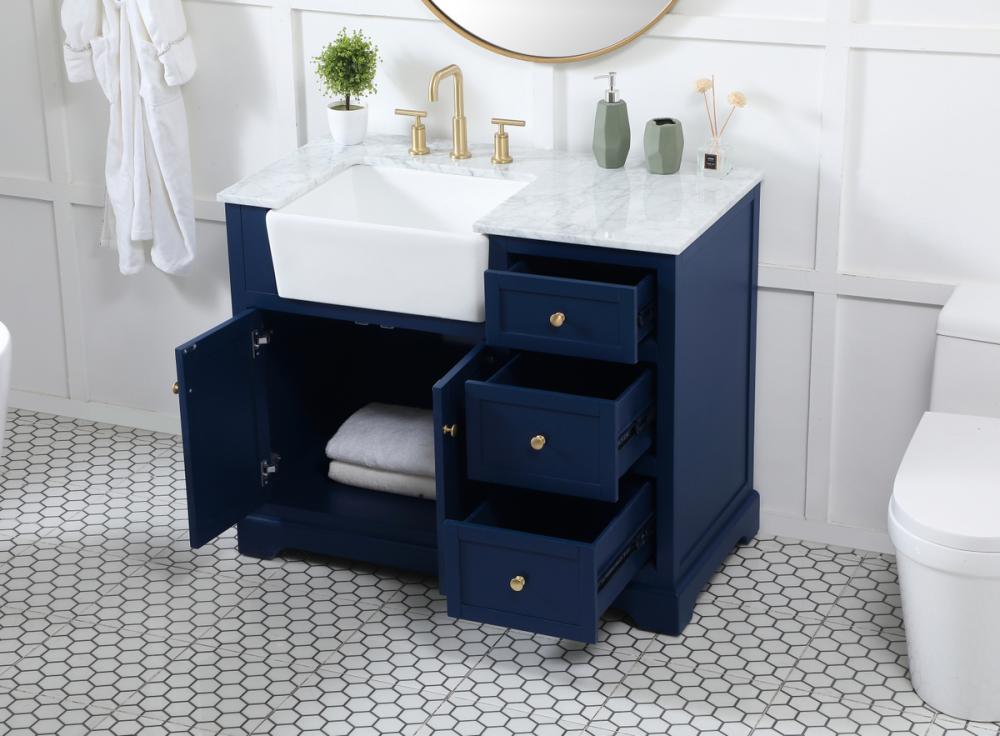 Make the most of your space with this farmhouse style bathroom vanity. Complements well with its beautiful finish, carrara white marble countertop, and the contemporary slender handle bar that sits on the functional drawers with soft closing mechanism, allowing you to store an assortment of bathroom essentials. The lower shelf makes it the perfect space to hold new towels for your guests. This stylish vanity ensures both form and function in your bathroom for you and your guests.