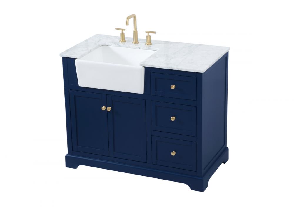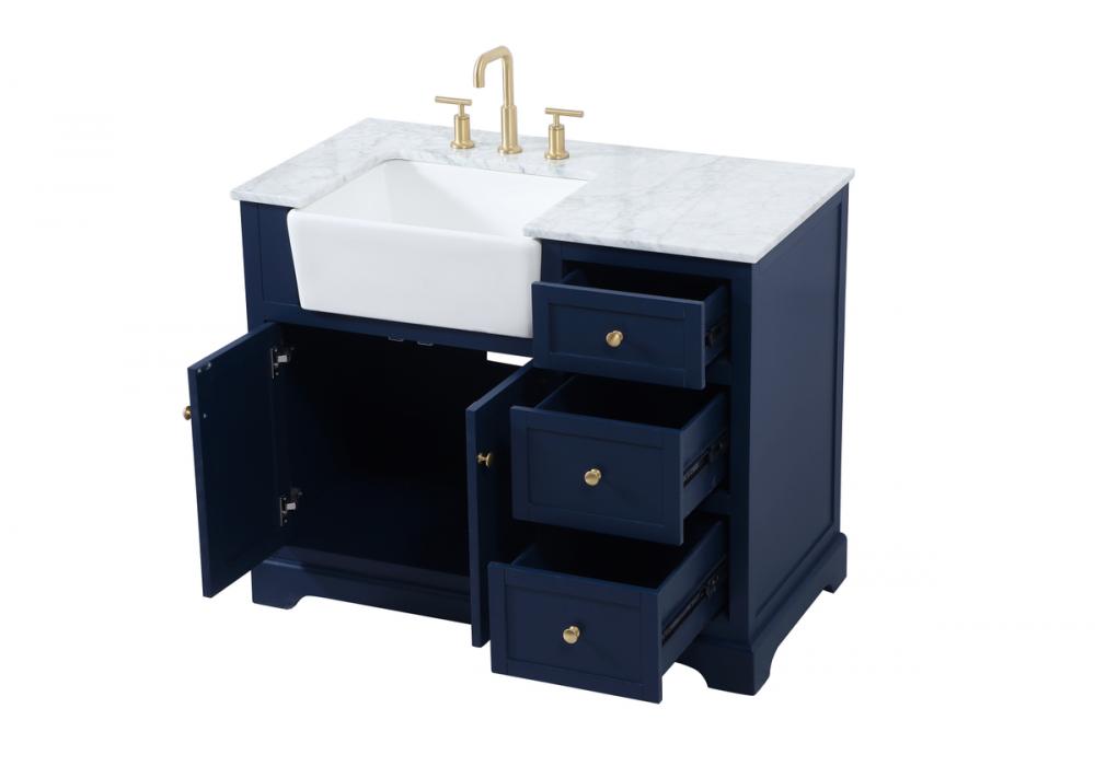 Comes with an apron porcelain sink and durable marble stone top in carrara white finish