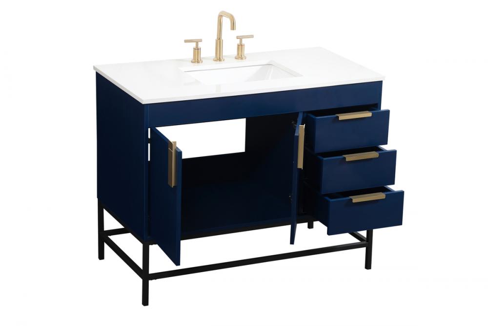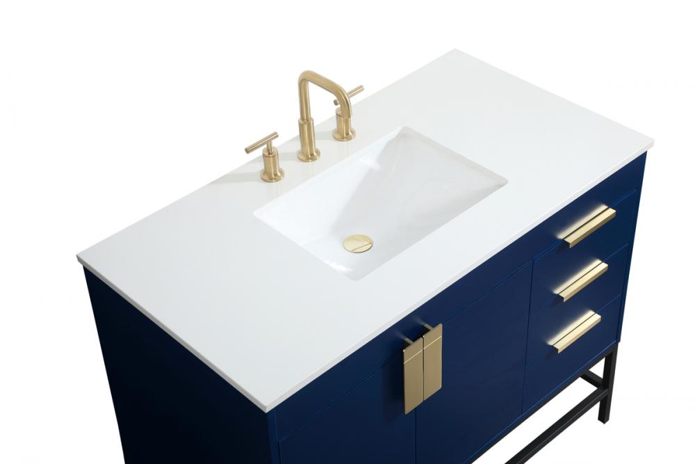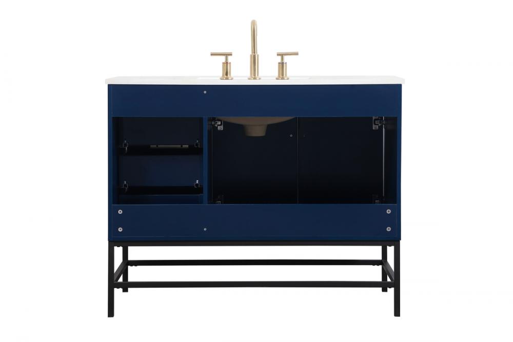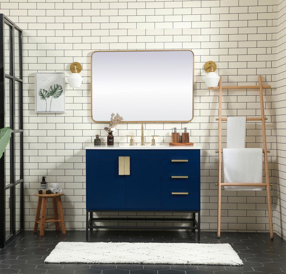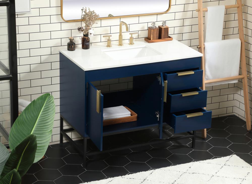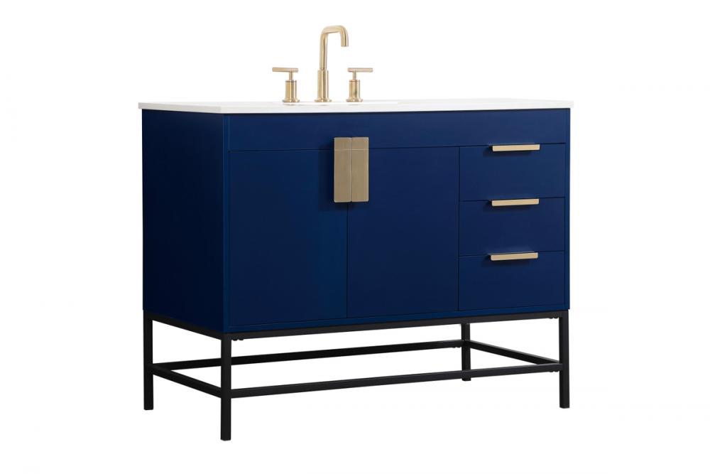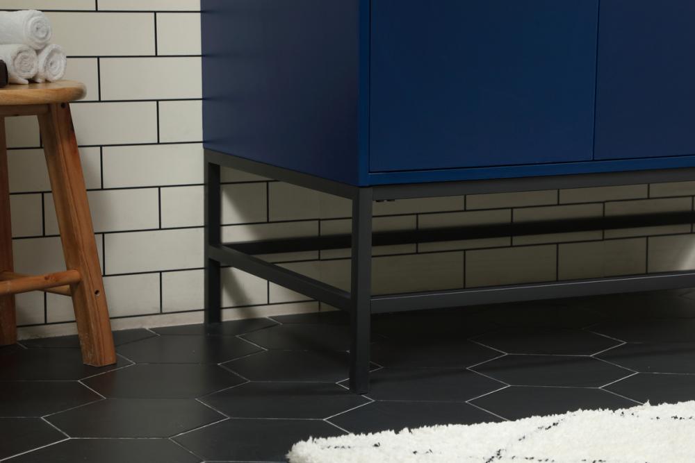 This vanity is a sleek-looking piece of bathroom furniture that is easy to incorporate into your design scheme. The cabinet features a smooth door panel with an oversized steel handle and soft close hinges provide ample room for accessories. Constructed of engineered wood, the powder-coated metal rod legs are an urban industrial look that we love. Minor assembly of the metal legs needed to get this vanity up and running.