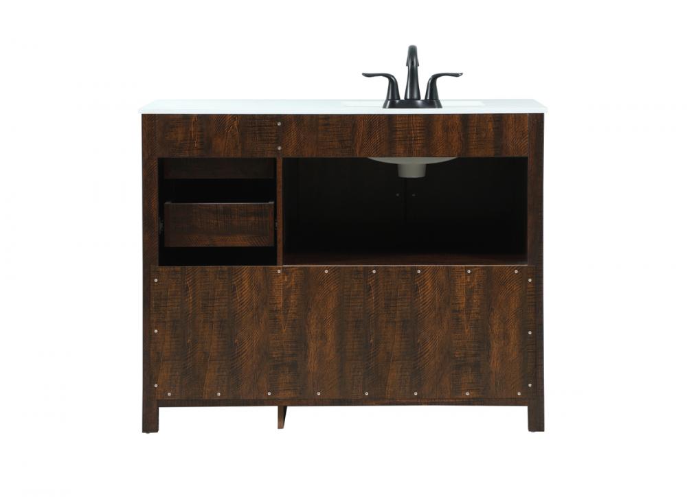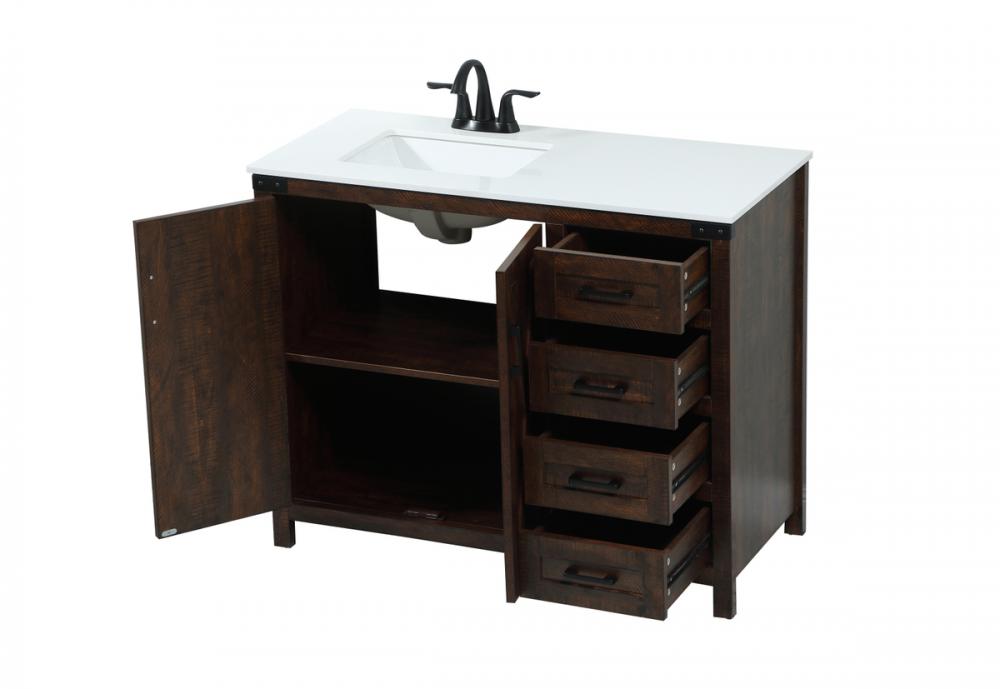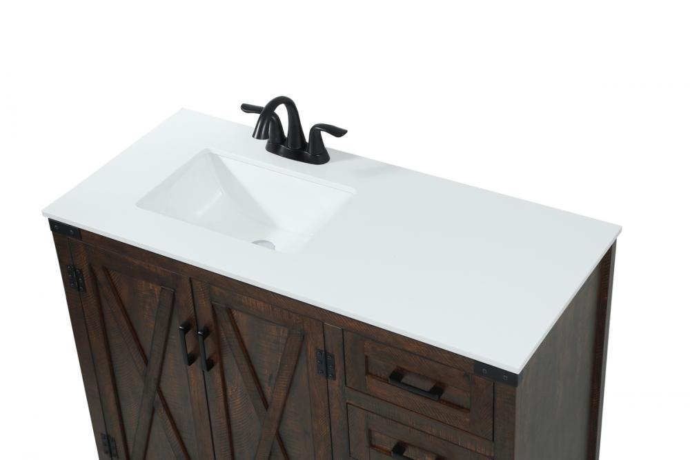Reminiscent of barn doors, the two door cabinet and four drawers adds both stylistic charm and function with its plethora of storage options for all your bathroom essentials. Whether for your bathroom or the guests', everyone will marvel at its classic look for traditional and farmhouse aesthetics. A slab of engineered marble rounds out the piece up top, as well as the porcelain under mount sink and predrilled faucet holes. This vanity arrives fully assembled.