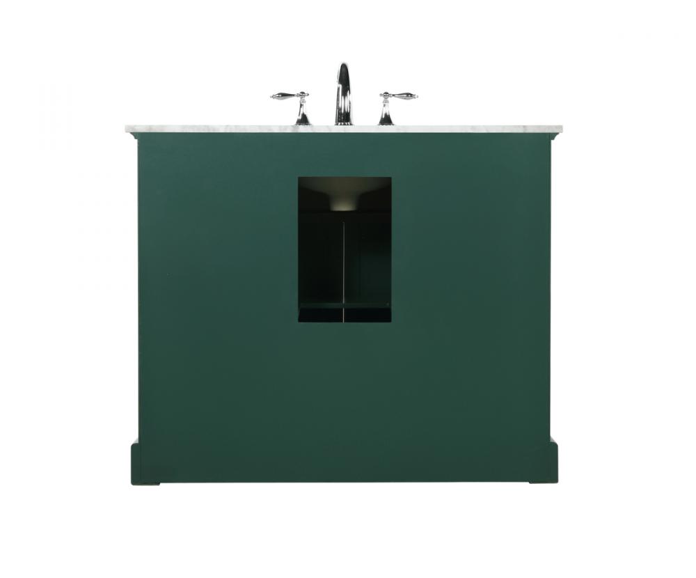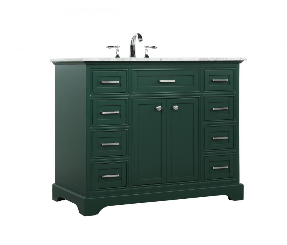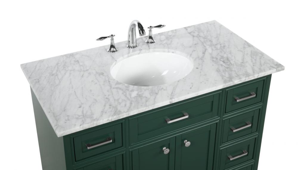 Comes with an undermount porcelain sink and a carrara white marble countertop