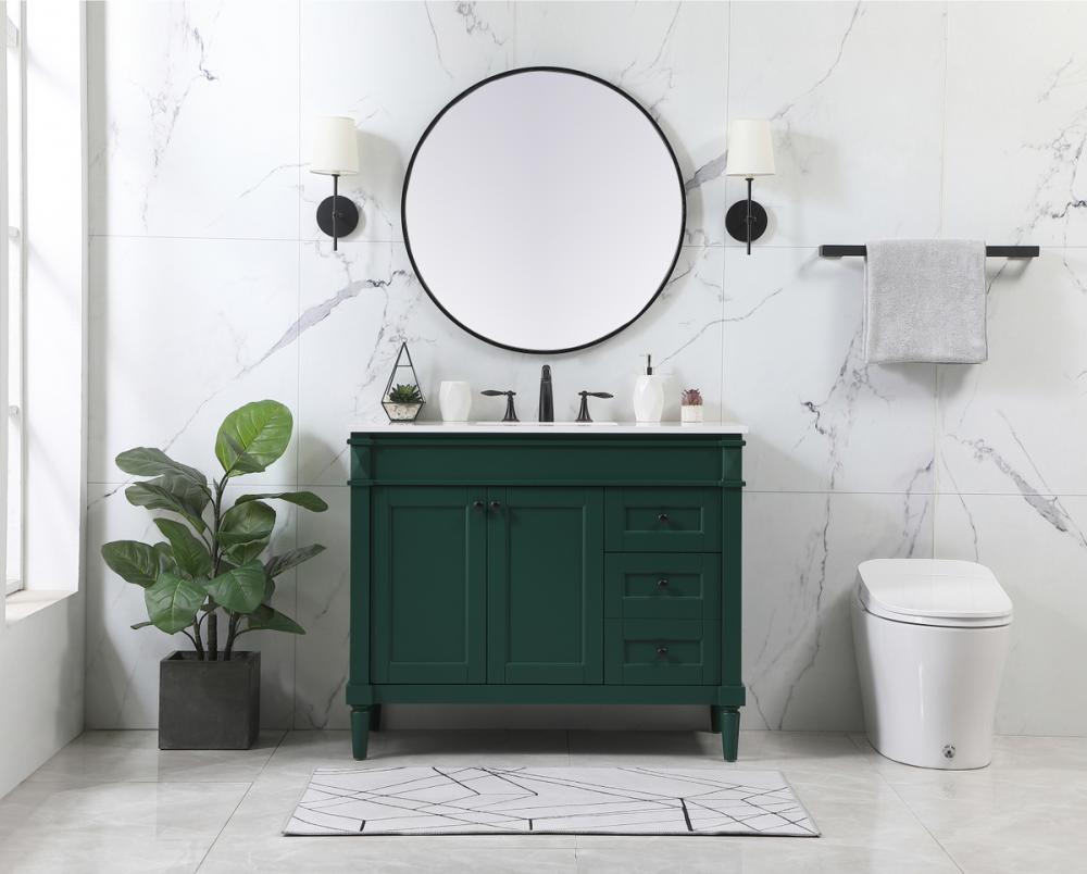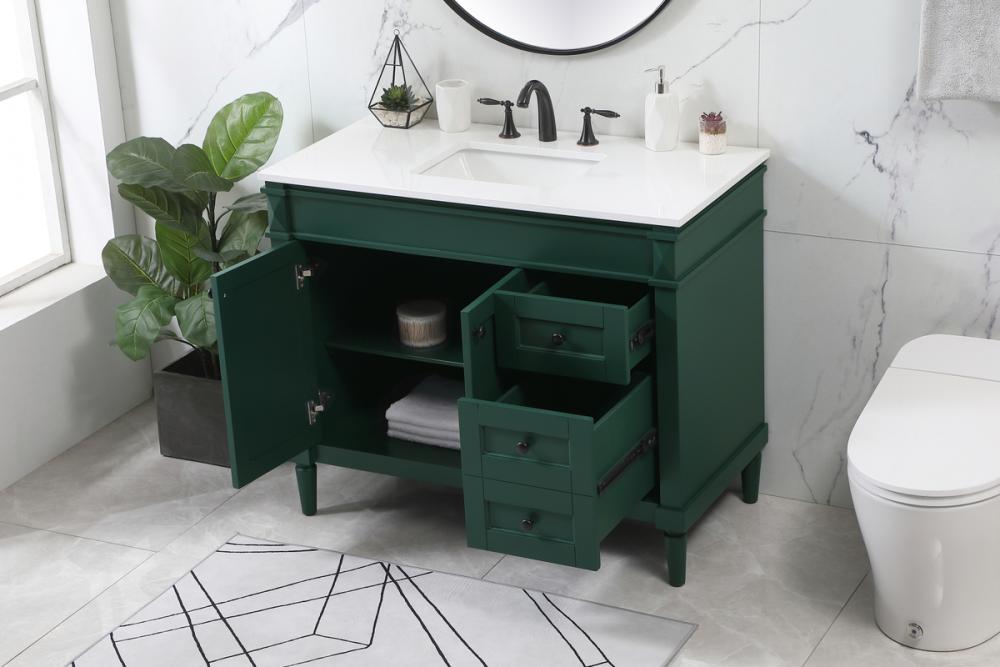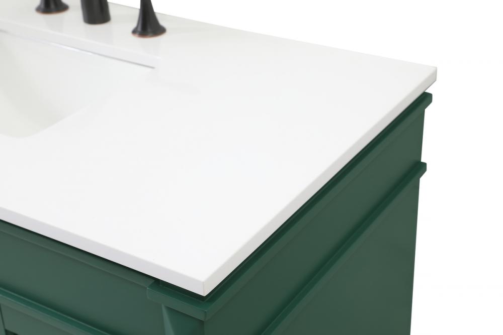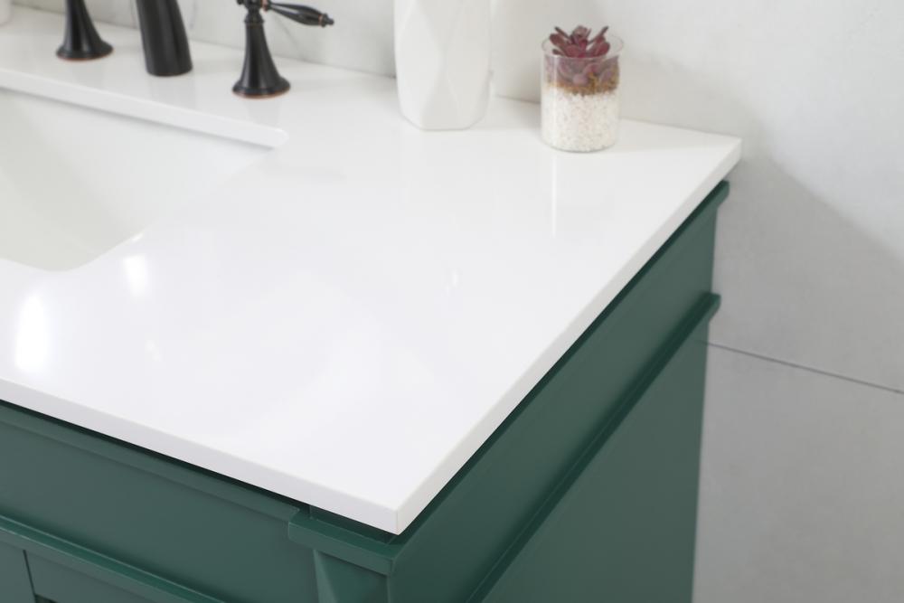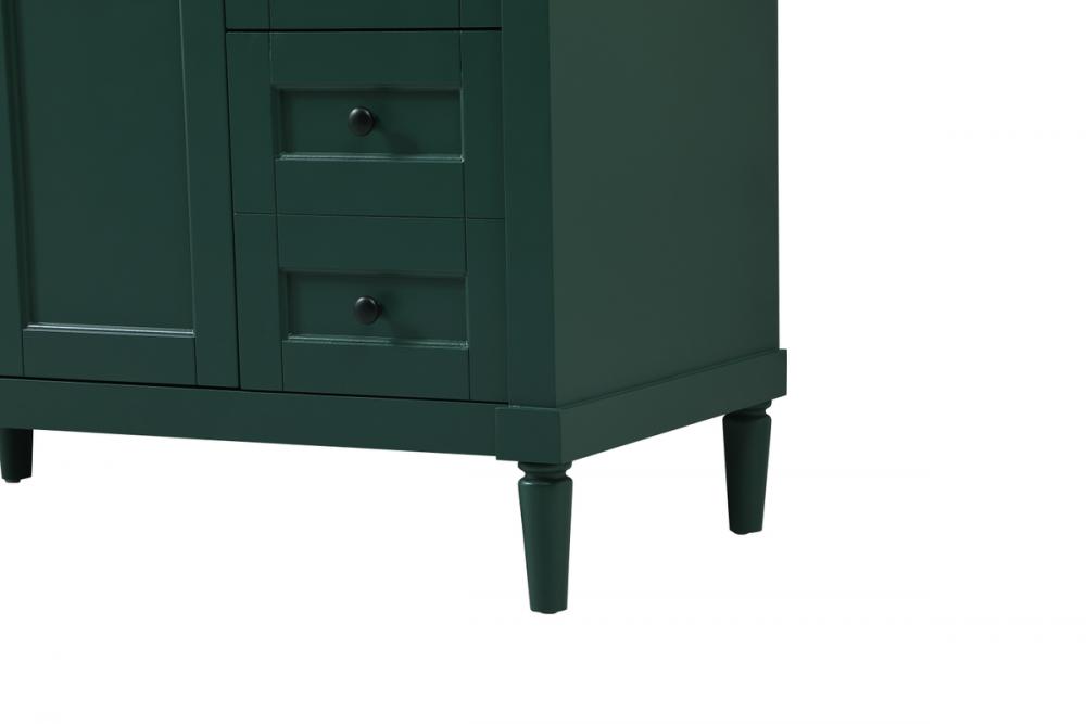 This transitional vanity is a beautiful piece of bathroom furniture will look amazing in your design scheme. The cabinet features a shaker style smooth door panel with simple round knobs and soft close hinges provide ample room for accessories. Packed with multiple side drawers with soft close glides for added comfort and full access to bath supplies. Convenient deep drawer stores all of your tall bath essentials. Constructed of engineered wood and solid wood legs with hand painted finish. The durable engineered marble countertop is a versatile material in an ivory white finish. Minor assembly of the legs needed to get this vanity up and running.