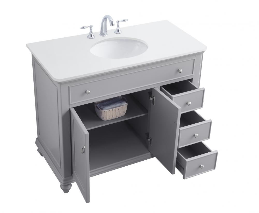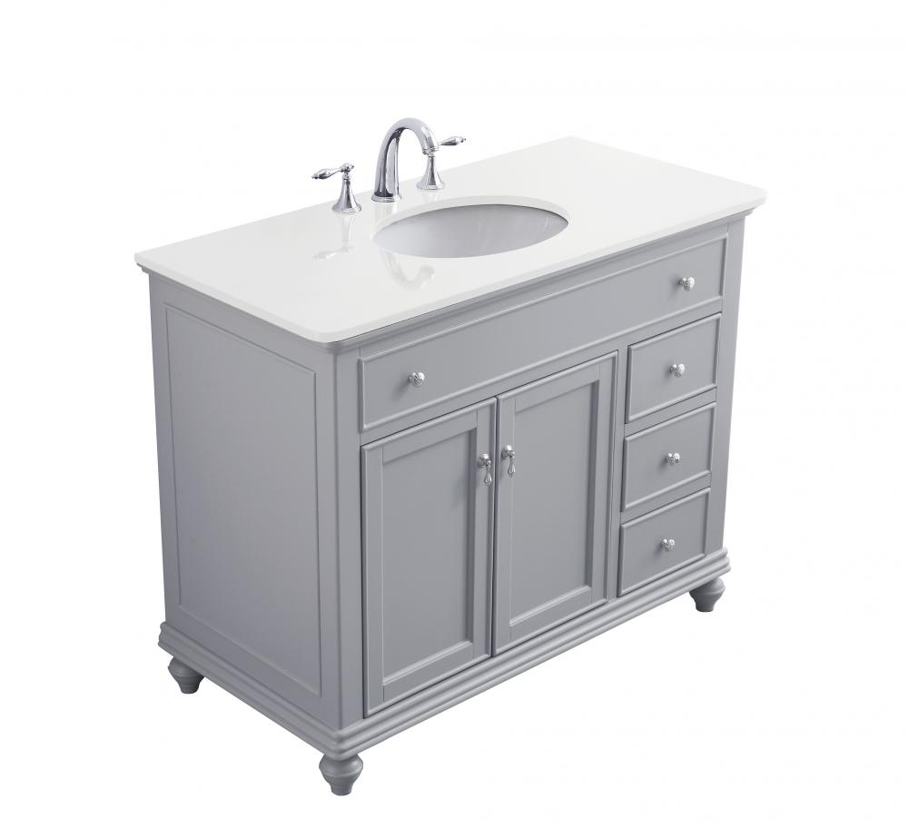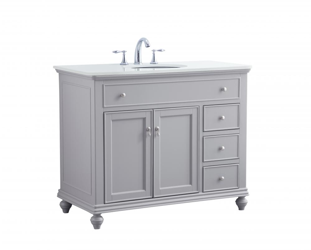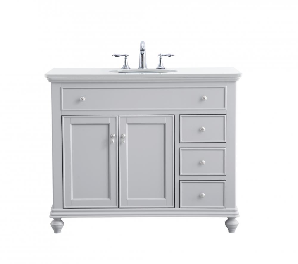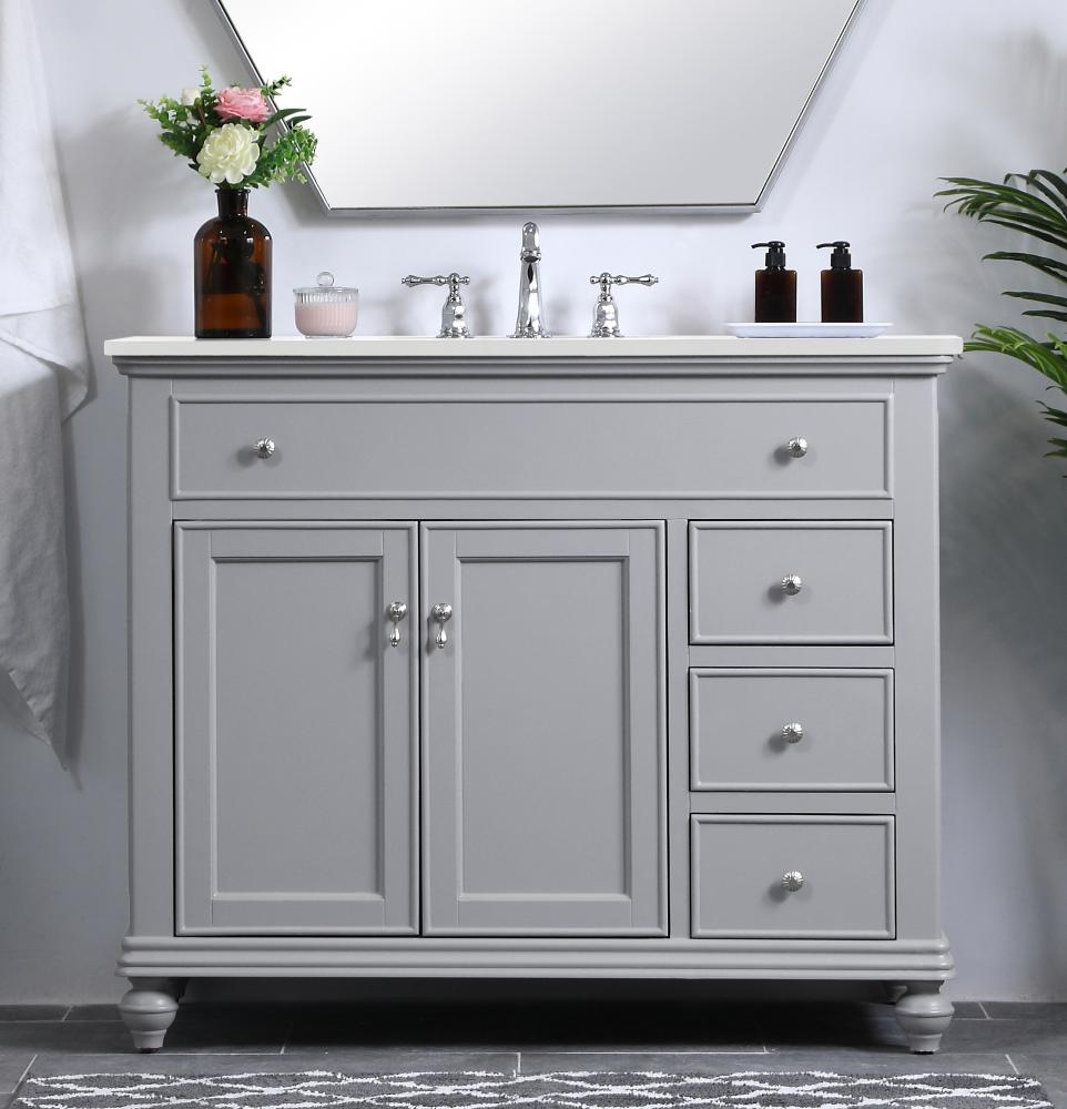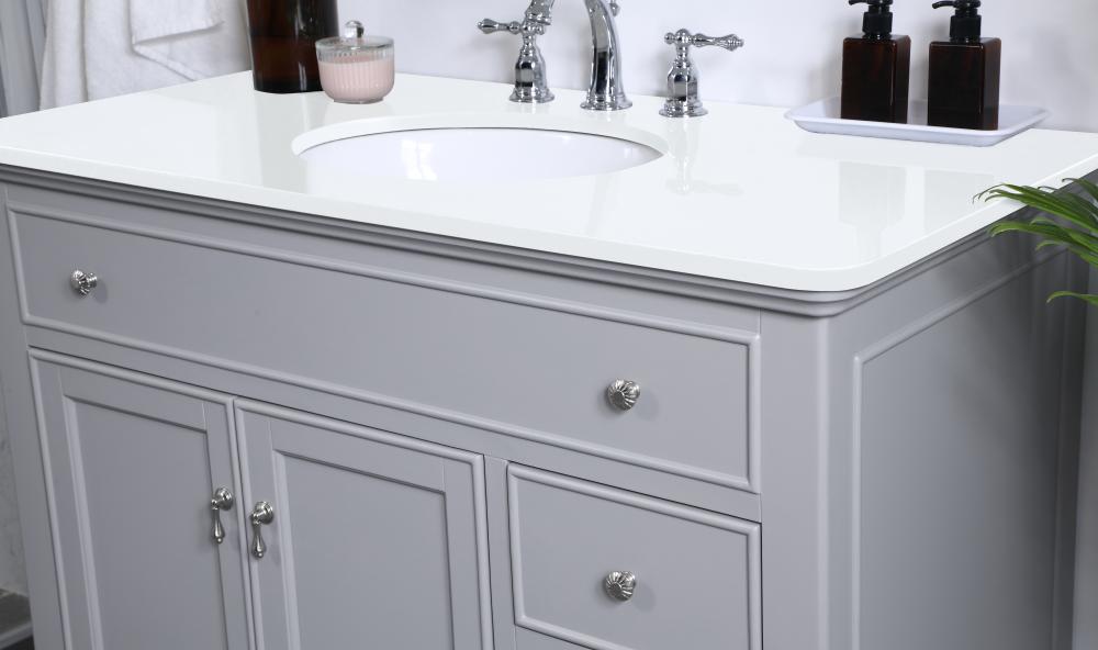 42 inch Single Bathroom vanity in light grey with ivory white engineered marble