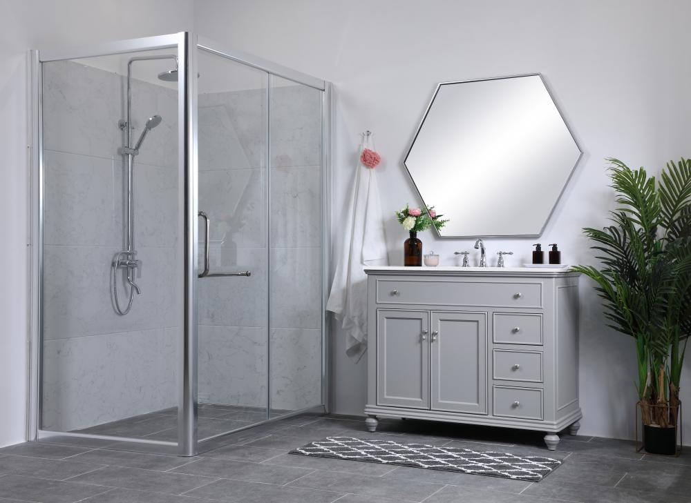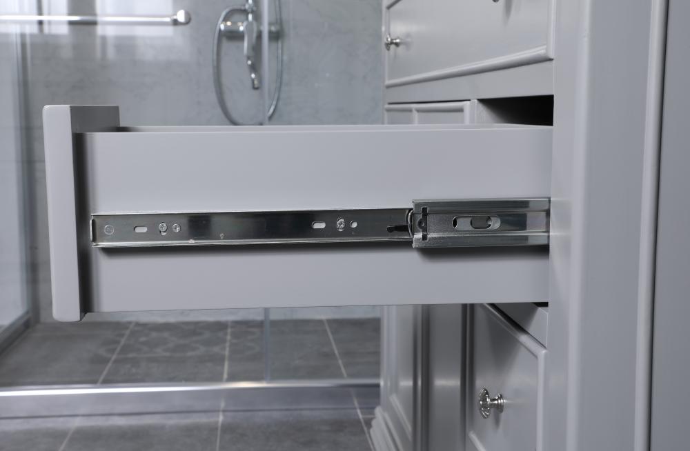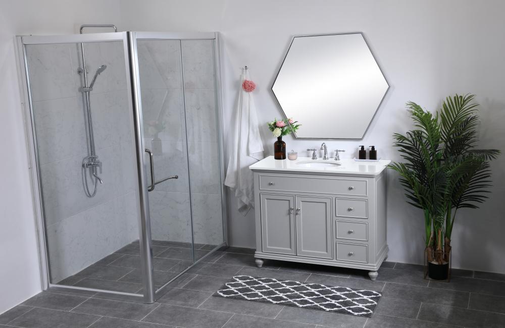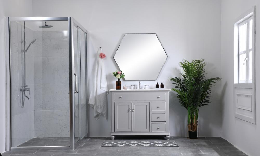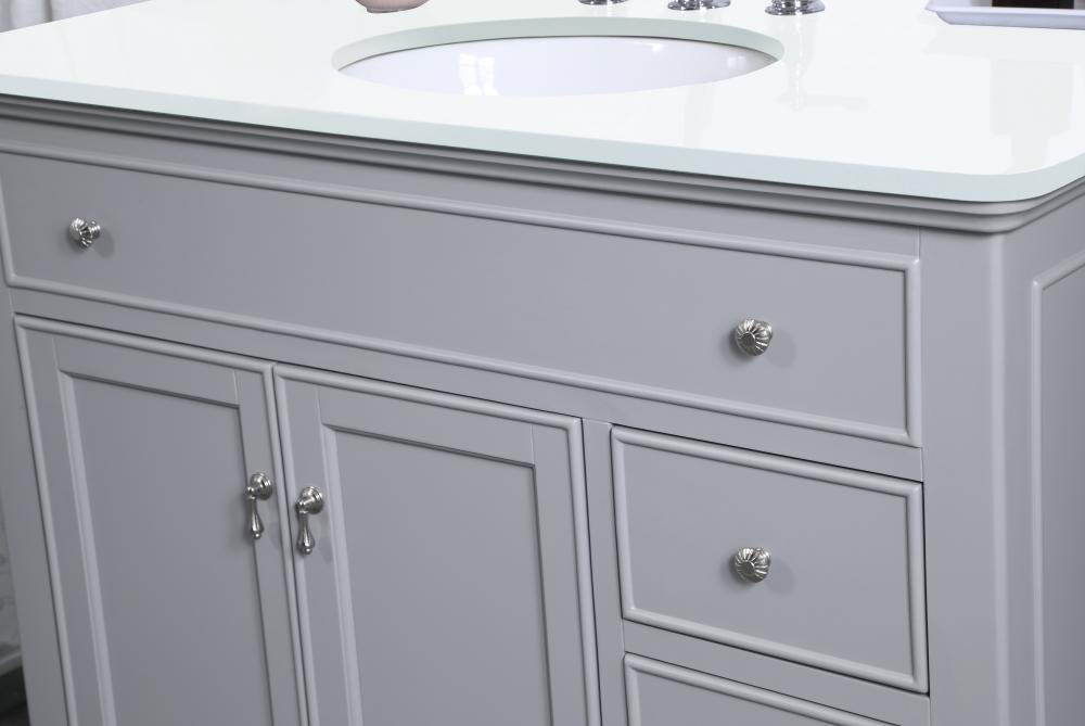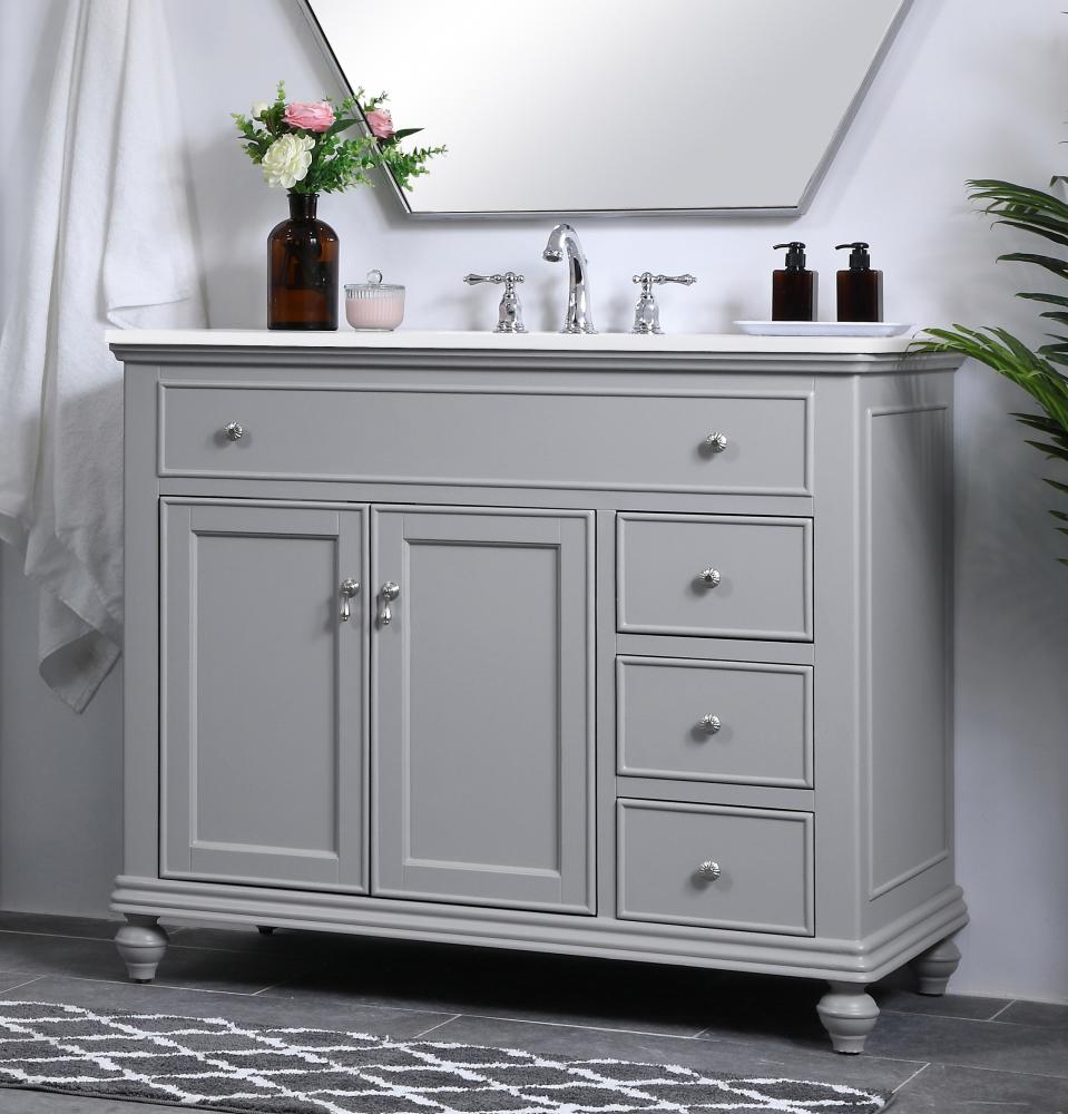 42 inch Single Bathroom vanity in light grey with ivory white engineered marble