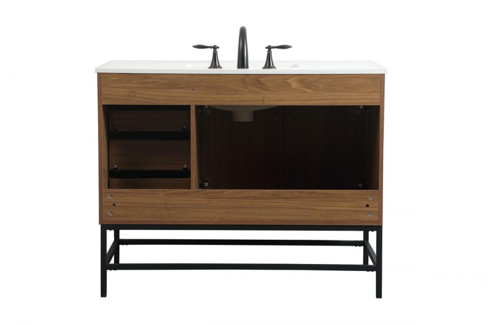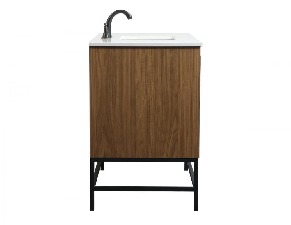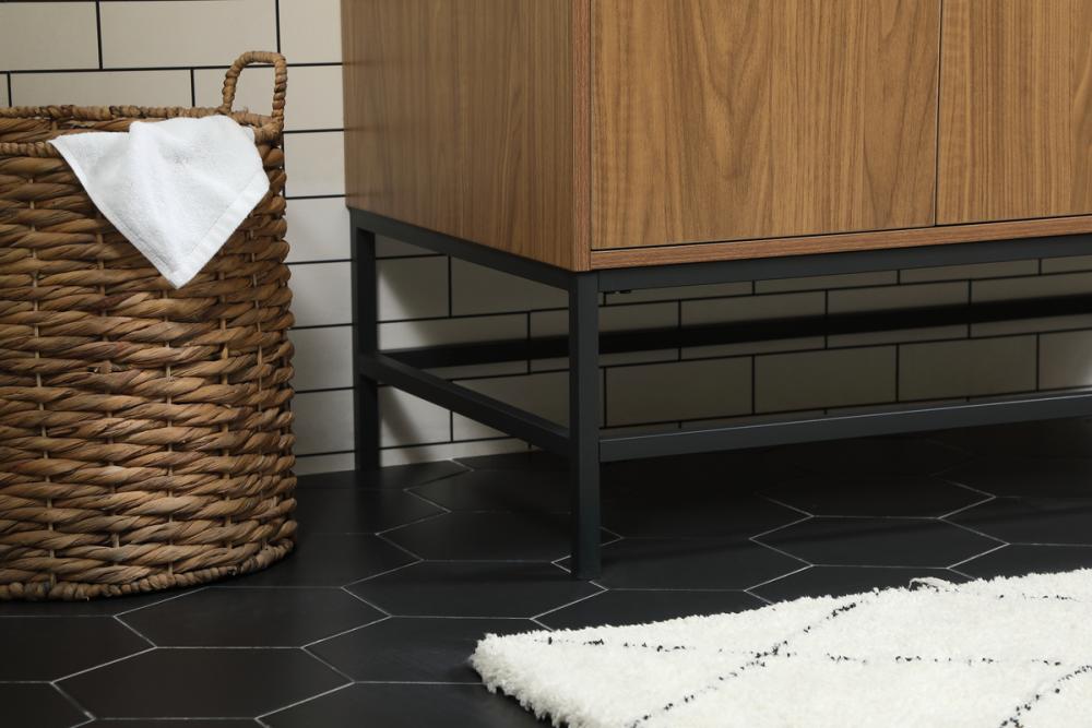 This vanity is a sleek-looking piece of bathroom furniture that is easy to incorporate into your design scheme. The cabinet features a smooth door panel with an oversized steel handle and soft close hinges provide ample room for accessories. Constructed of engineered wood, the powder-coated metal rod legs are an urban industrial look that we love. Minor assembly of the metal legs needed to get this vanity up and running.