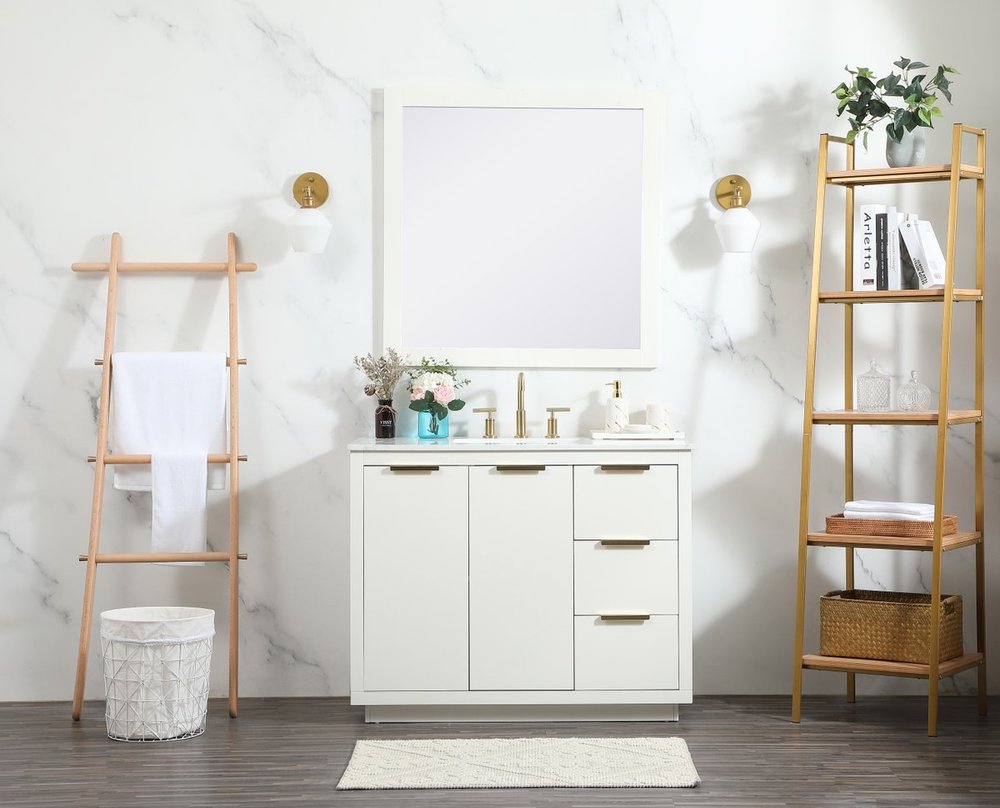 The Blake collection vanity cabinet will be a modern furniture statement piece in your bathroom. Our color combination creates a calming atmosphere in the room. The gold handles bring a vibrant touch to balance the vanity. With the simplistic clean lines, the cabinet catches eyes with its beautiful smooth surface. Open the cabinet doors to store what you desire and make use of the spacious area. Gently close the door and the soft closing glides will quietly closes the door. To top it off, the calacatta engineered marble adds a luxury and modern finish to the durable stonetop.