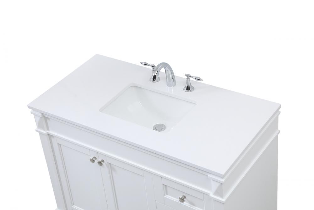 Crafted with durable engineered marble top in ivory white finish and vanity base is hand painted