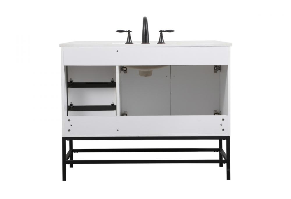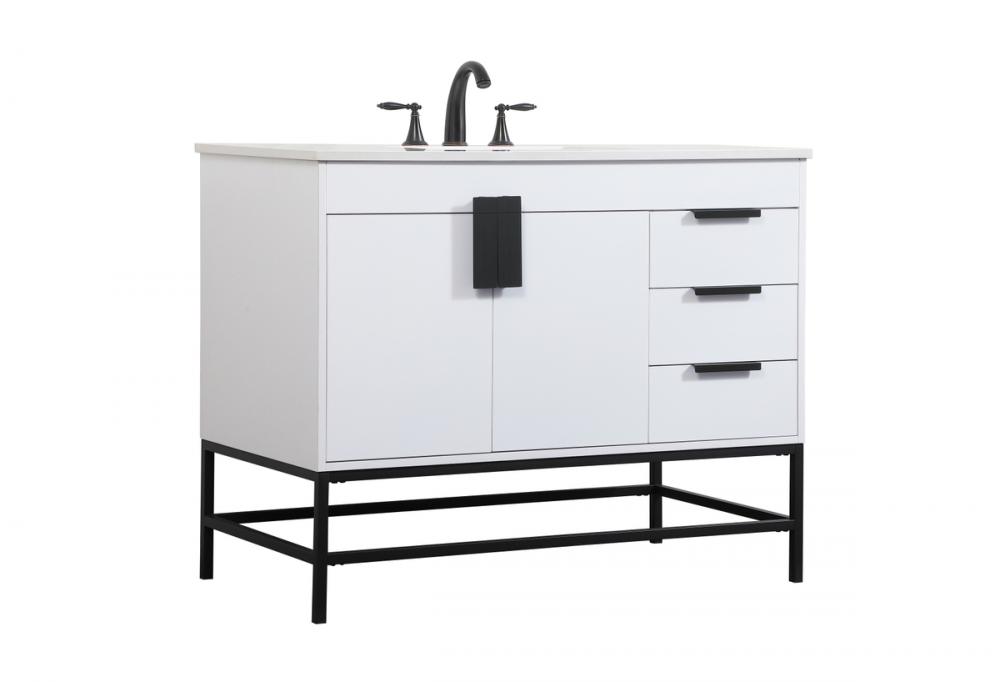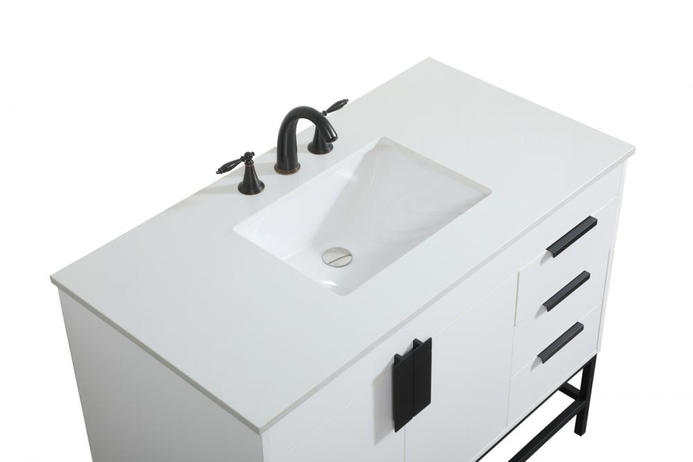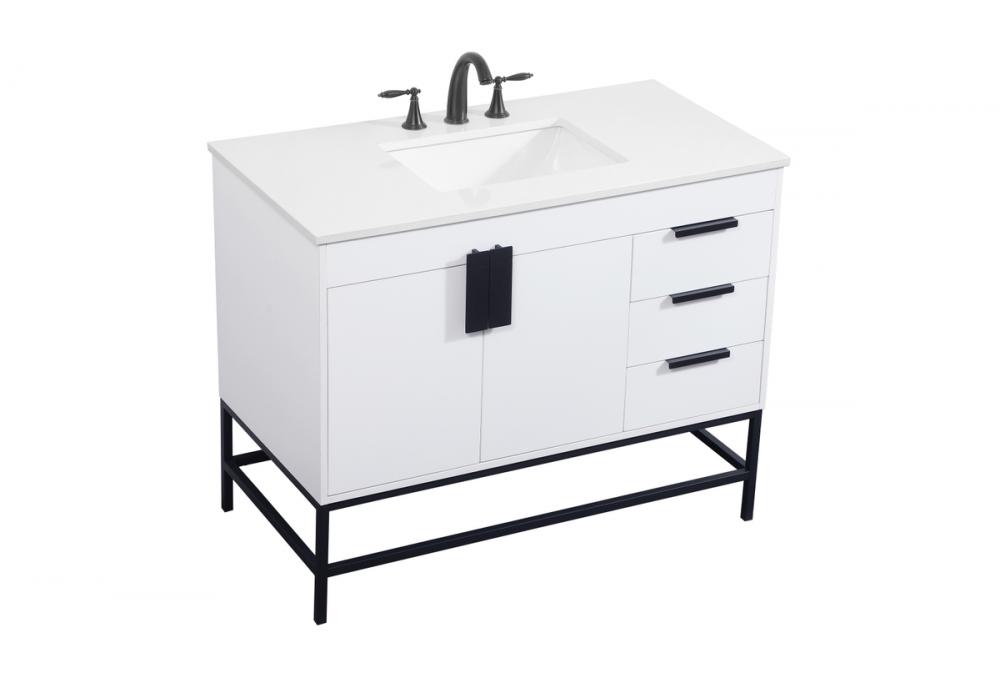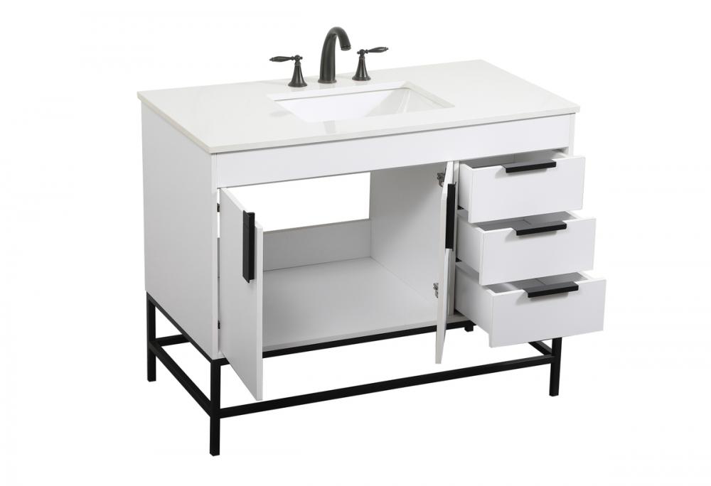 Crafted with durable engineered marble top in ivory white finish