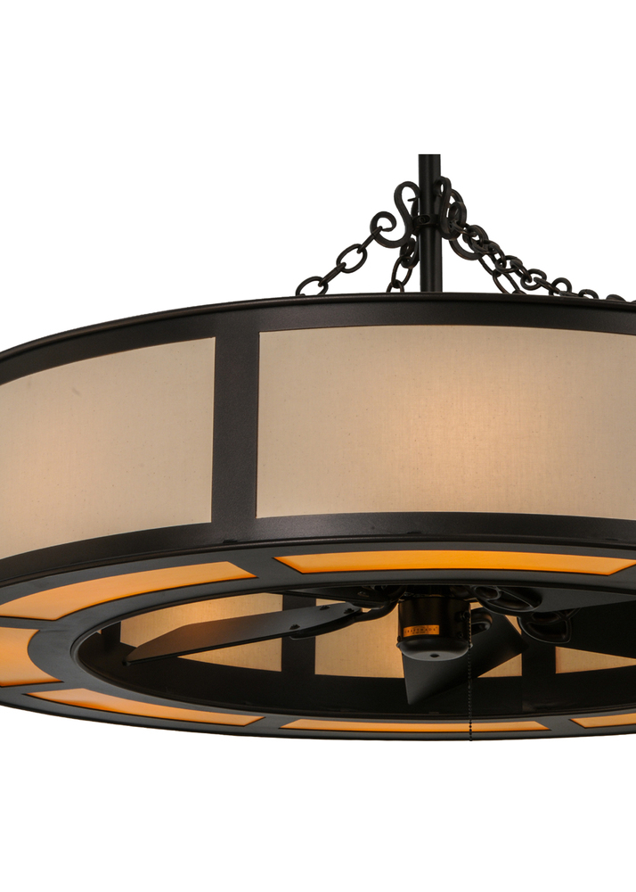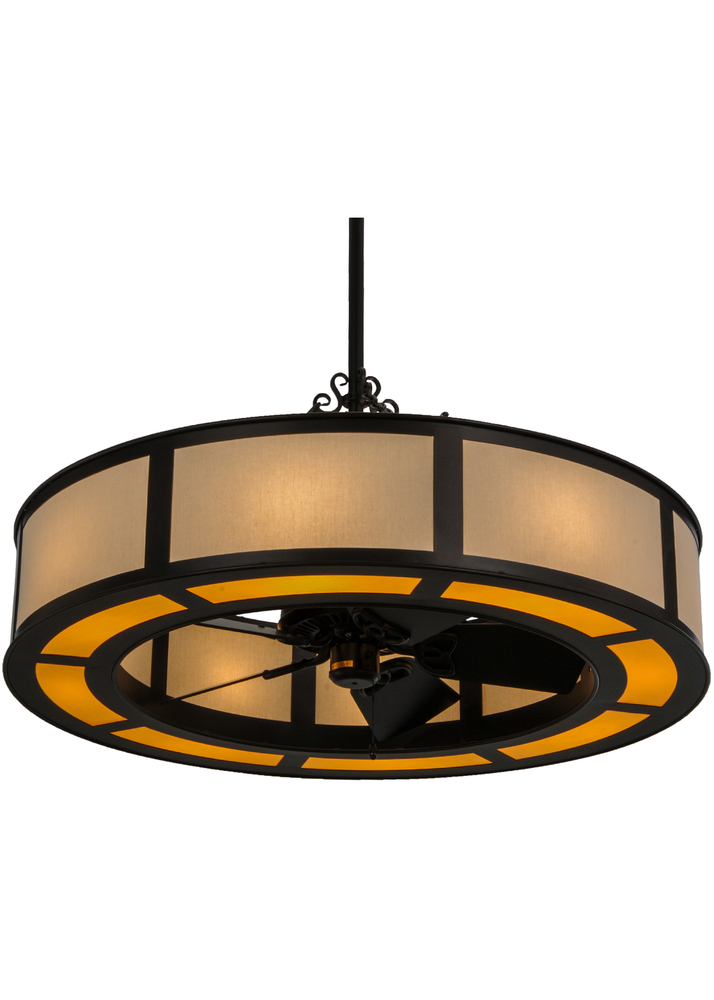 A fan-tastic decorating idea for residential; hospitality and commercial locations. The latest innovation in our award winning Chandel-Air collection. Eggshell Textrene envelop this unique Chandel-Air which combines a custom lighting design with a ceiling fan. The fixture is complemented with a Faux Maplewood bottom diffuser and enhanced with a Mahogany Bronze finish. Eight inner lamps bring out the beauty of the diffuser and four uplights project indirect lighting on the ceiling above. This energy saving innovation pulls hot air up and keeps the space cool in the summer; and reversed in the winter to push down hot air and maintain warmth. Handcrafted in our 180;000 square foot manufacturing facility in Yorkville; NY. UL and cUL listed for dry and damp locations.