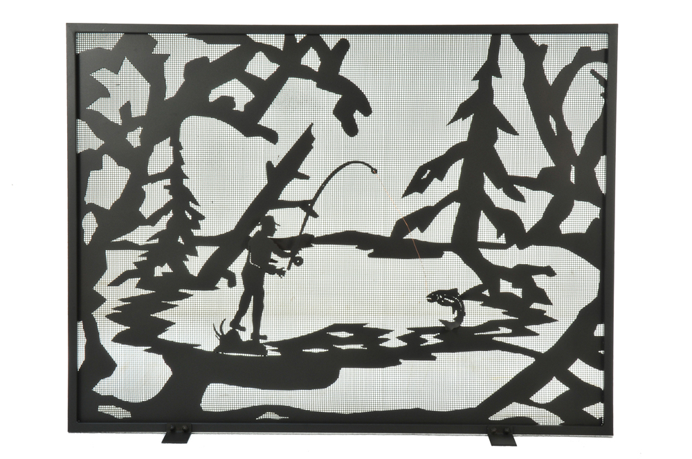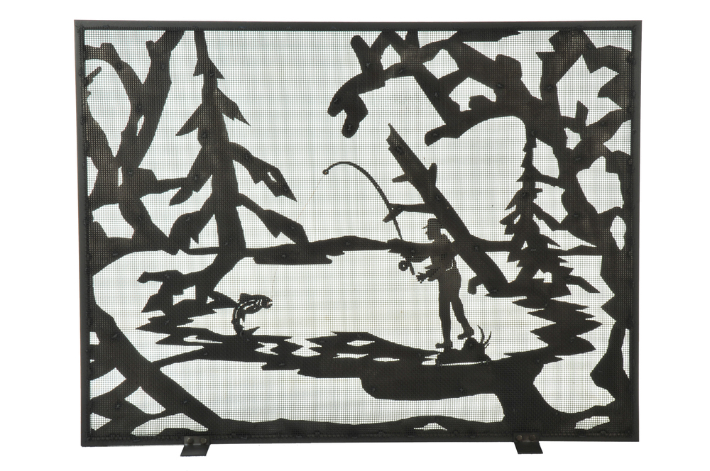 44" Wide X 33" High Fly Fishing Creek Fireplace Screen